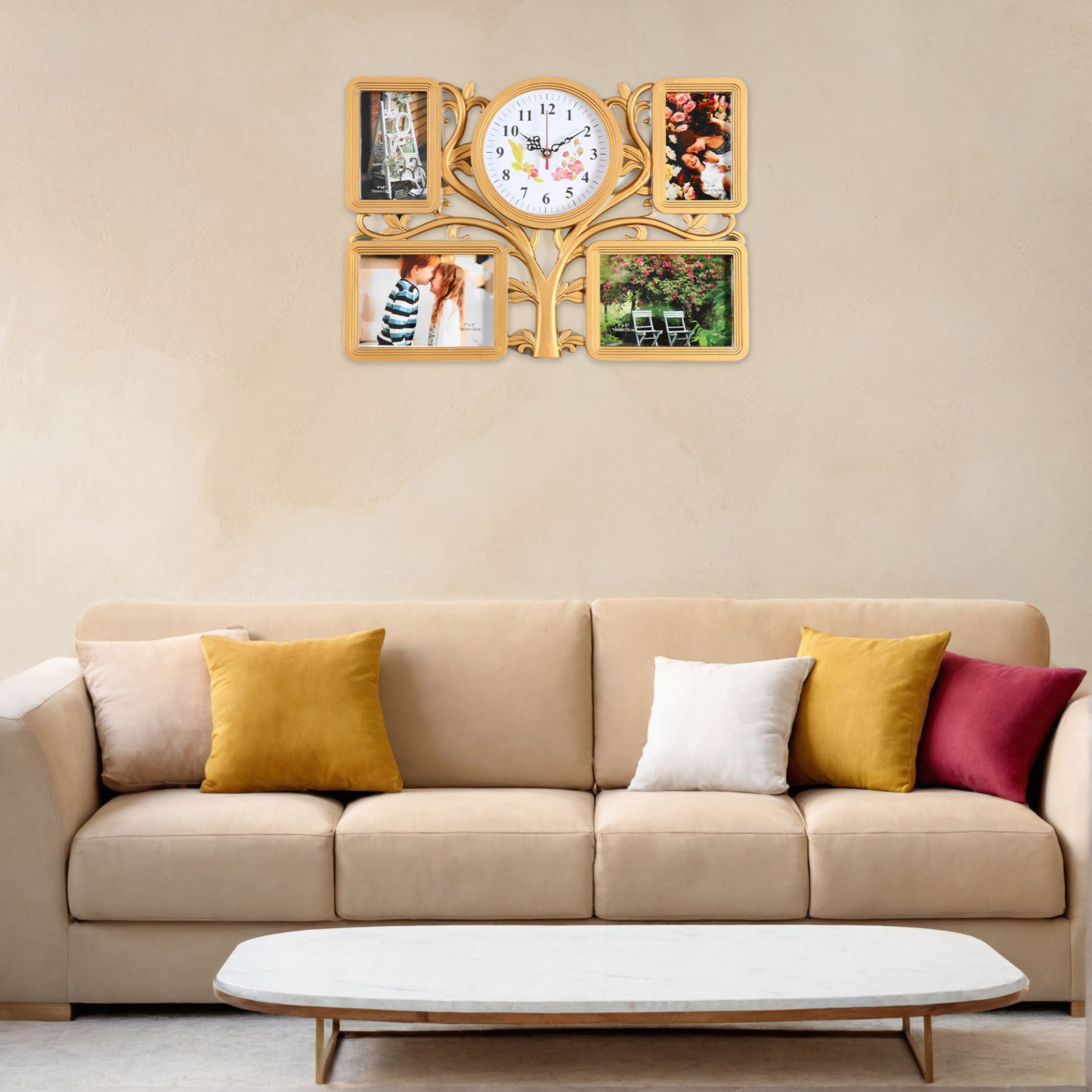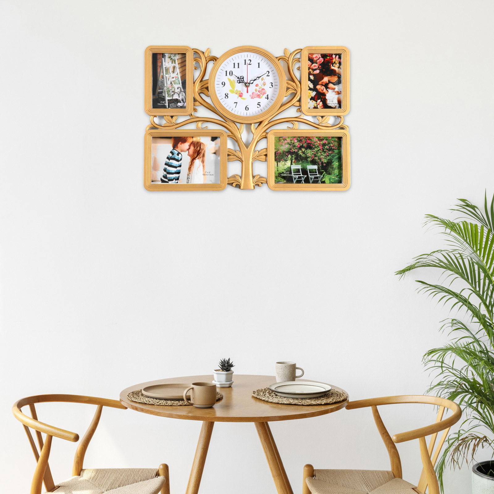 Фоторамка-коллаж на 4 фото с часами настенными "Семейное дерево", 48x33 см, 48x33 см., Китай