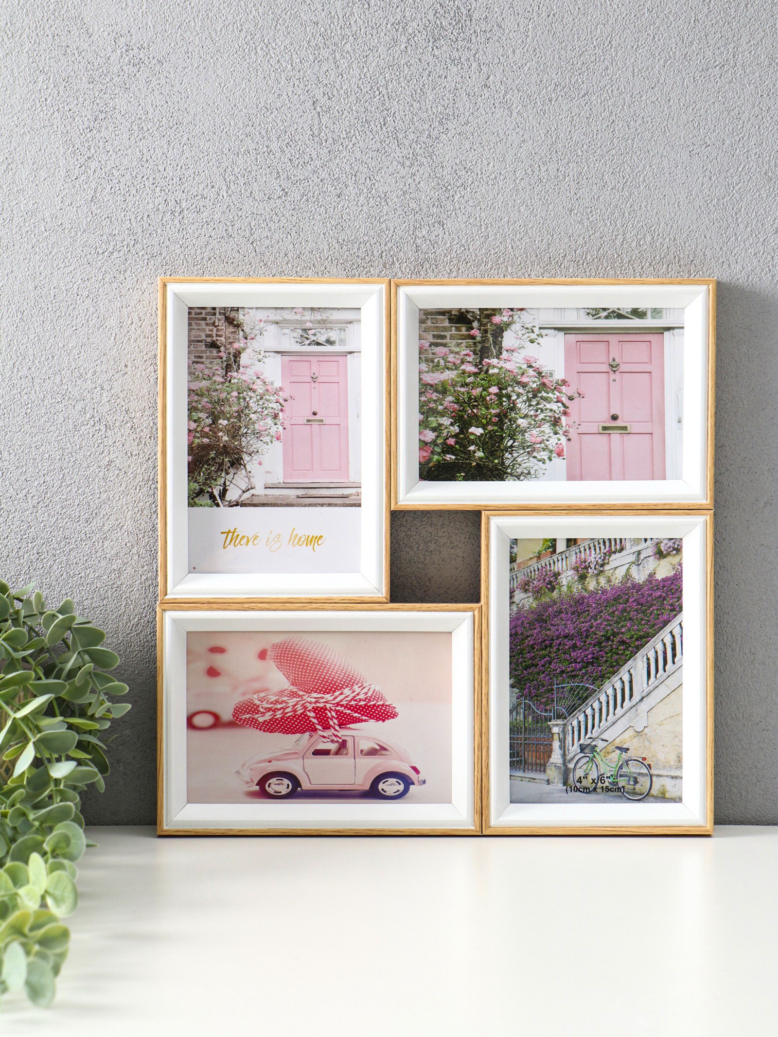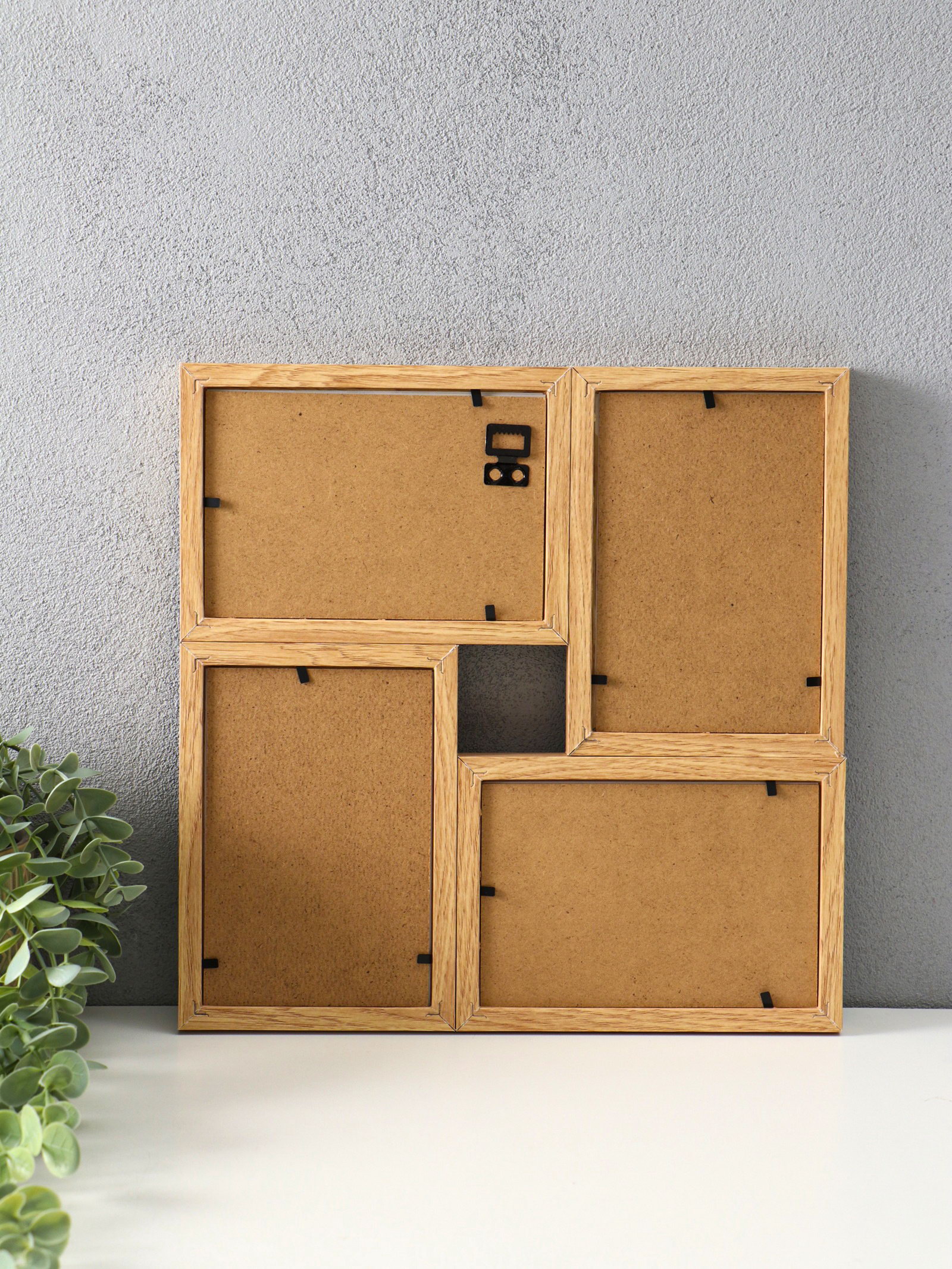 Фоторамка-коллаж на 4 фото 10x15 см "Двухцветная", пластик, под бук и белый, 30x30x2 см, 30x30x2 см., Китай