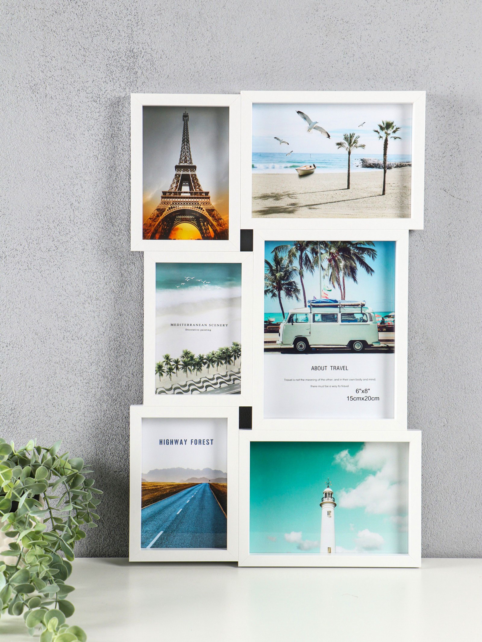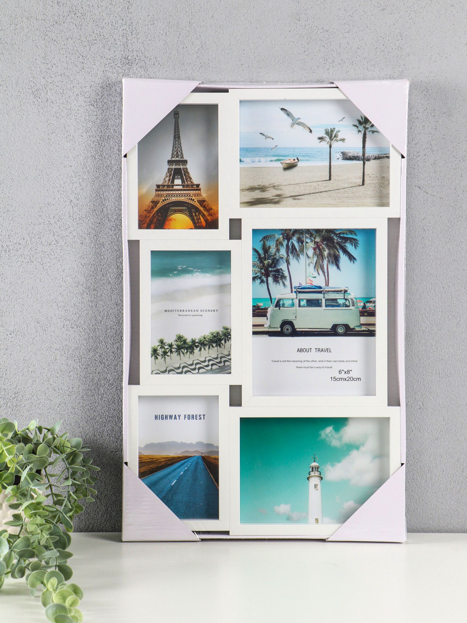 Фоторамка-коллаж на 6 фото 10x15 см, 13x18 см, 15x20 см "Воспоминания", МДФ, стекло, белая, 51x31.5x2.2 см, 31.5x51x2.2 см., Китай