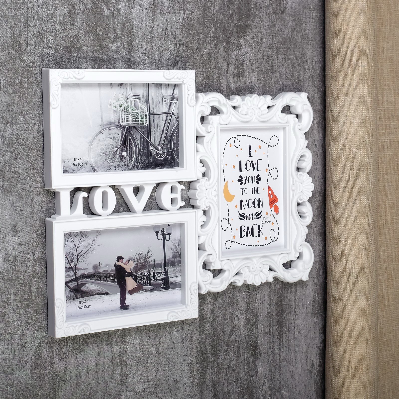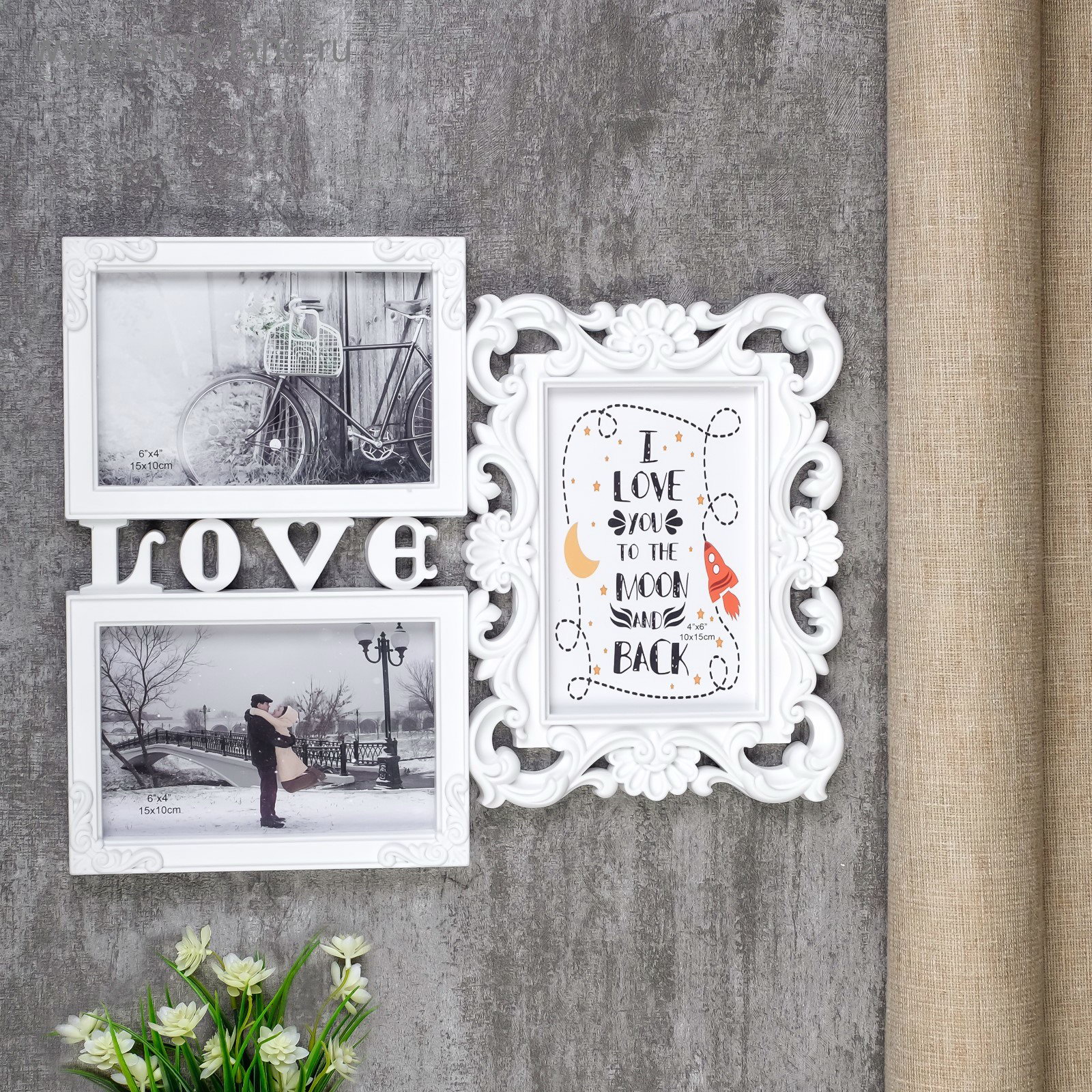Фоторамка - коллаж на 3 фото 10x15 см "Любовь моя", белая, пластик, 26.5x32.5 см, 32.5x26.5 см., Китай