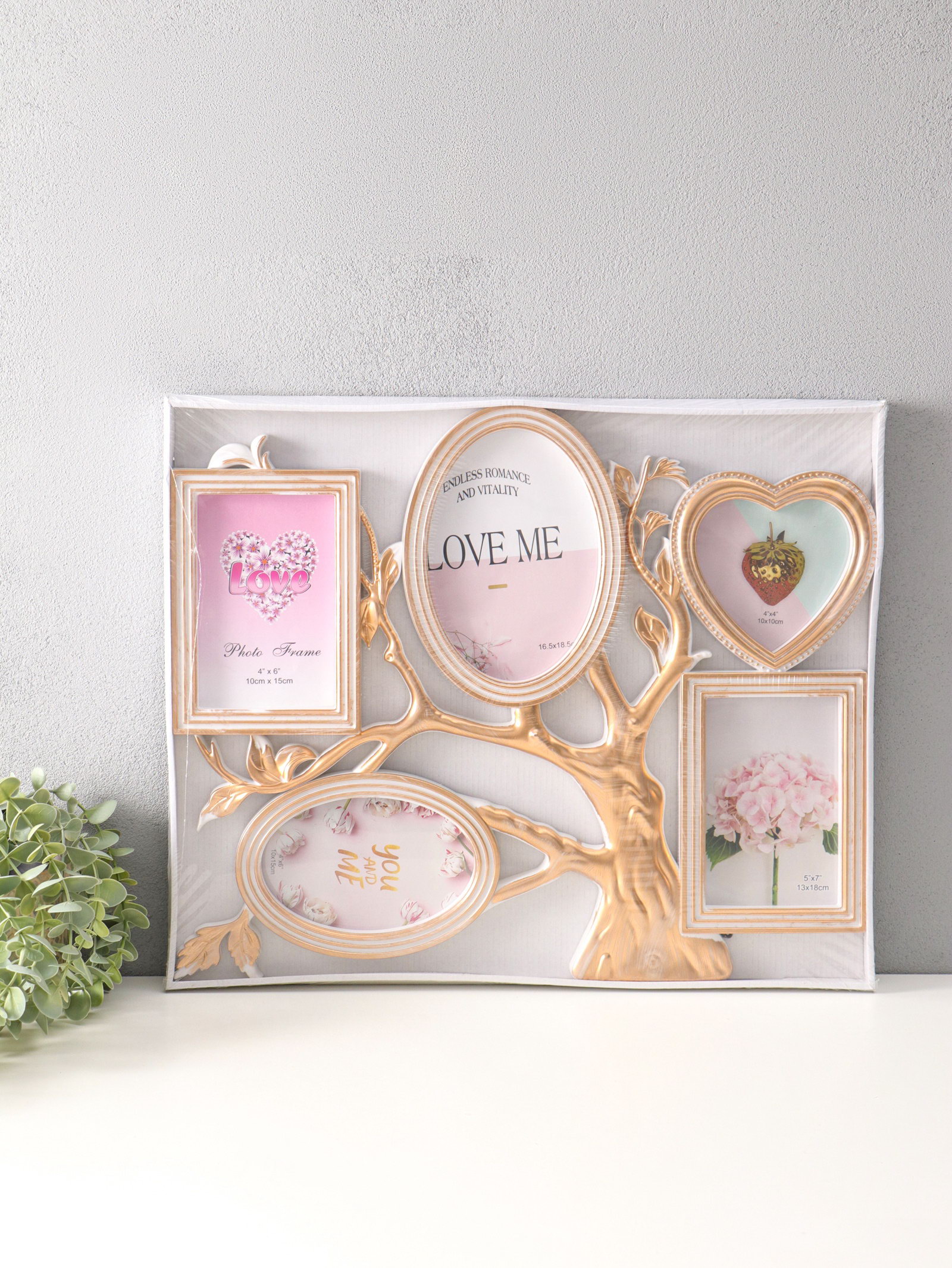 Фоторамка - коллаж на 5 фото 10x15 см, 13x13 см, 13x18 см "Старое дерево", пластик, белая с золотом, 46.5x37.5 см, 2x46.5x37.5 см., Китай