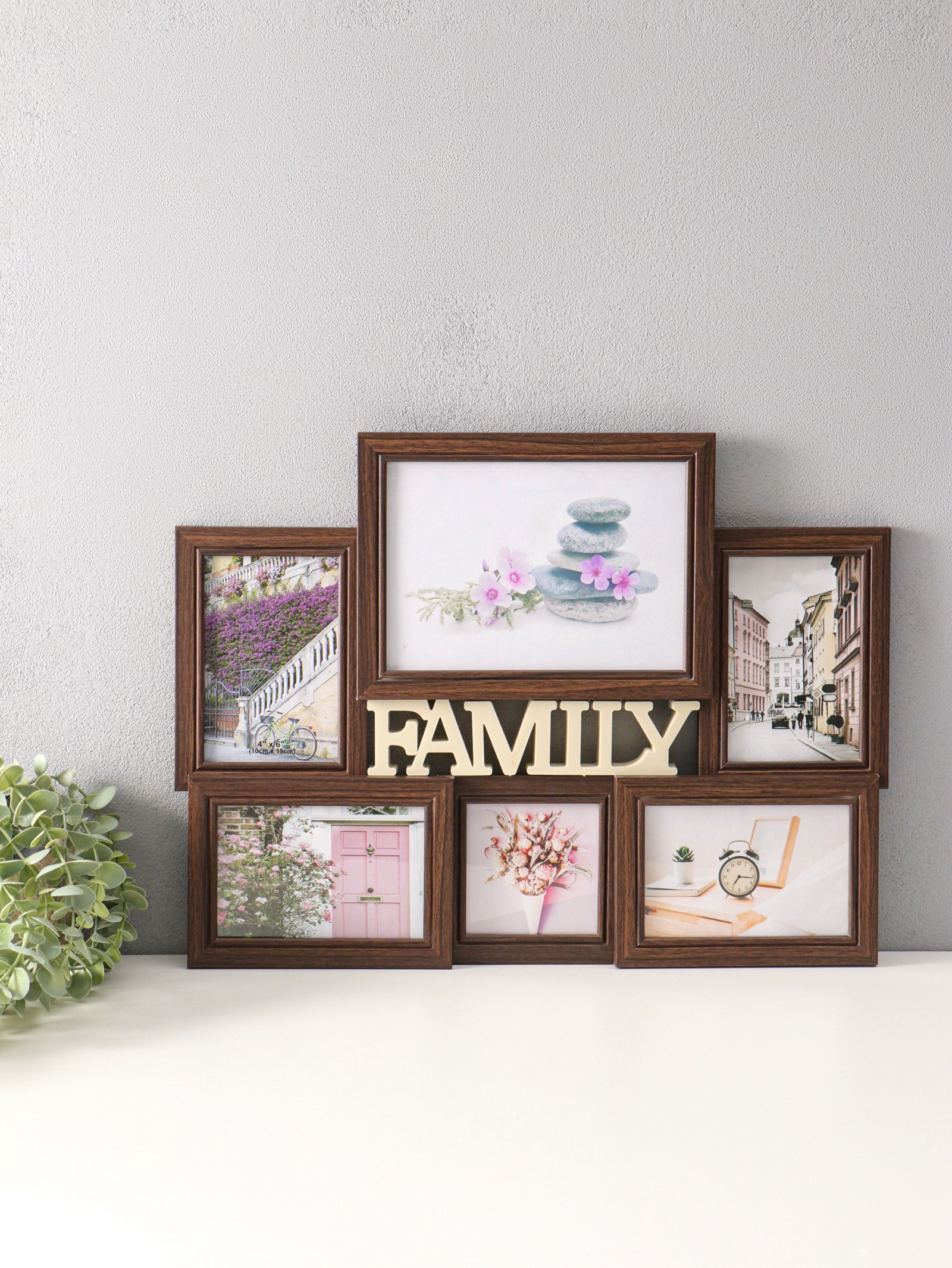 Фоторамка - коллаж на 6 фото 10x10 см, 10x15 см, 15x20 см "Семья", пластик под т. дерево, 49x36 см, 2x49x36 см., Китай
