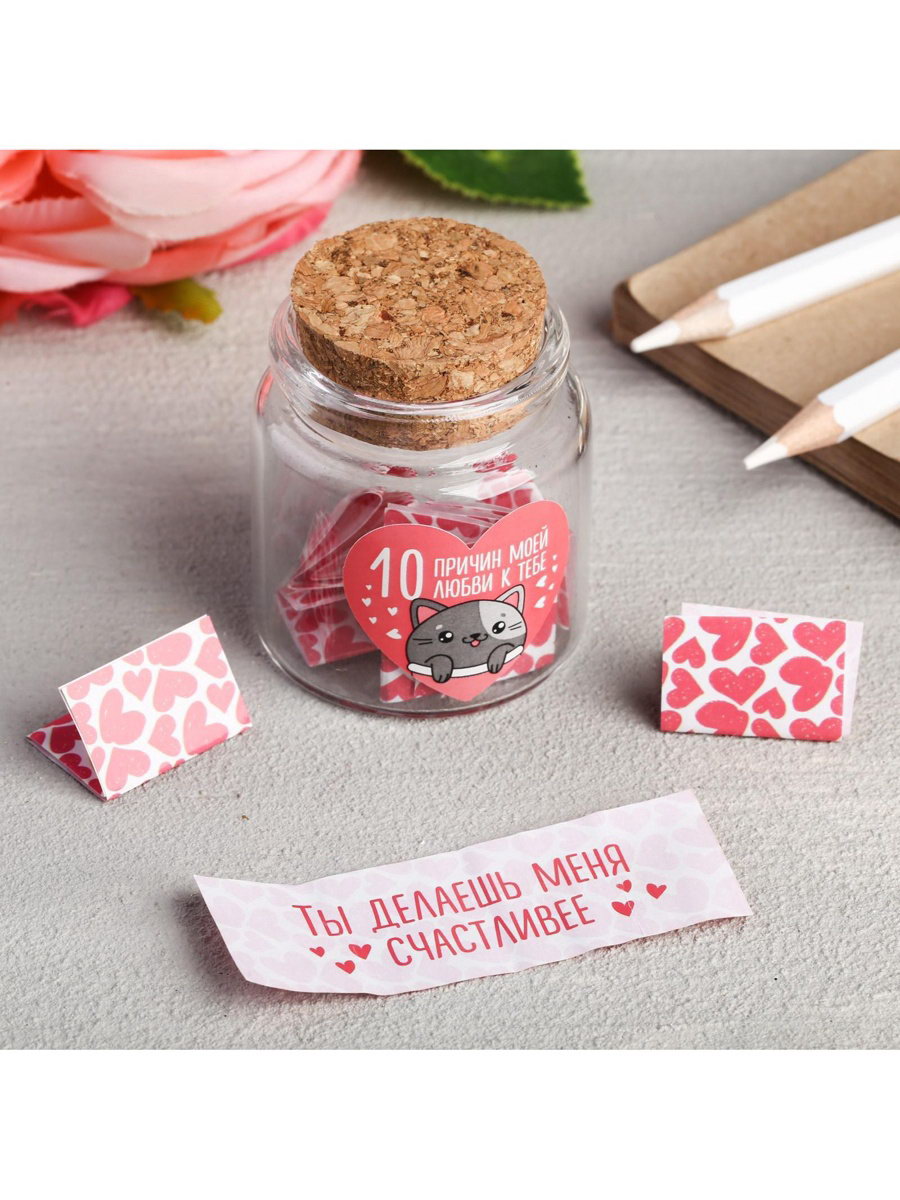Баночка с любовными пожеланиями "10 причин моей любви к тебе", 4.7x5 см, 4.7x5x4.7 см., Сима-ленд, Китай