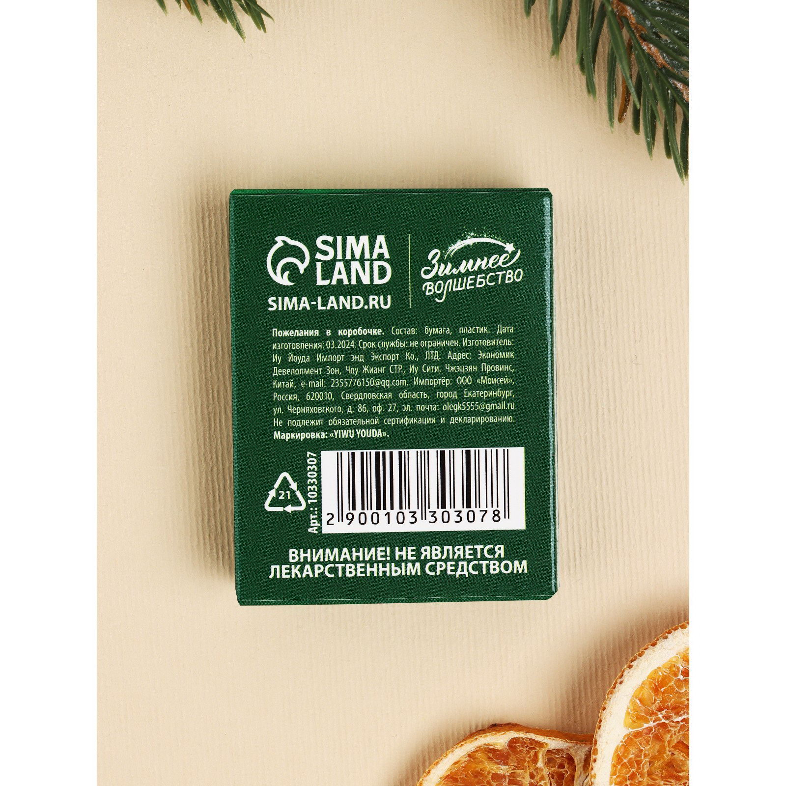Набор пожеланий в коробочке, 3 шт, Зимнее волшебство, Китай