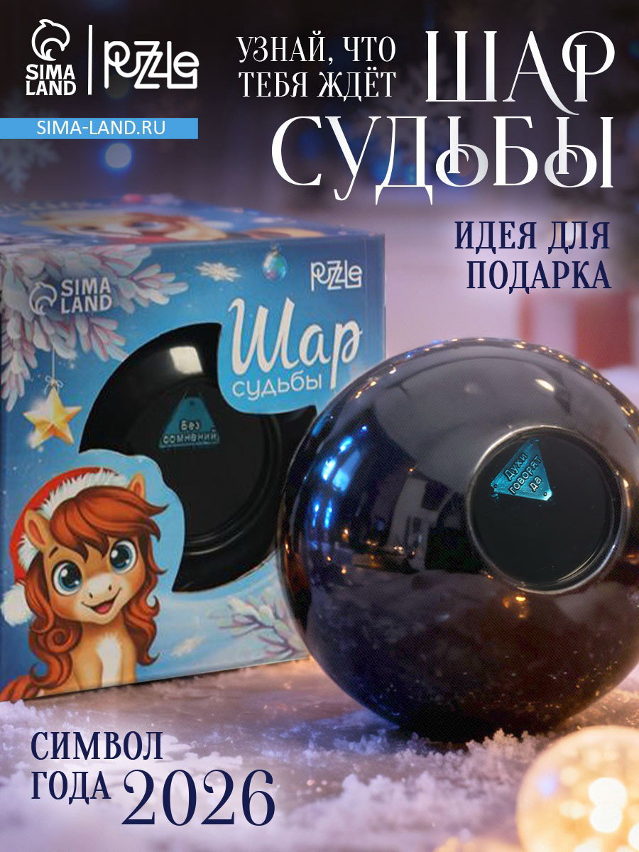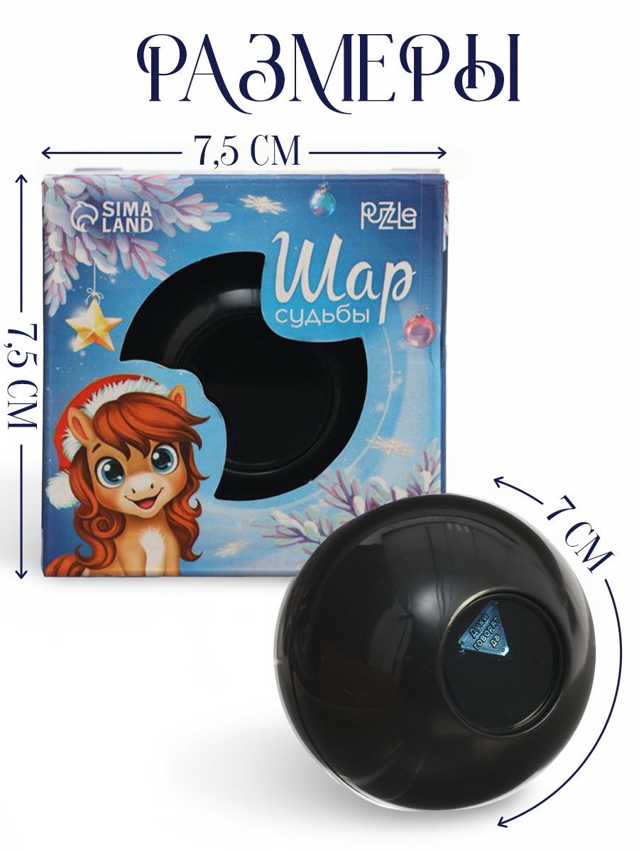 Размер упаковки: 7.5 x 7.5 x 7.5 см. tnved: 9503010000 Цвет: Чёрный Вид: Шары желаний Символ года: Символ года 2026 (Лошадь) Задай вопрос судьбе получи волшебный ответ! Шар предсказаний "Загадай желание" это не просто украшение, а персональный оракул, который поможет принять решение и узнать, что ждёт в будущем. Просто встряхните его и доверьтесь магии.