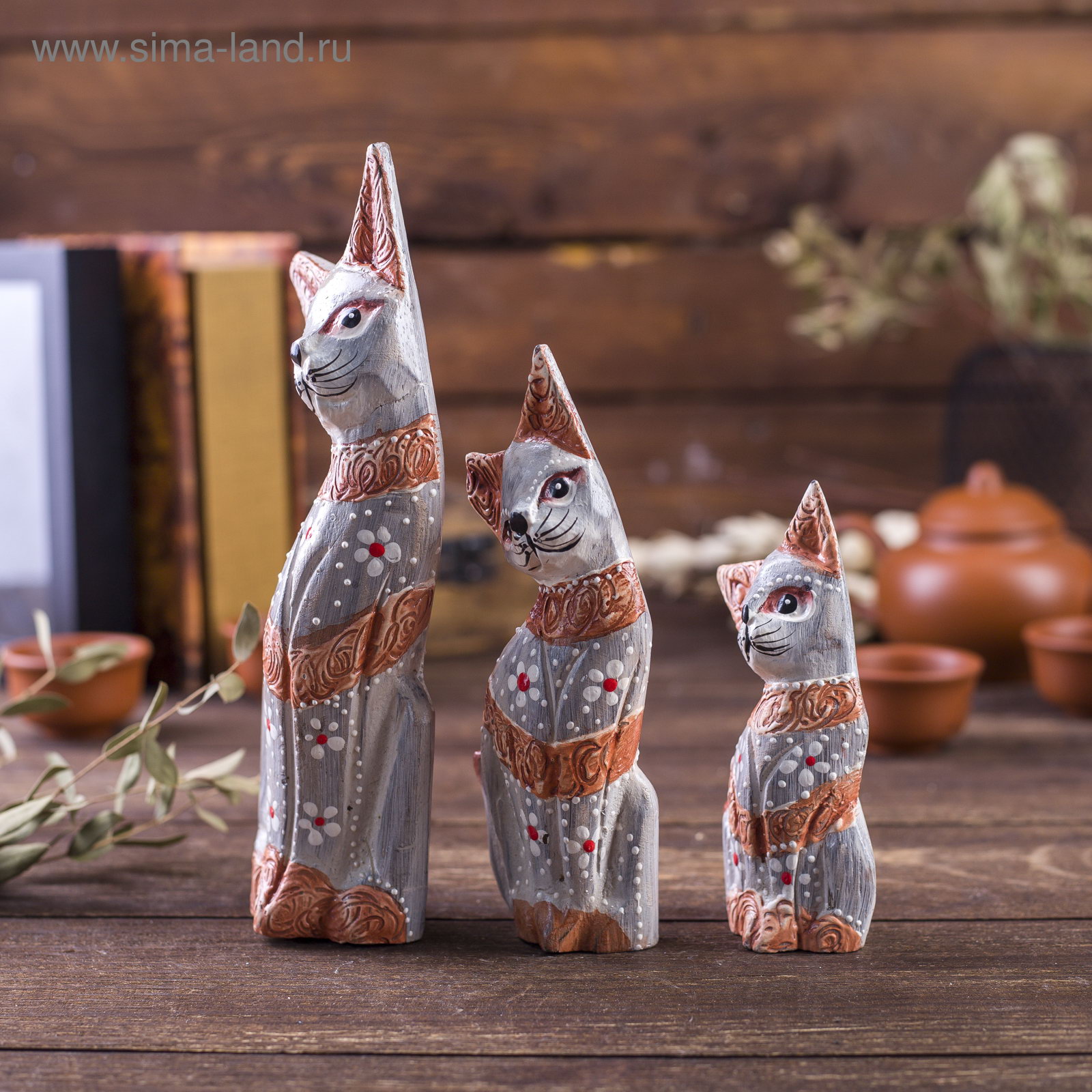 Сувенирный набор "Кошечки с полосками" дерево, 13x4x20 см., Индонезия