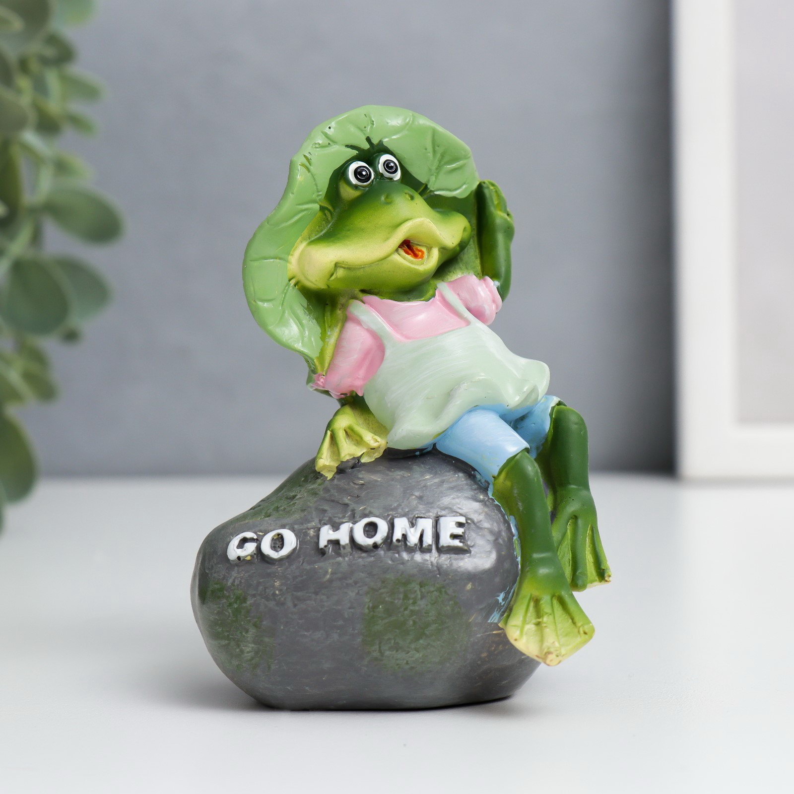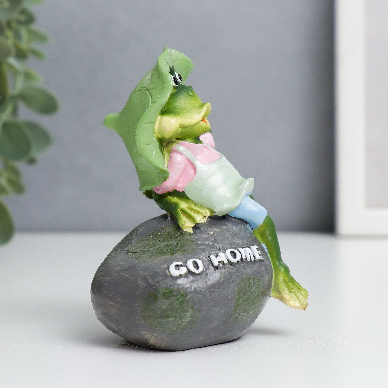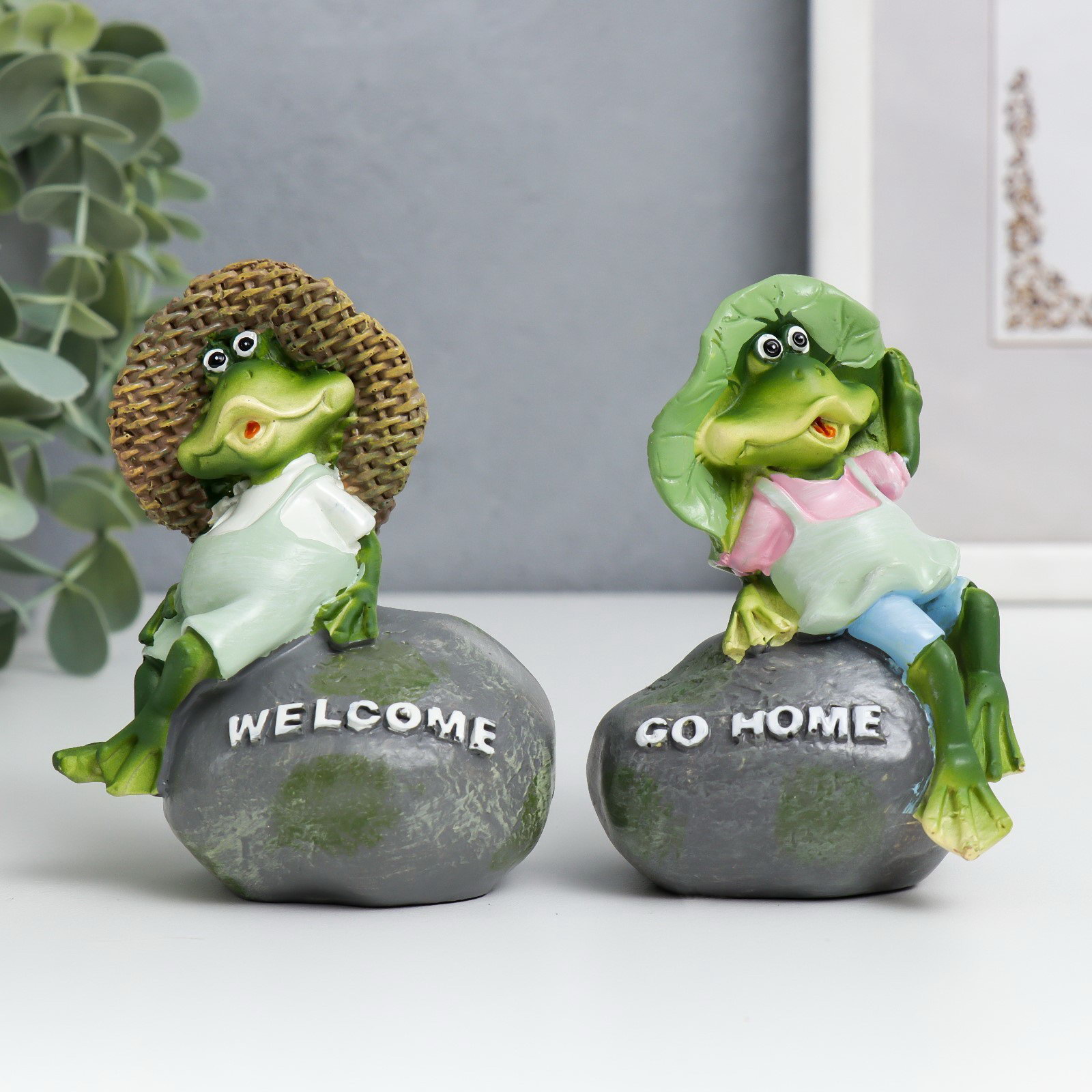 Сувенир полистоун "Лягушата на камнях в соломенных шляпках" набор 2 шт 10х5.5х7.5 см, 5.5x7.5x10 см., Китай