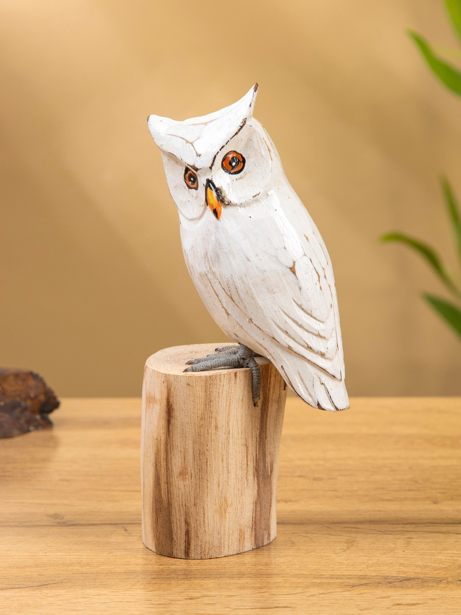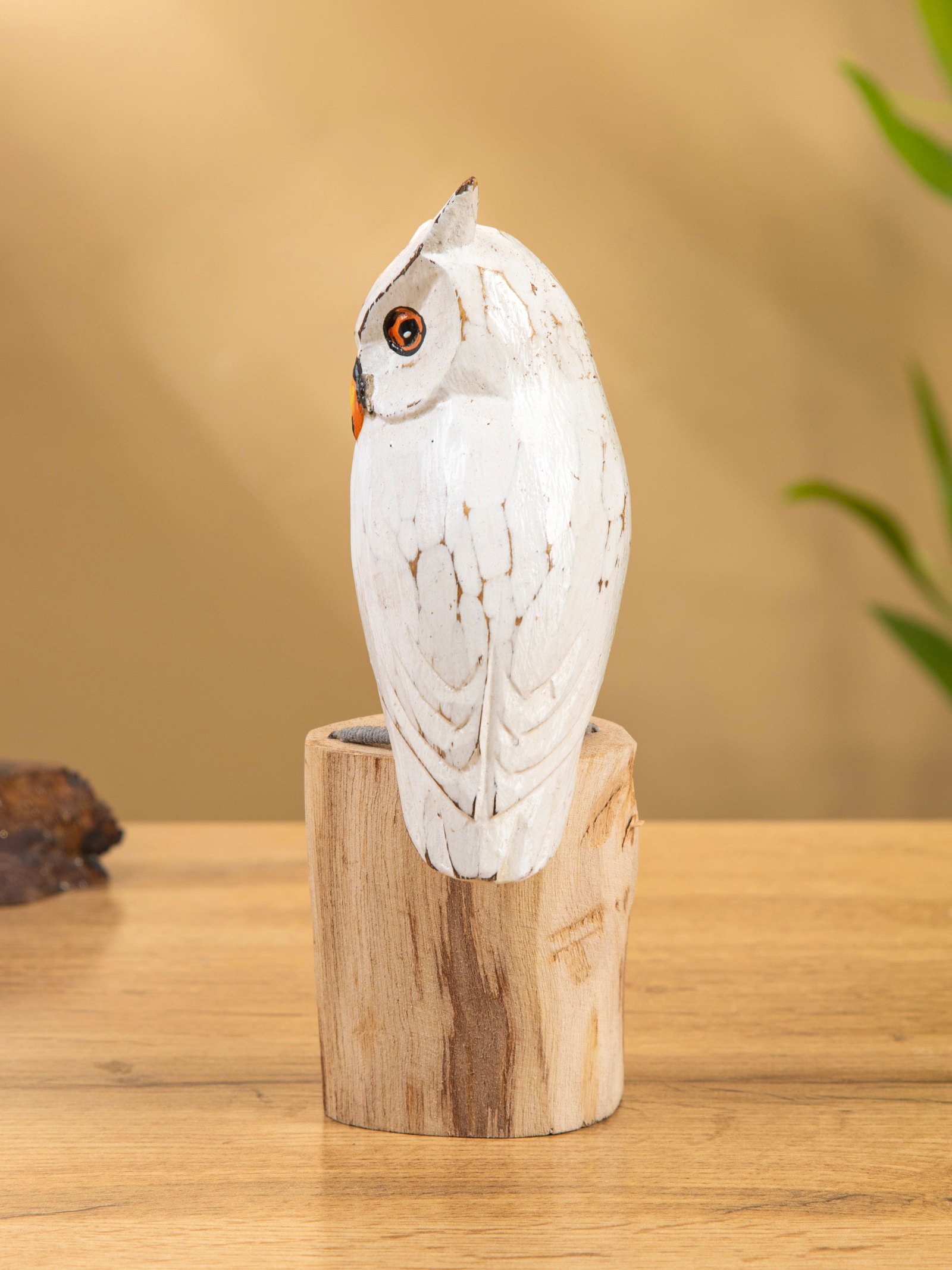 Cувенир дерево "Совушка на пеньке" 15 см, 6x9x15 см., Индонезия