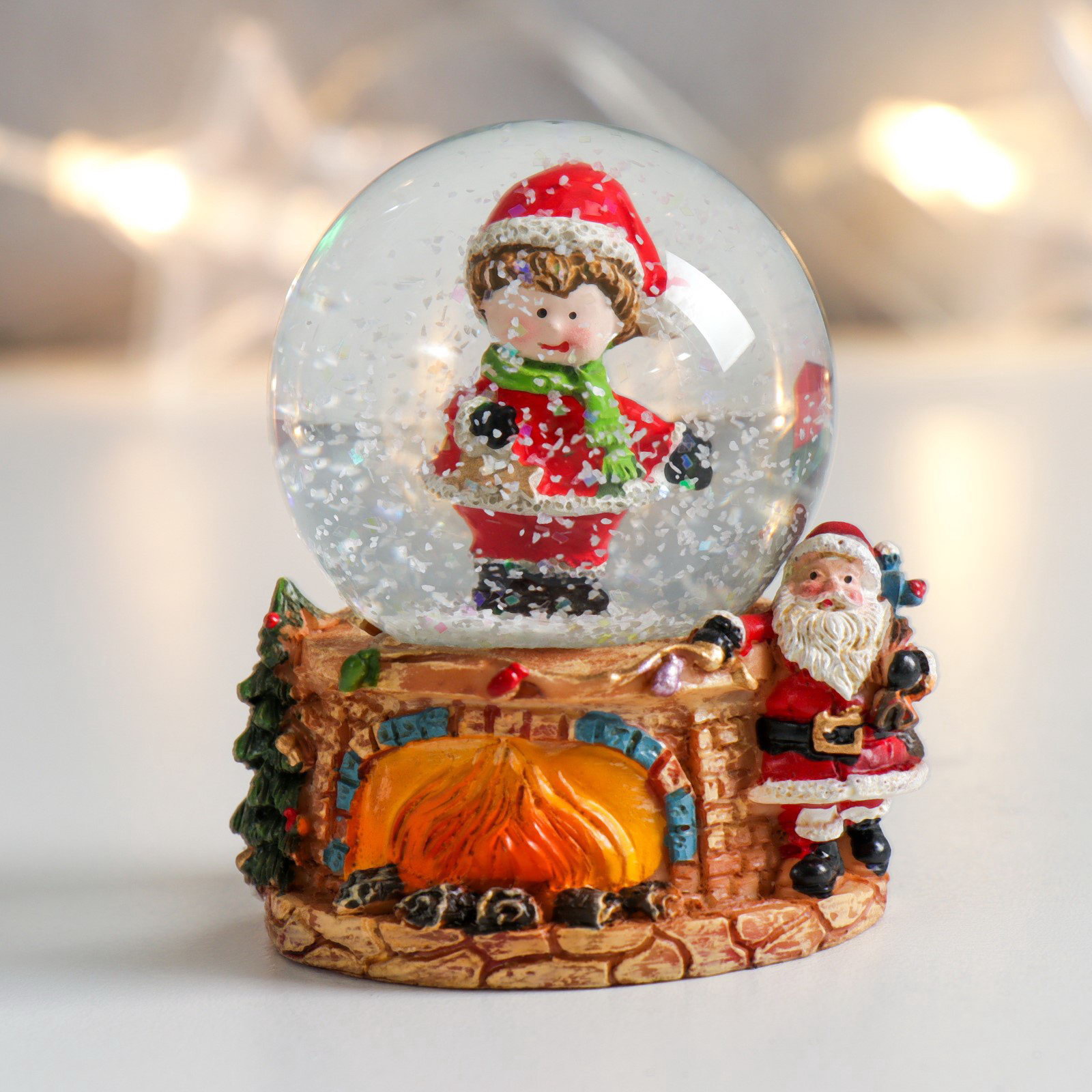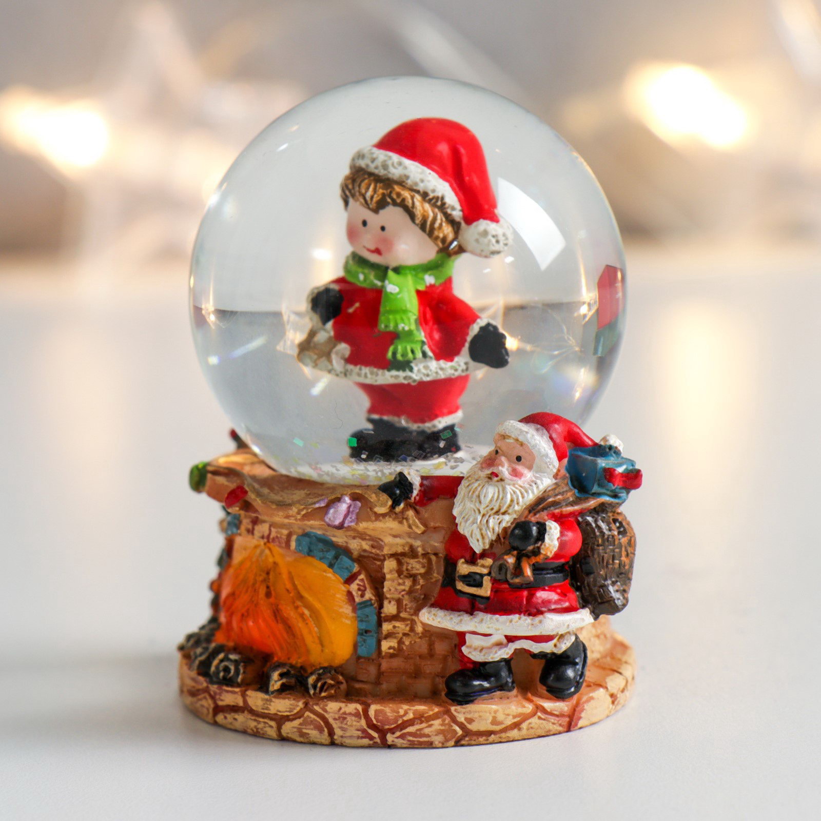 Снежный шар новогодний стеклянный "Малыш со звёздами в ожидании Деда Мороза", полистоун, 4.5х4.5х6.5 см, 4.5x4.5x6.5 см., Китай