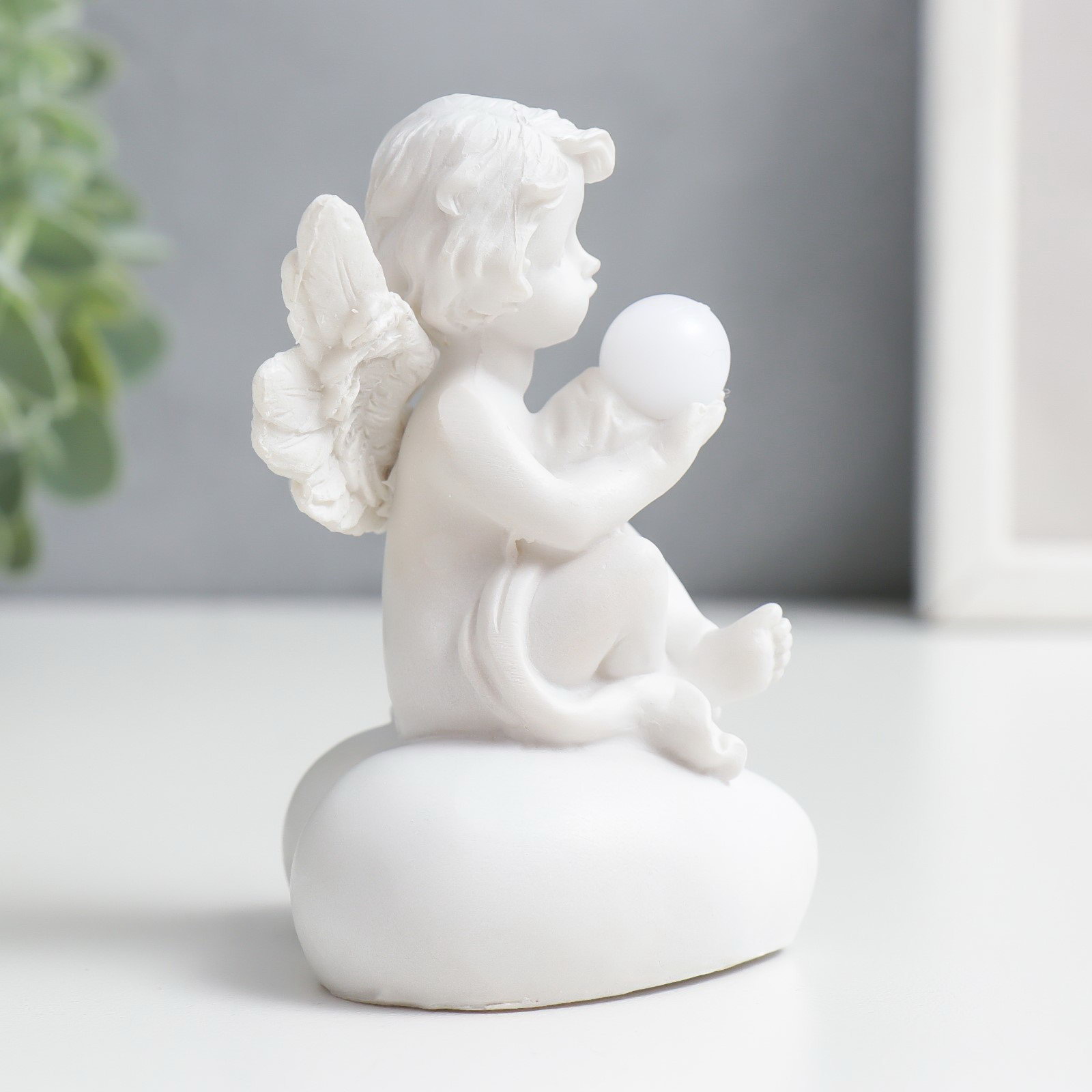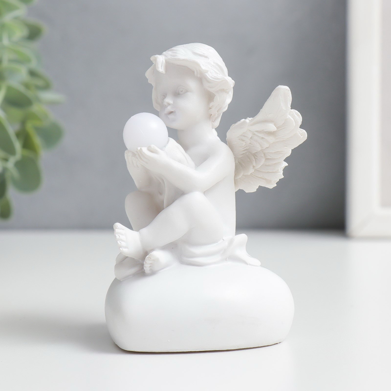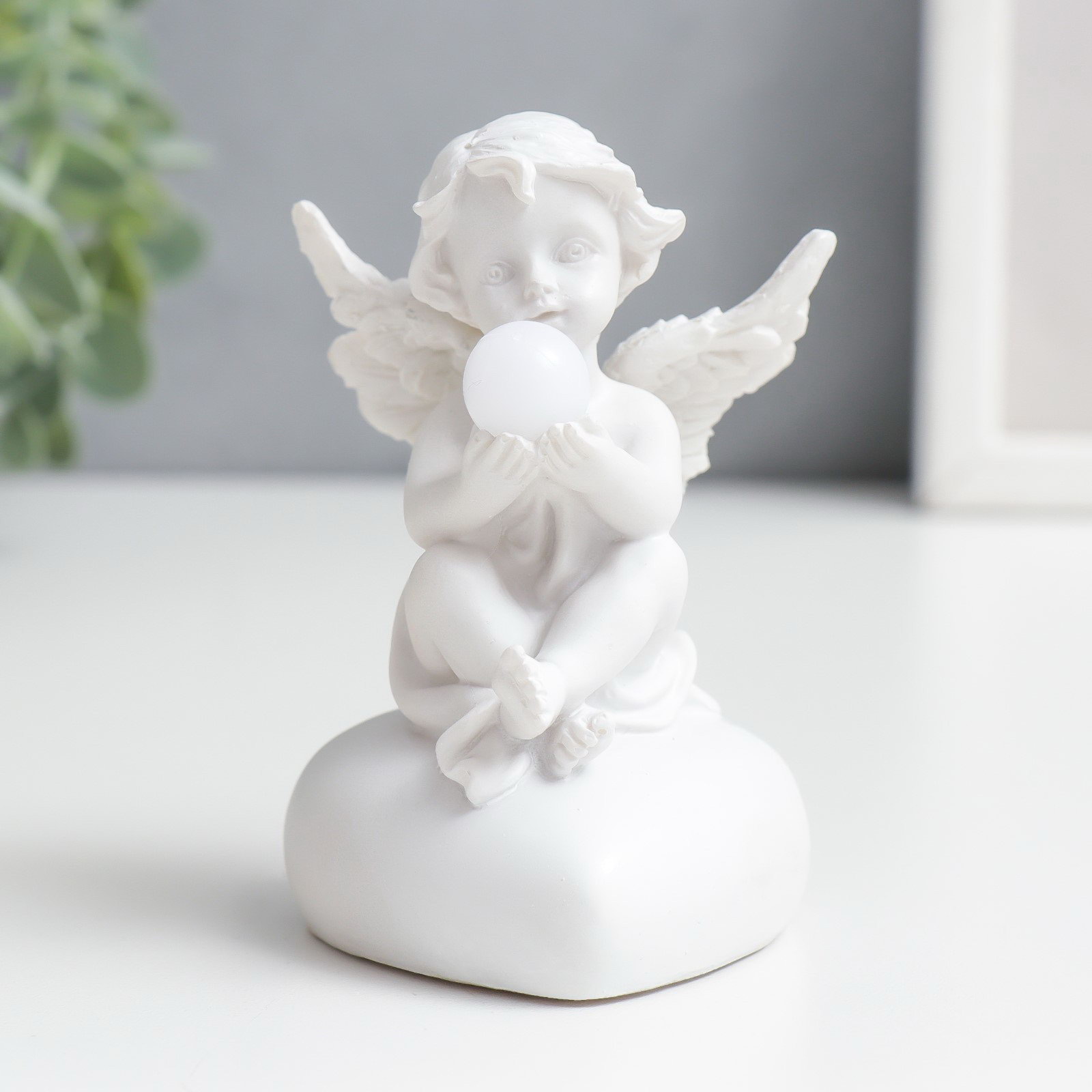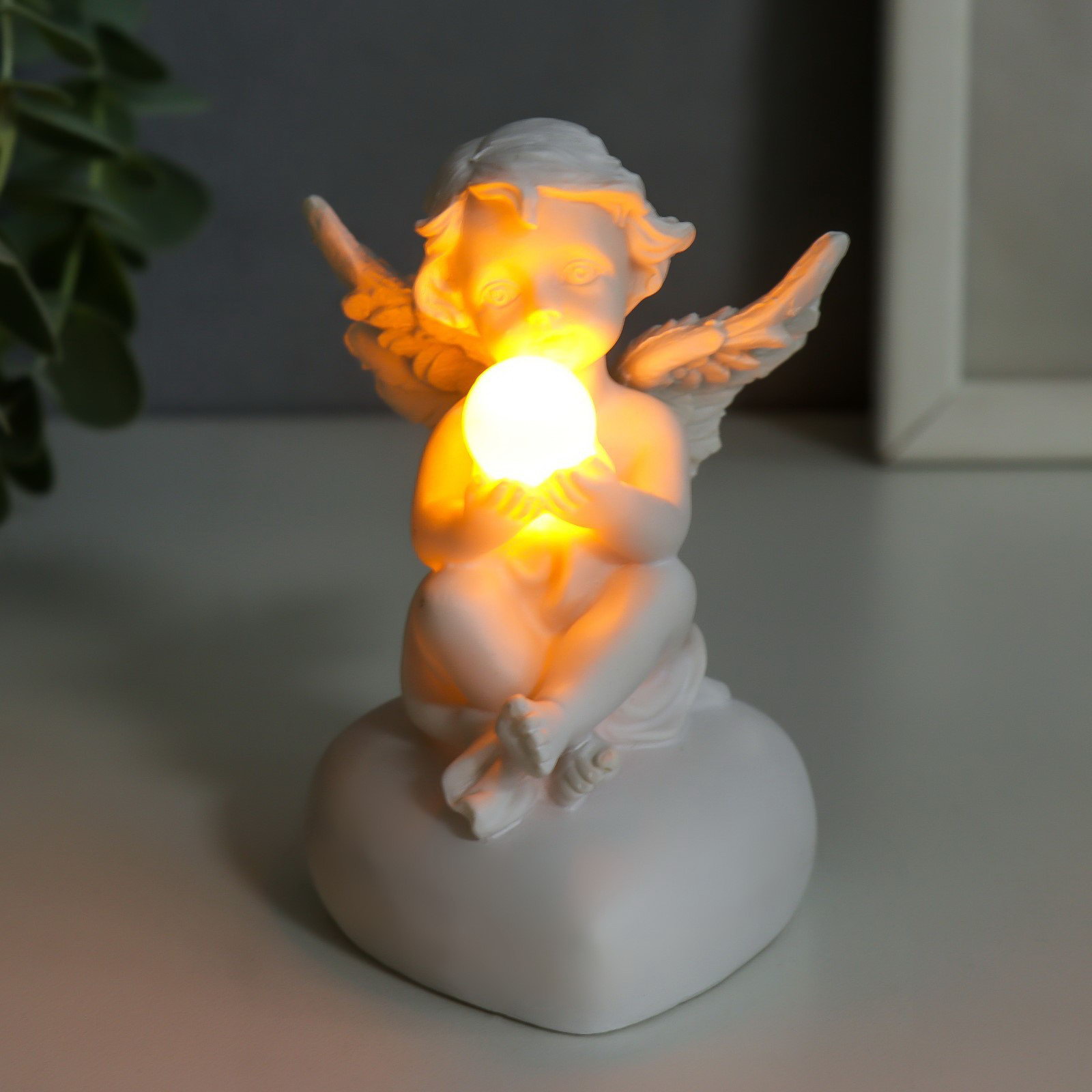 Сувенир полистоун свет "Белоснежный ангел на сердце с огоньком" 9х5.5х5.7 см, 5.5x5.7x9 см., Китай