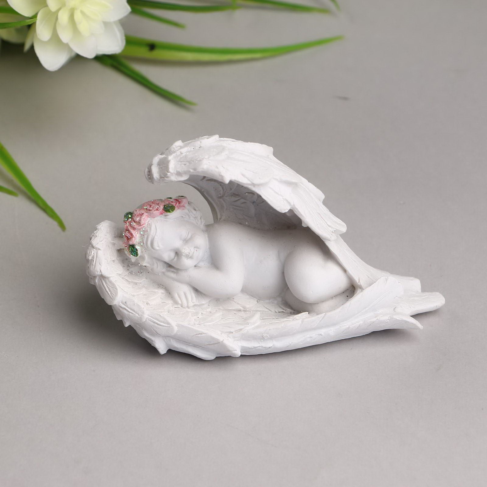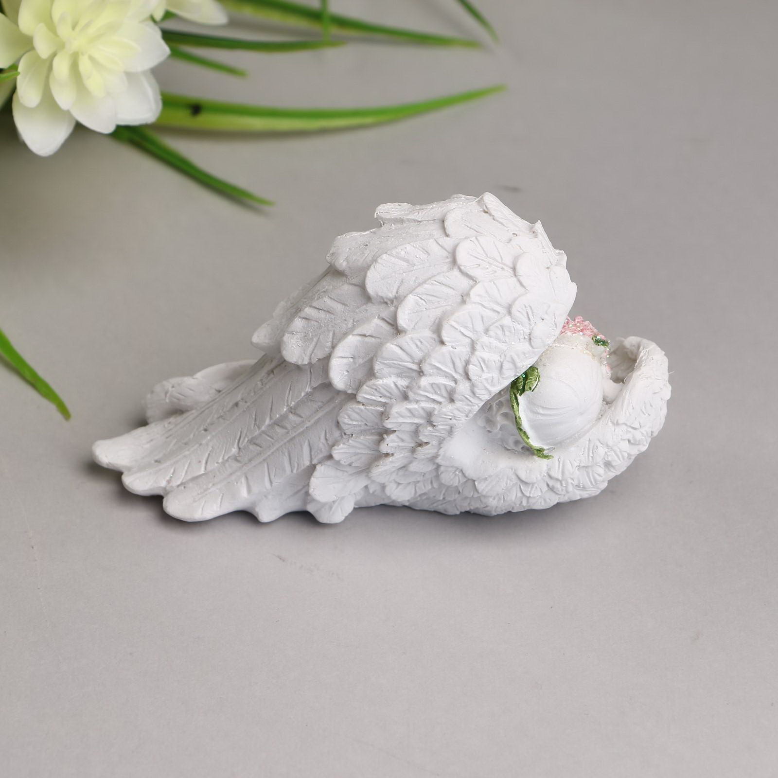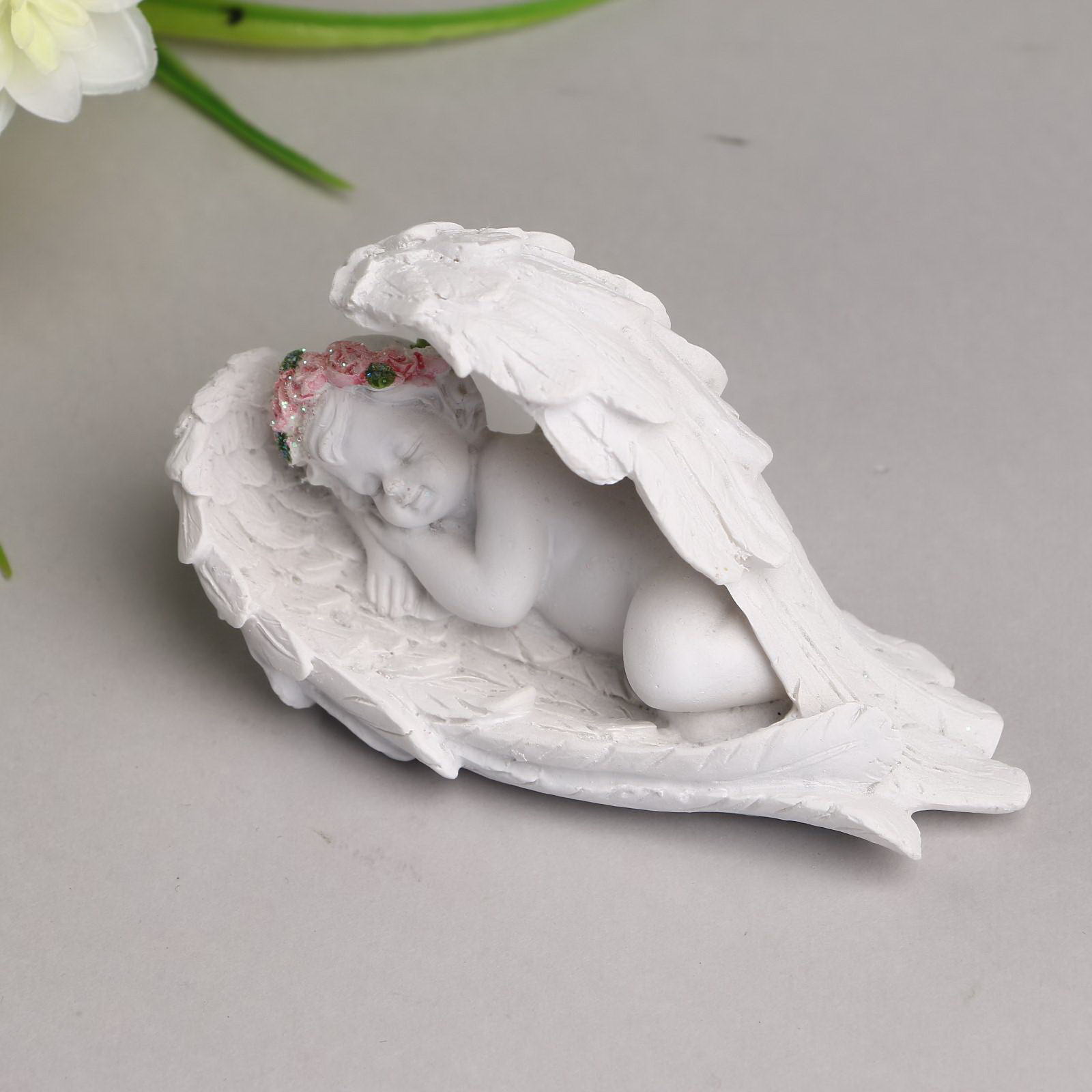 Фигурка полистоун "Белоснежный ангел в розовом веночке спит в крыльях", 5.3x9.5x3 см, 9.5x3x5.3 см., Китай