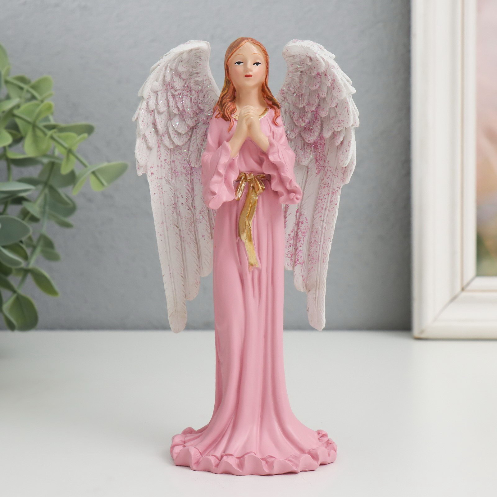 Фигурка полистоун "Девушка ангел-хранитель в розовом платье - молитва", 16x8x5 см, 8x5x16 см., Китай