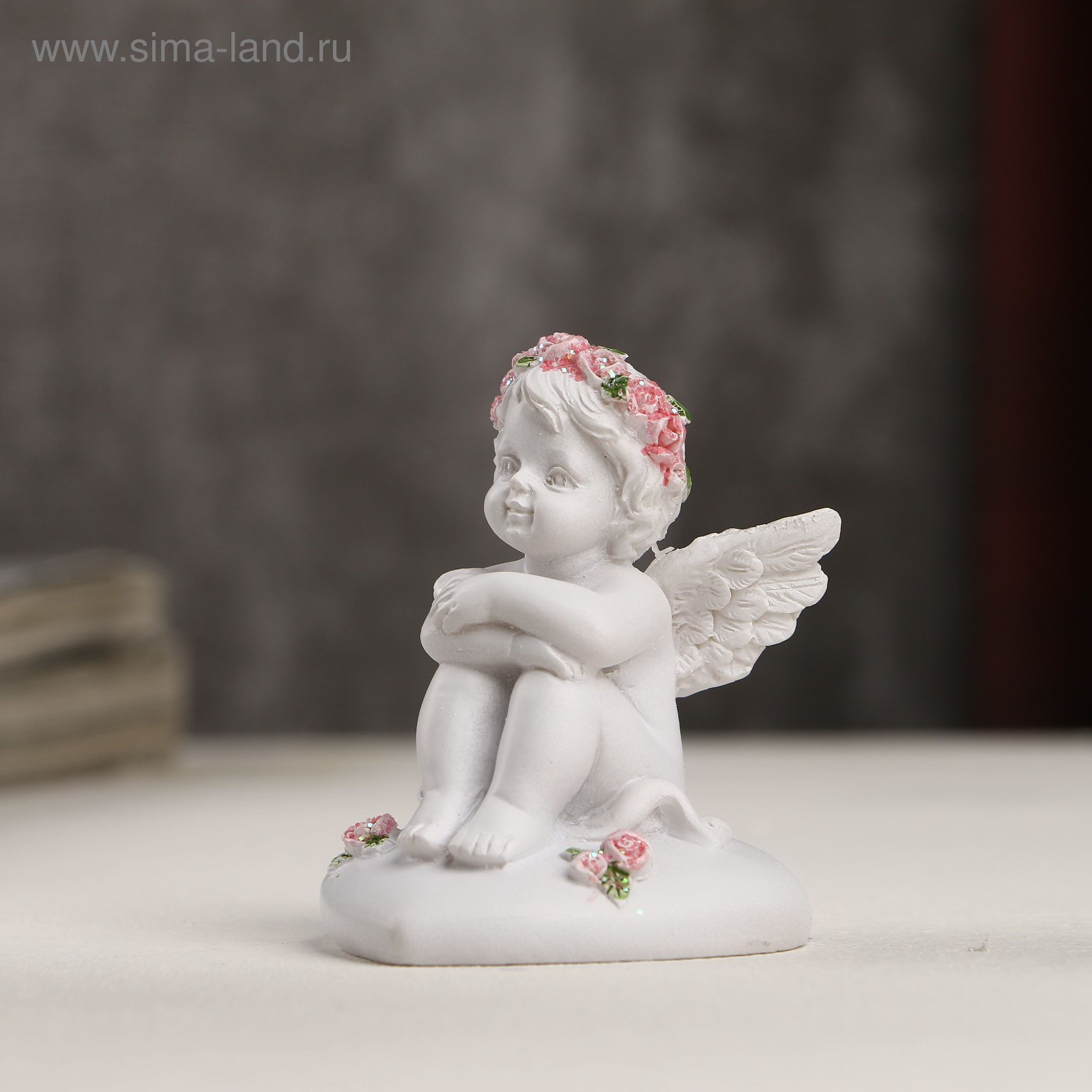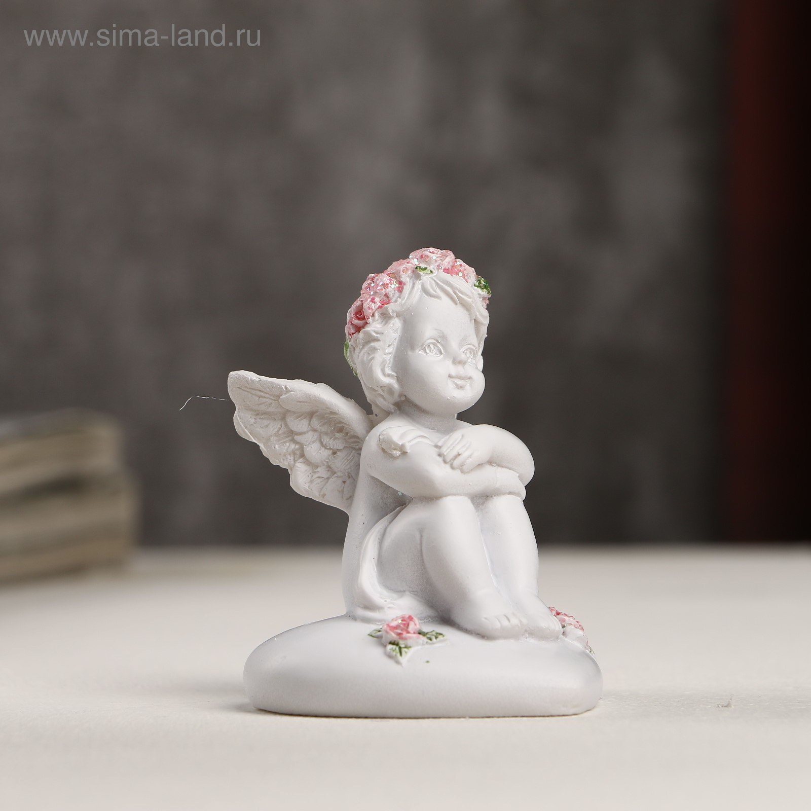 Фигурка полистоун "Белоснежный ангел в розовом веночке на сердце", 6.2x5x4.5 см, 5x4.5x6.2 см., Китай