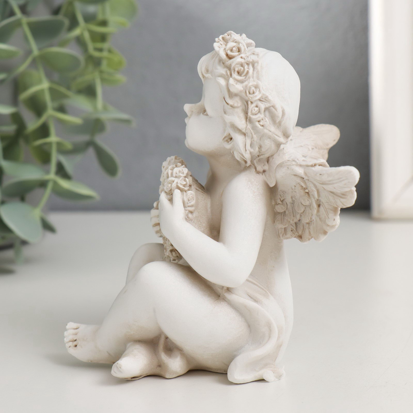 Фигурка полистоун "Ангелочек с венком из роз в форме сердца", 11x9x8.4 см, МИКС, 9x8.4x11 см., Китай