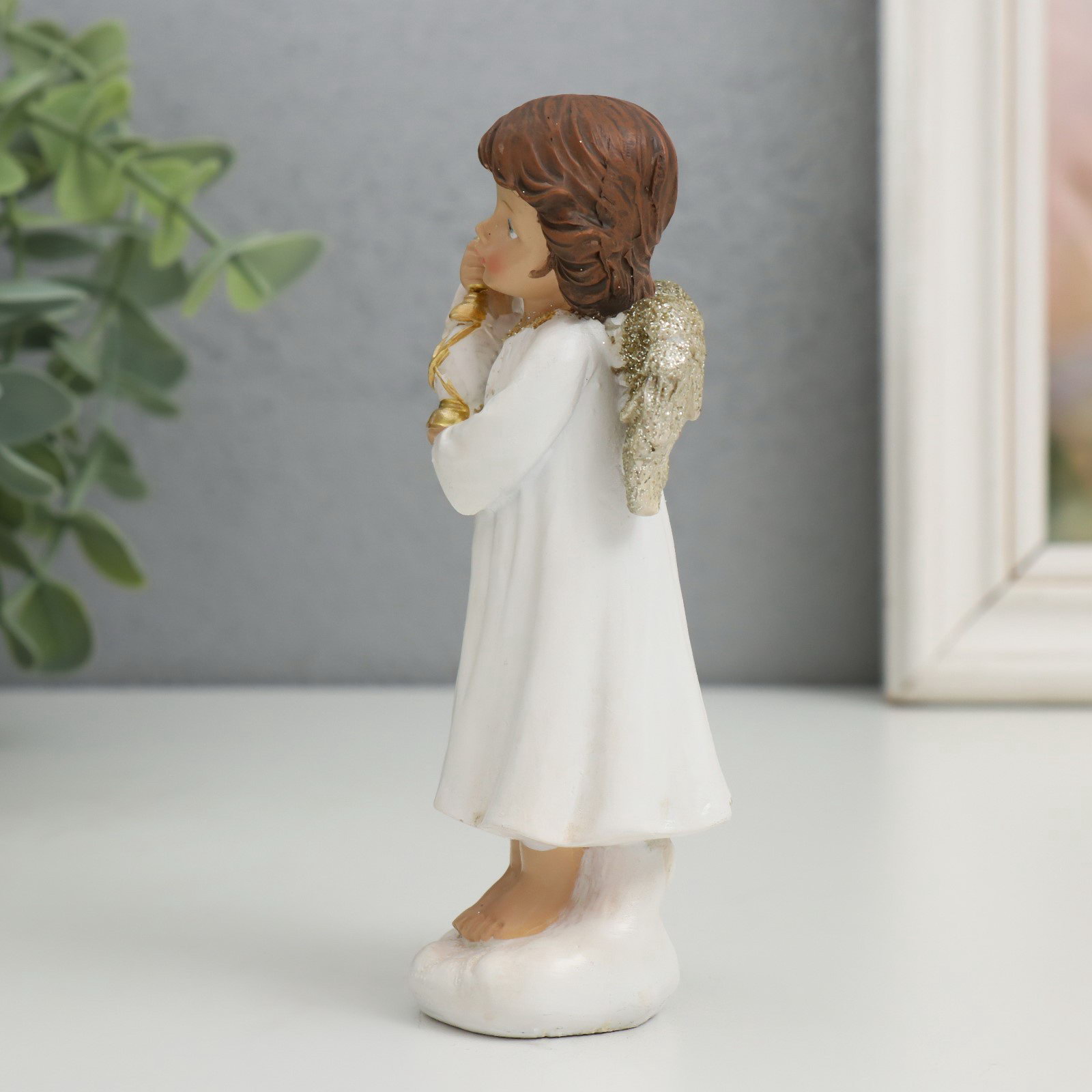 Фигурка полистоун "Ангелочек с фонариком", золотые крылышки, 4x4.8x13 см, 4.8x4x13 см., Китай