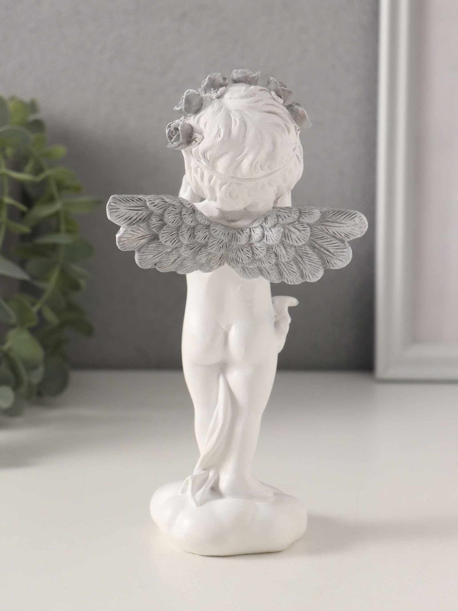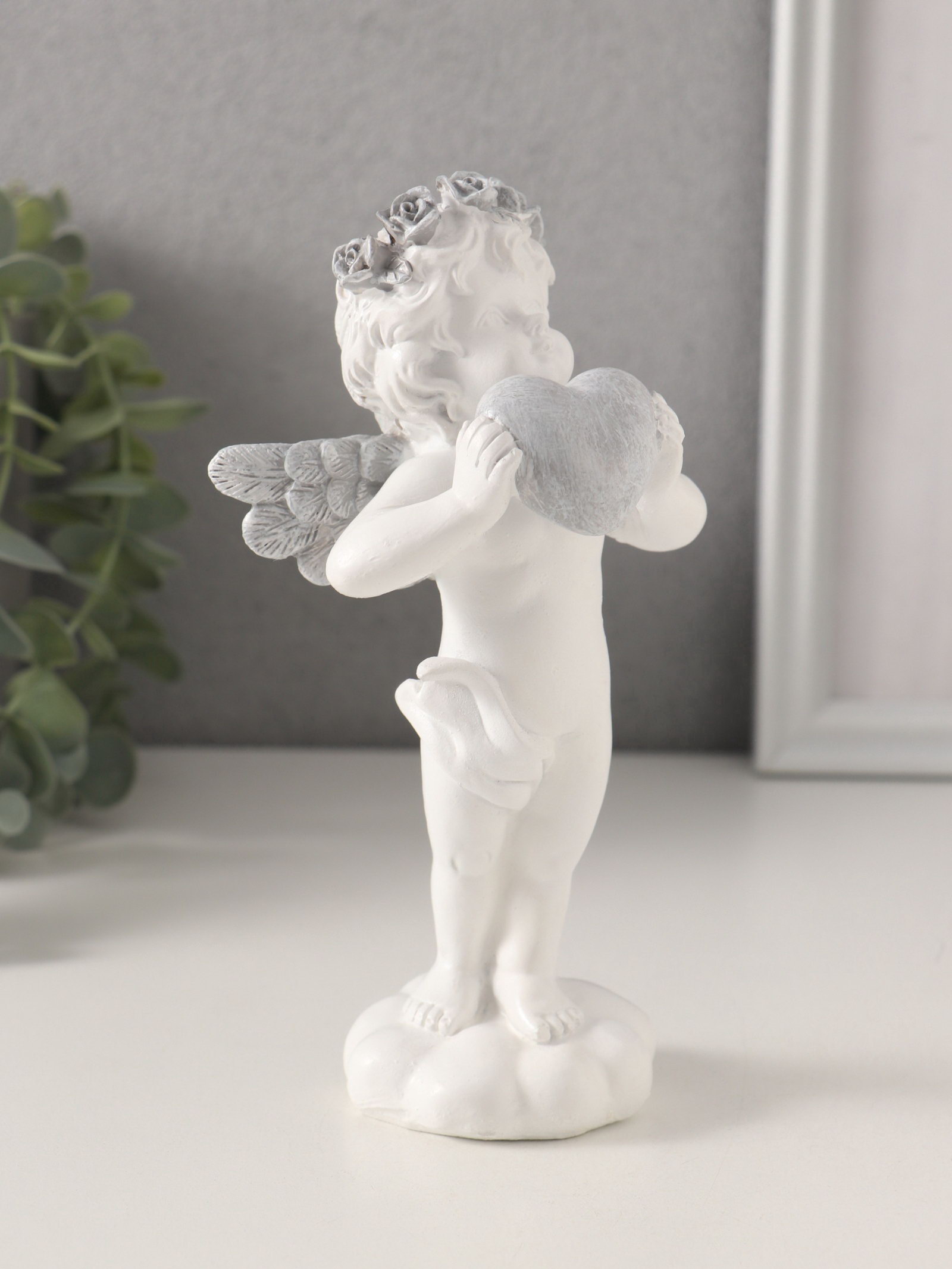 Фигурка полистоун "Ангелочек с сердцем в руках, с венком в волосах", 8.5x7x16.5 см, 7x8.5x16.5 см., Китай