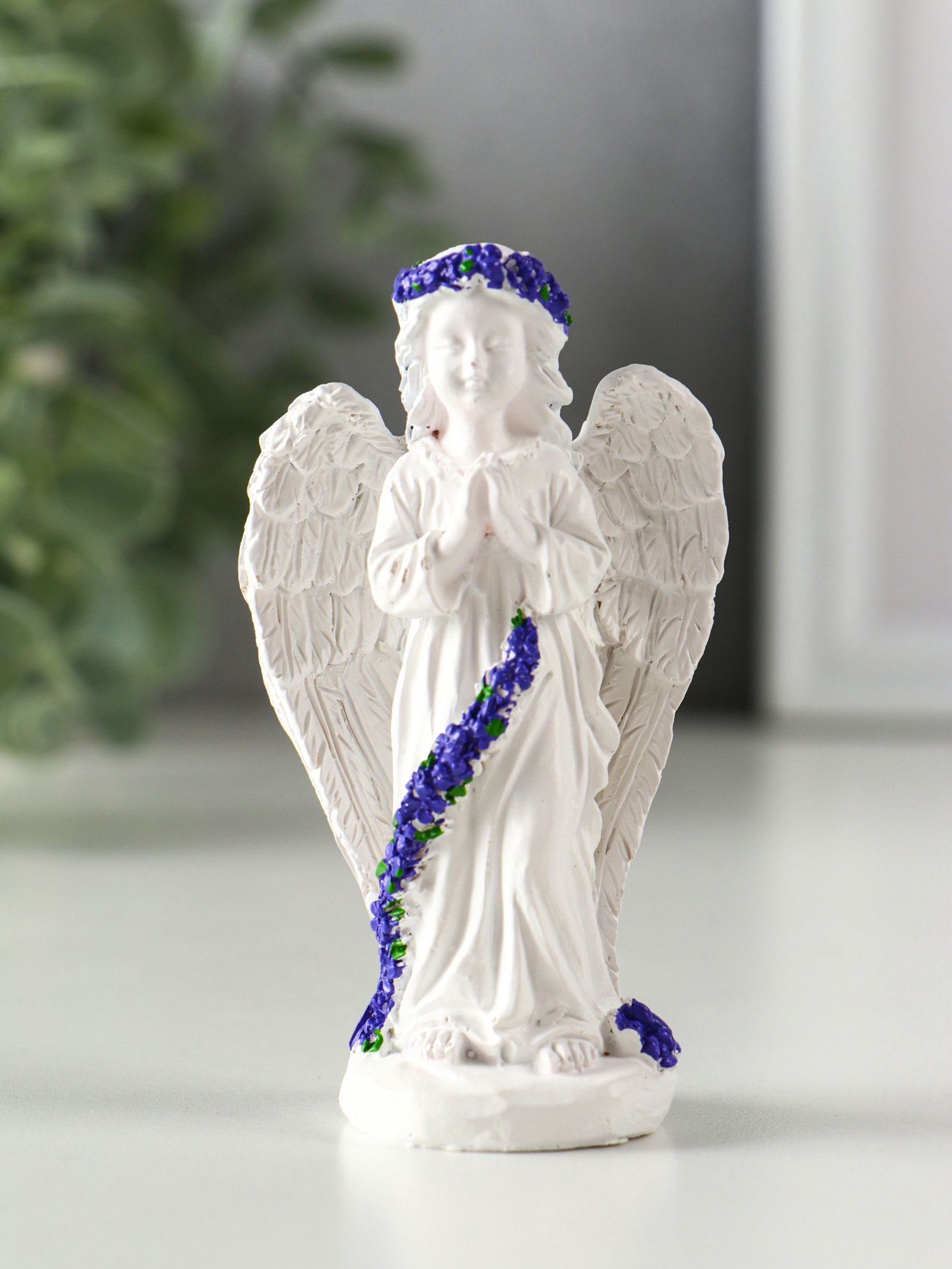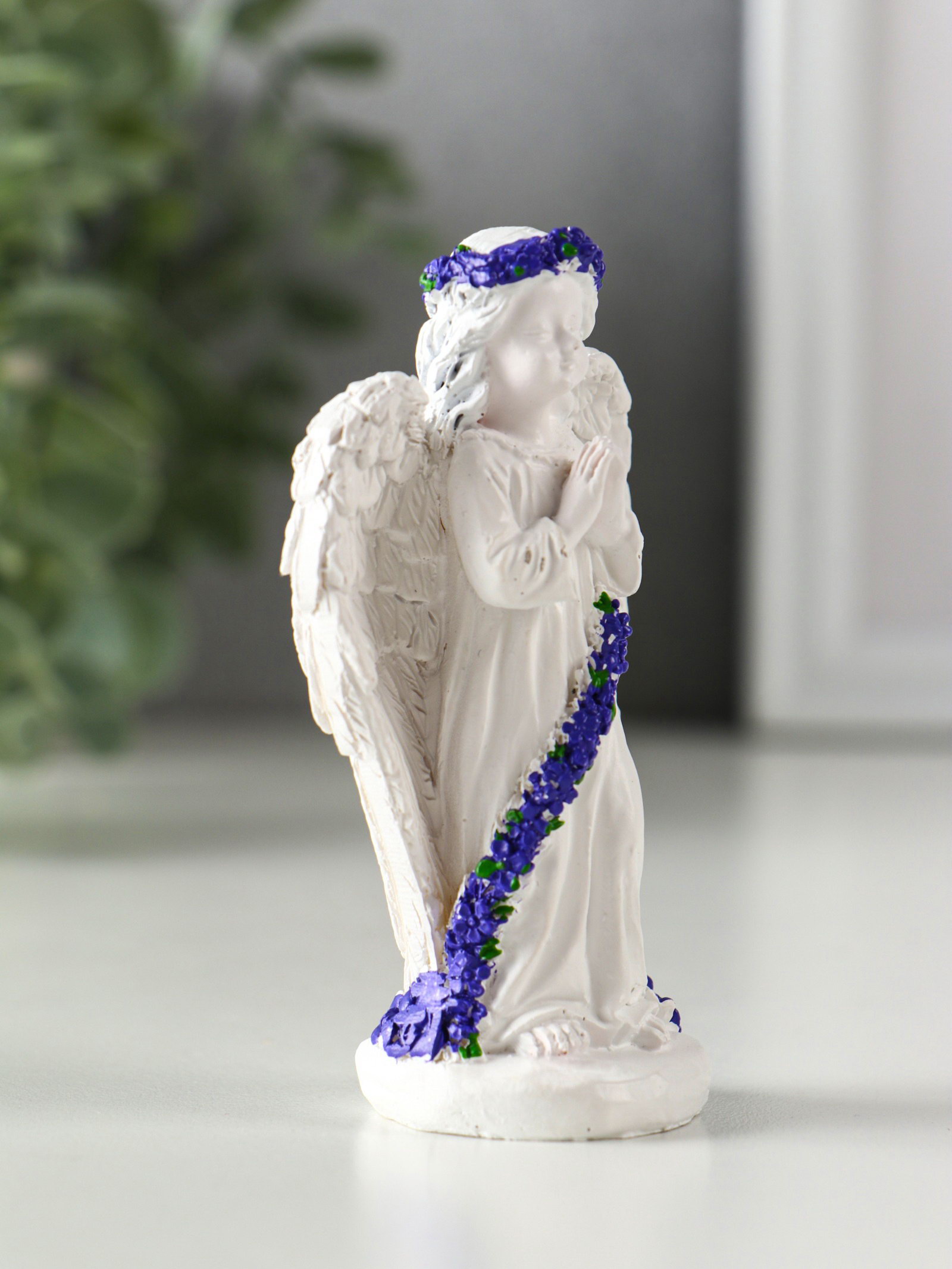 Фигурка полистоун "Девочка-ангел платье с лавандой - молитва", бело-фиолетовый, 5.5x3.5x9.3 см, 3.5x5.5x9.3 см., Китай