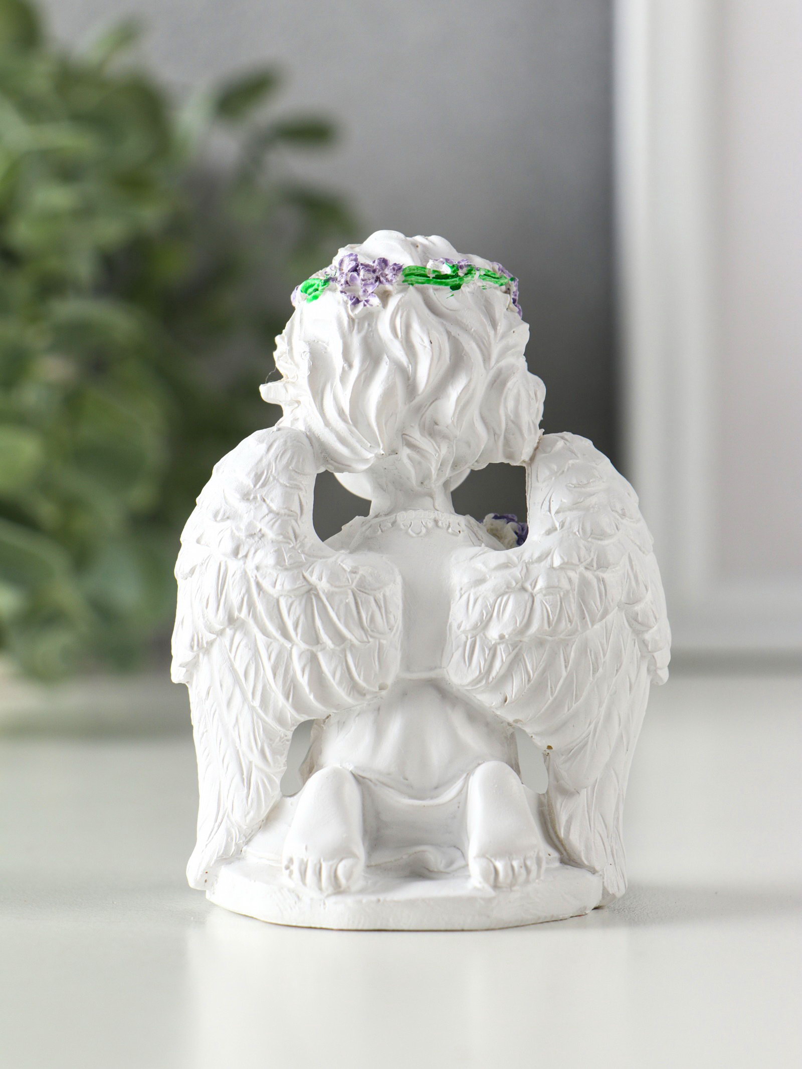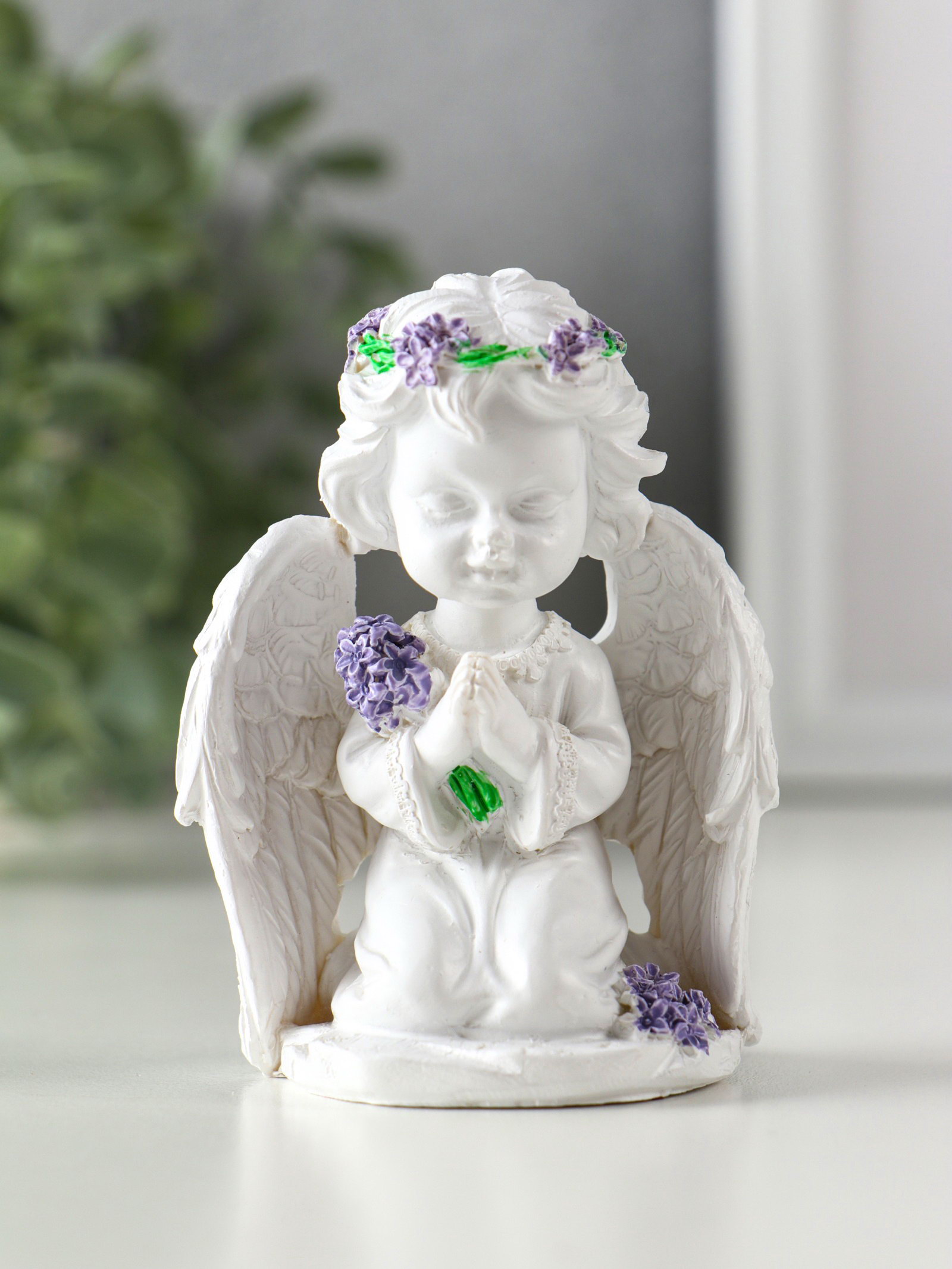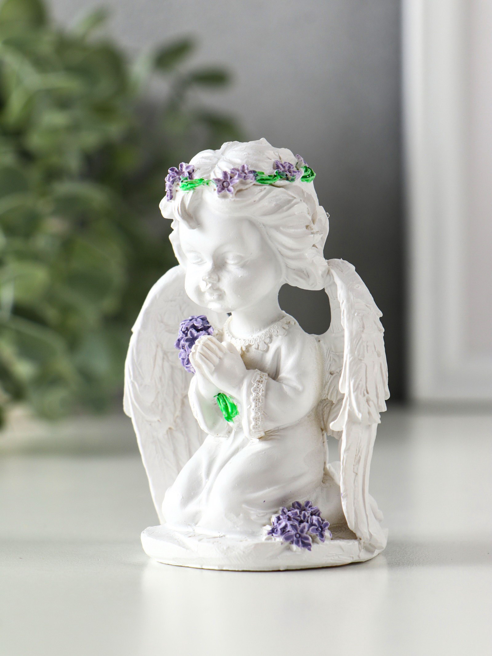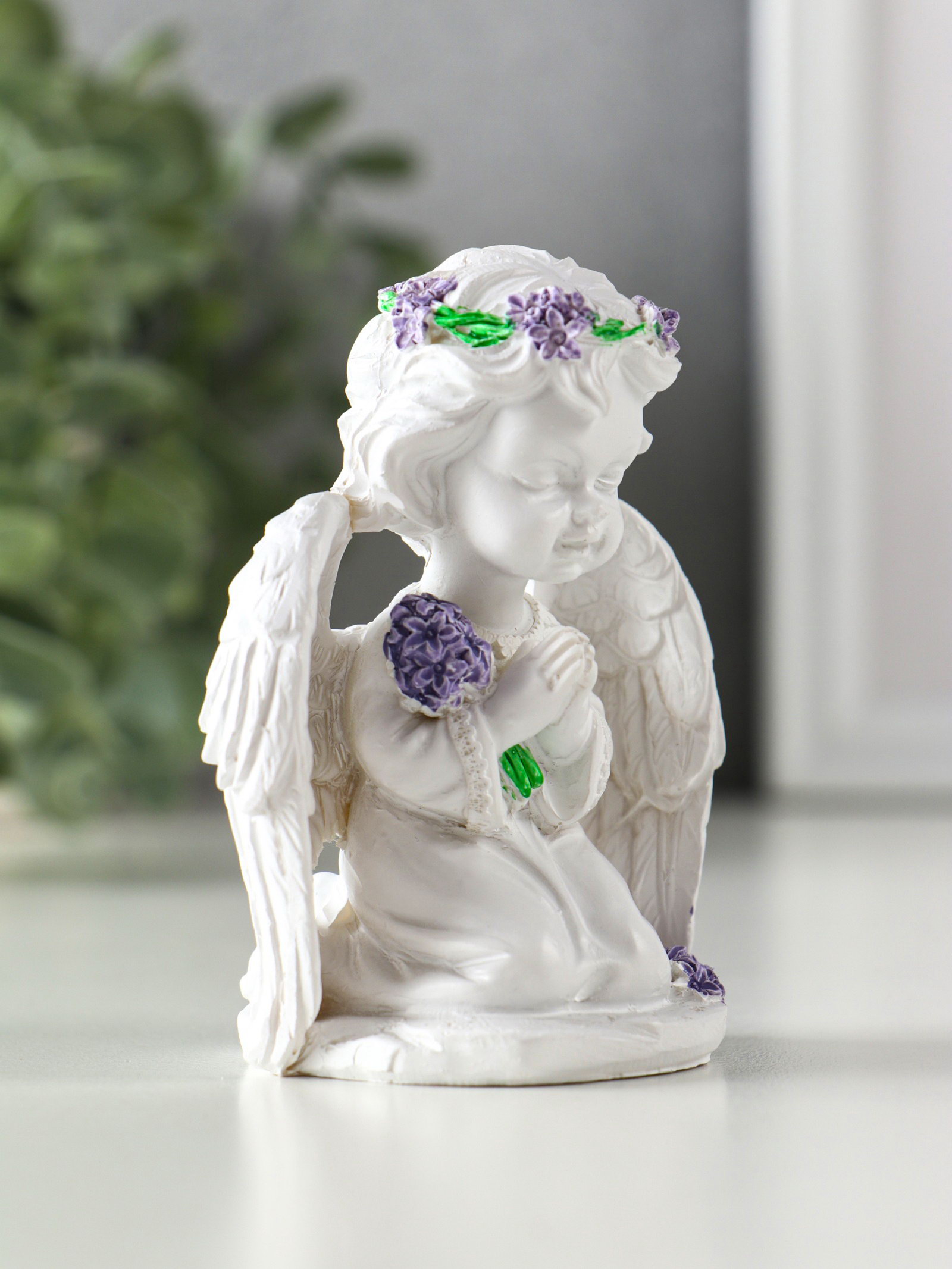 Фигурка полистоун "Ангелочек с букетом лаванды", белый с фиолетовым, 7x5x9 см, 5x7x9 см., Китай