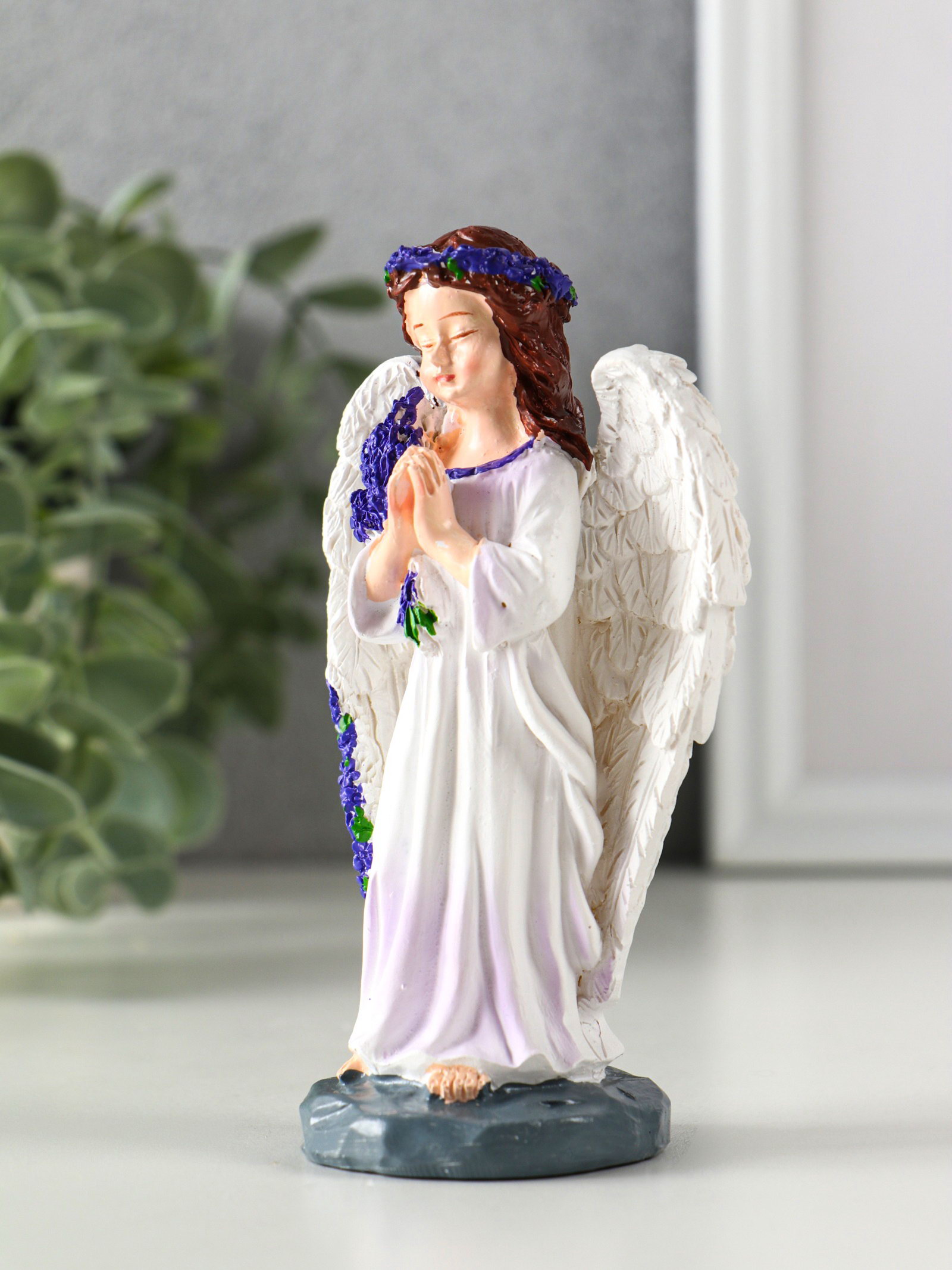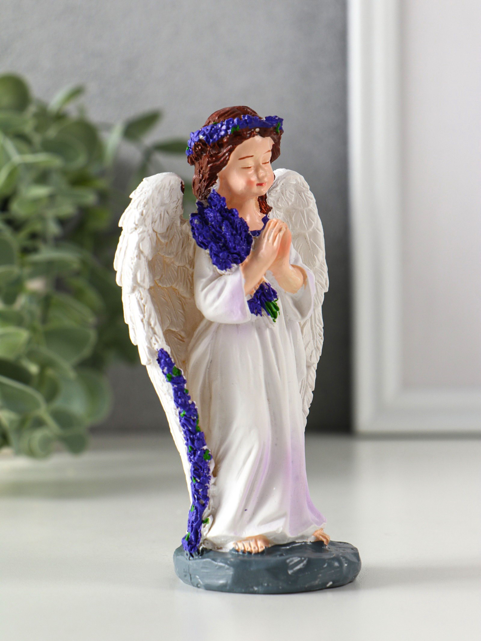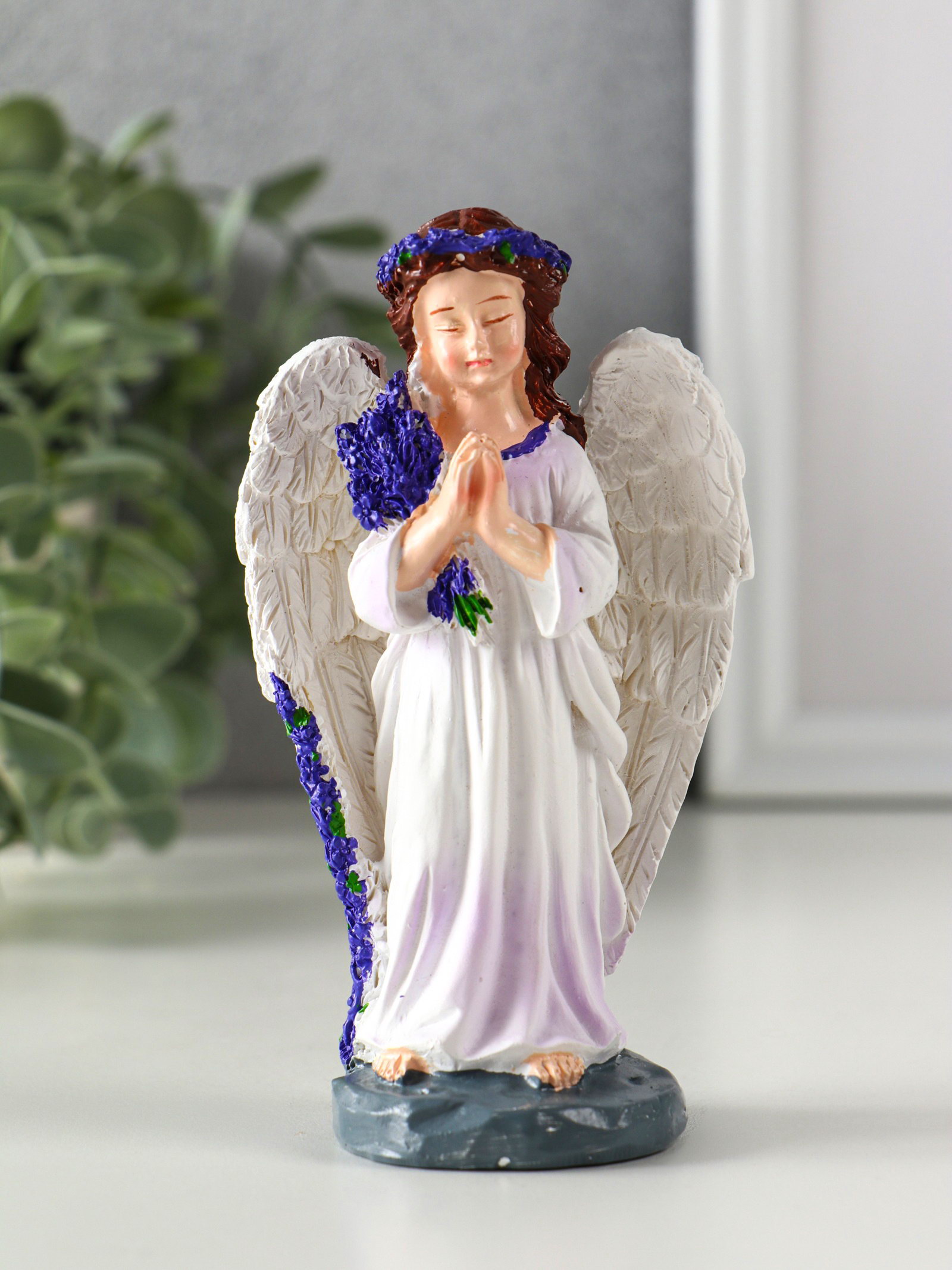 Фигурка полистоун "Девочка-ангел с букетом лаванды - молитва", фиолетовый, 7.7x4x12.5 см, 4x7.7x12.5 см., Китай