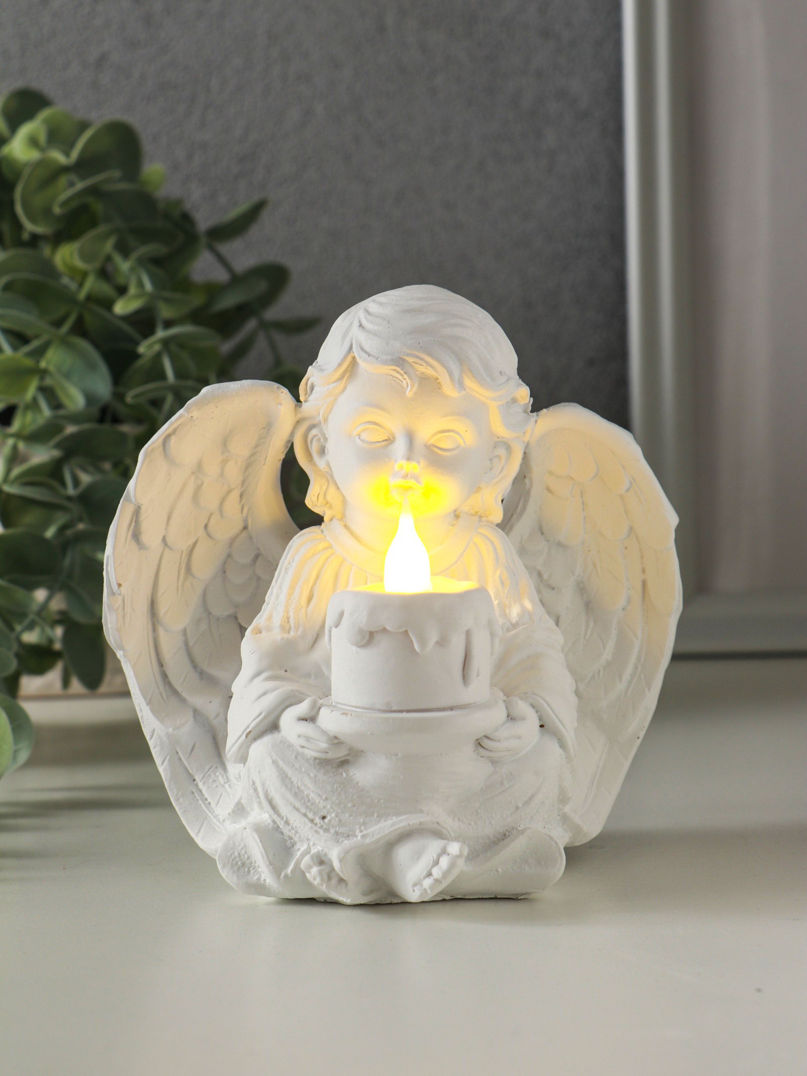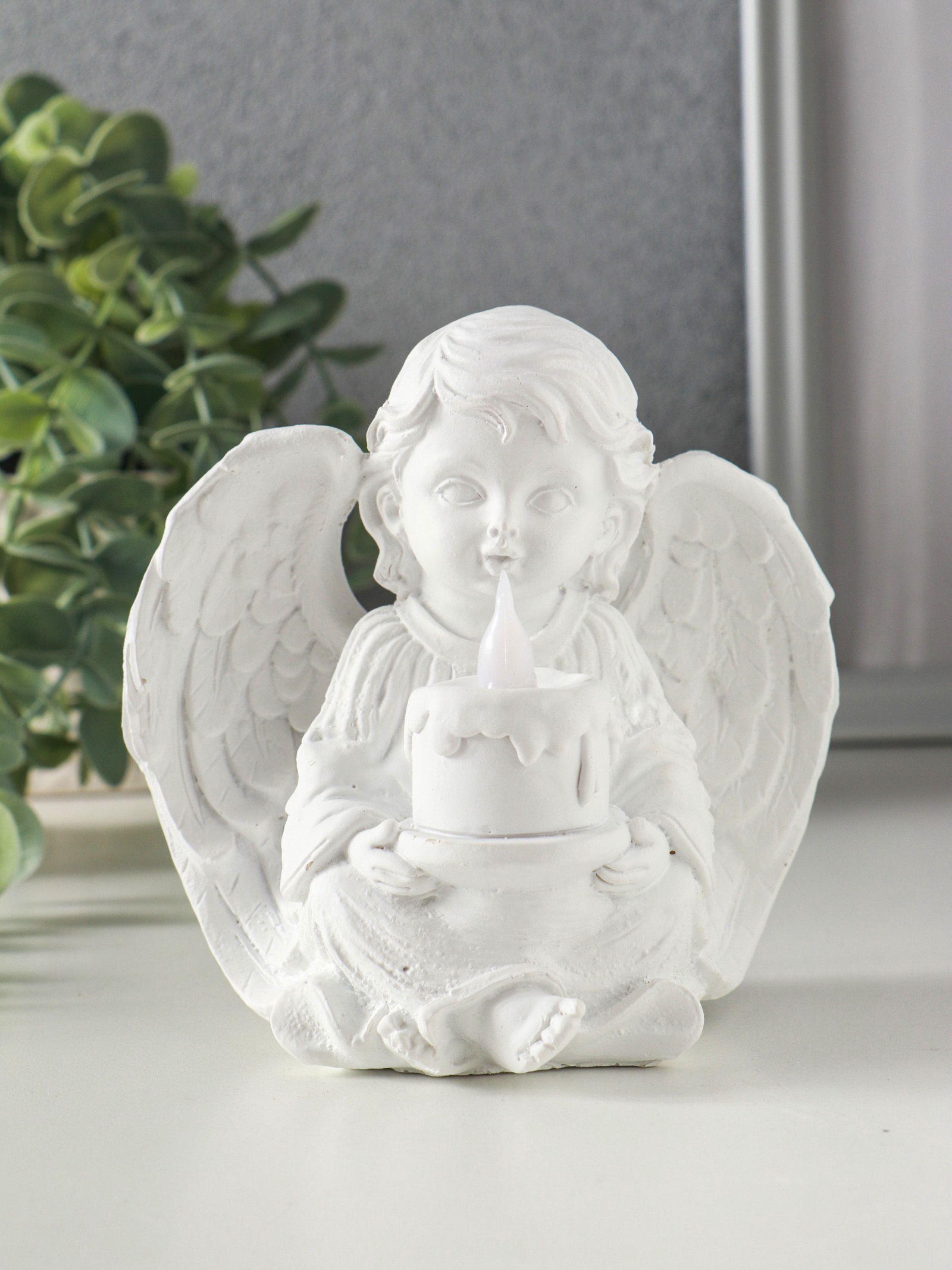 Фигурка светящаяся полистоун "Белоснежный ангел с тортом", 11.8x8x11.5 см, 8x11.8x11.5 см., Китай