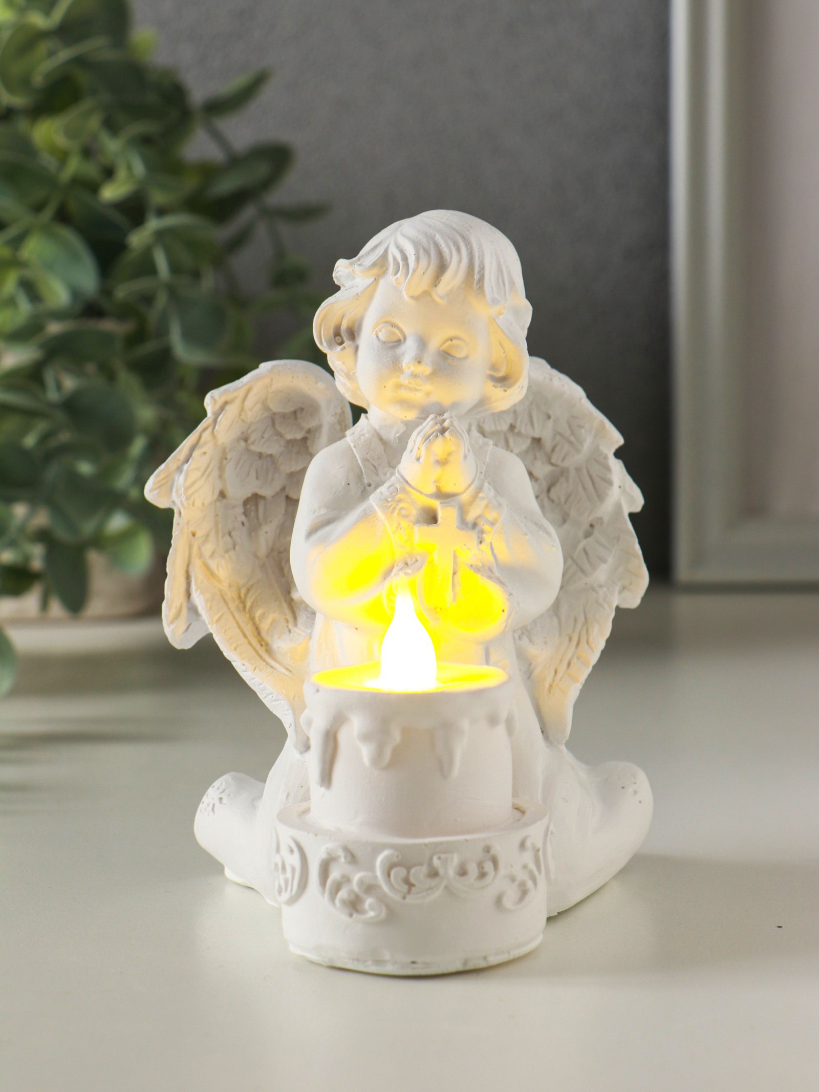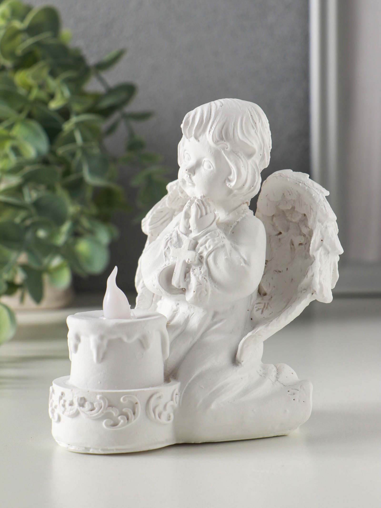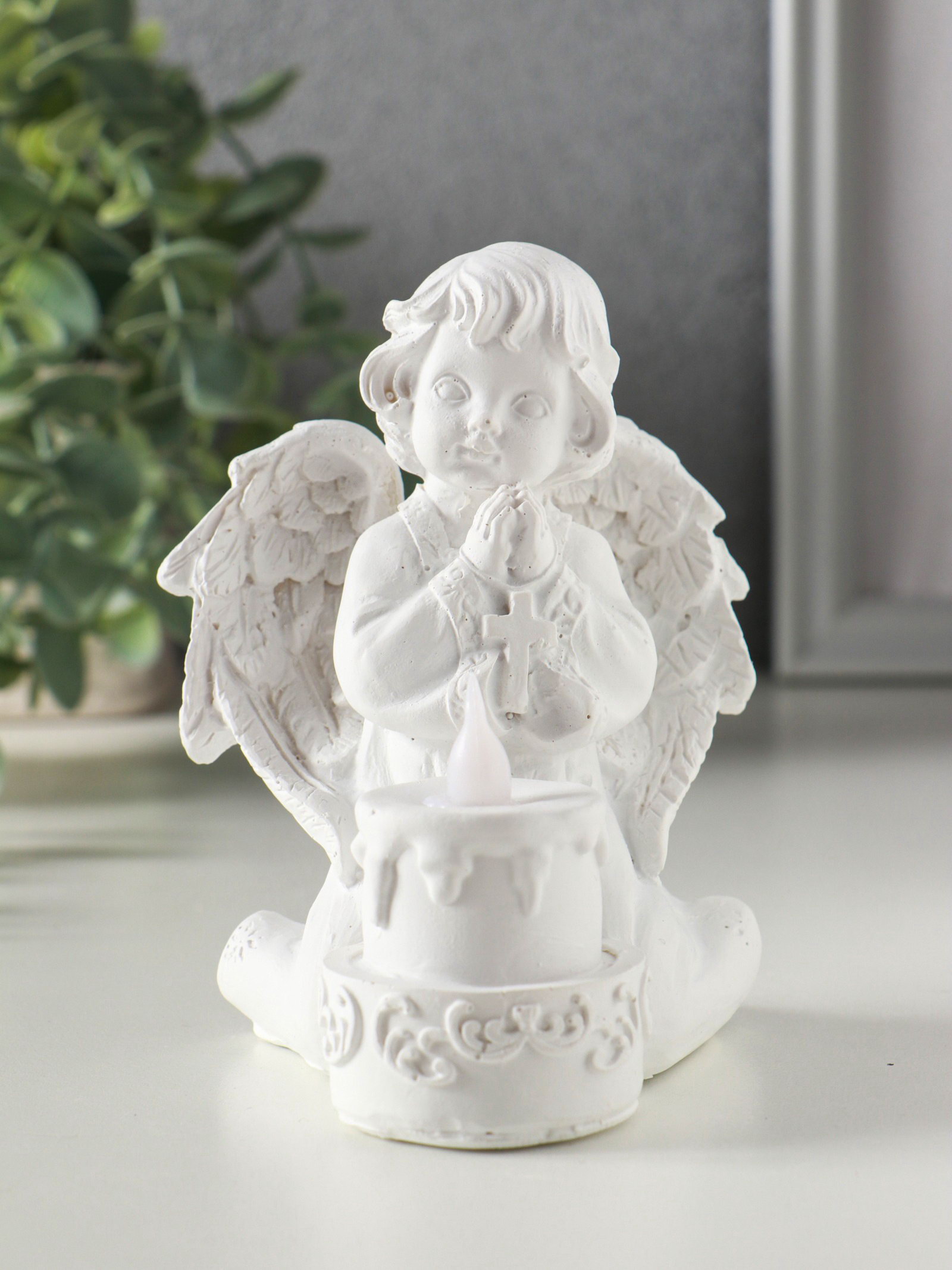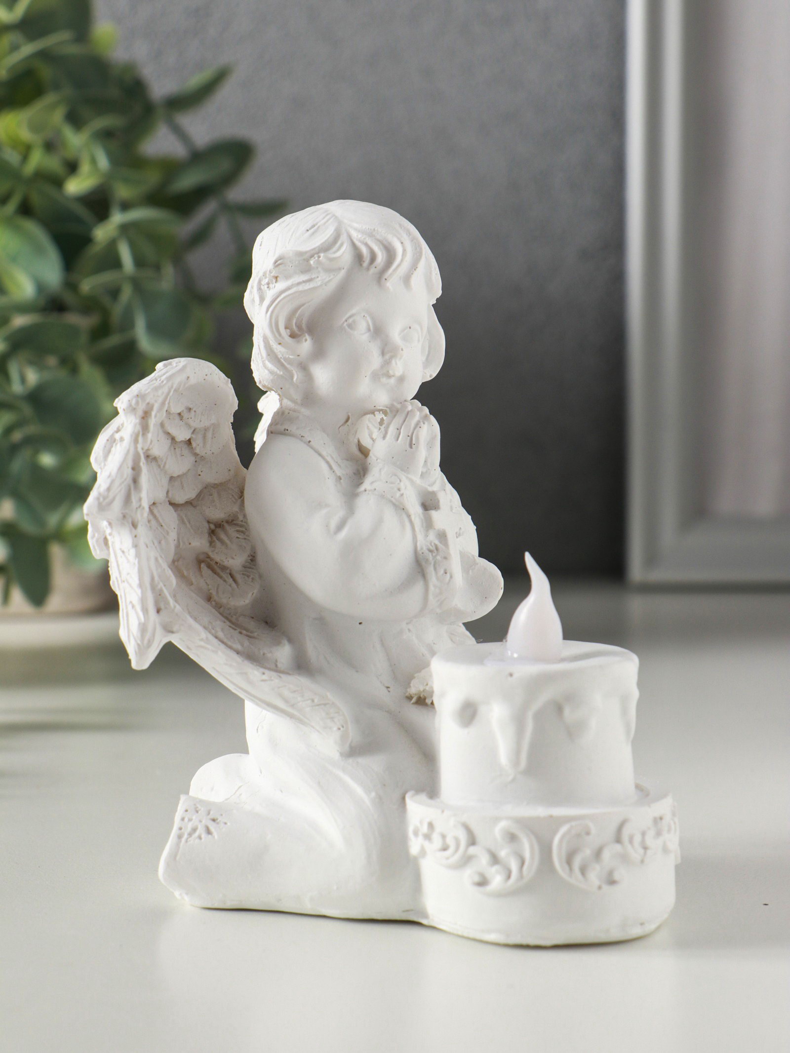 Фигурка светящаяся полистоун "Белоснежный ангел с двухъярусным тортом", 7.7x8.5x11.5 см, 8.5x7.7x11.5 см., Китай