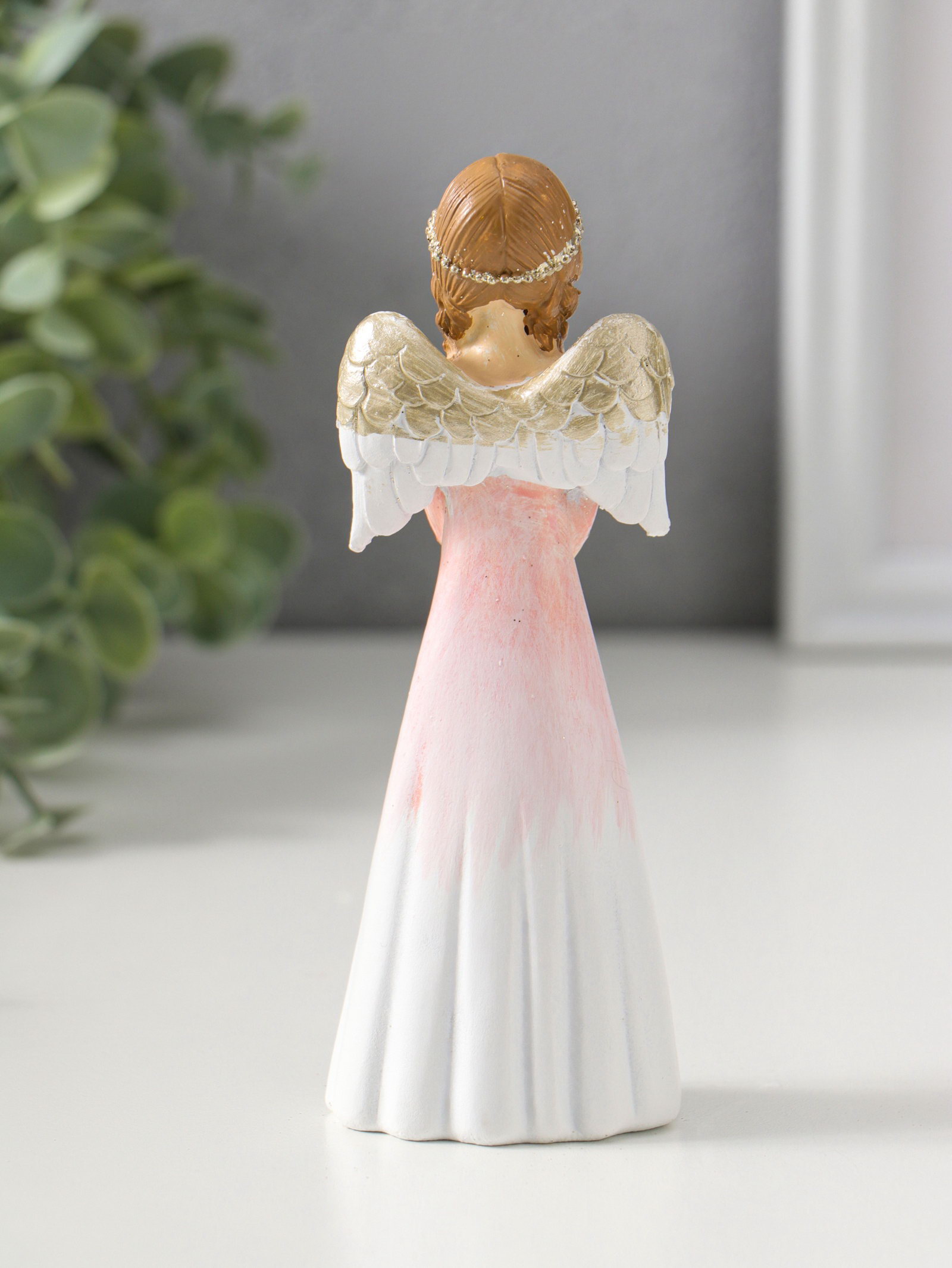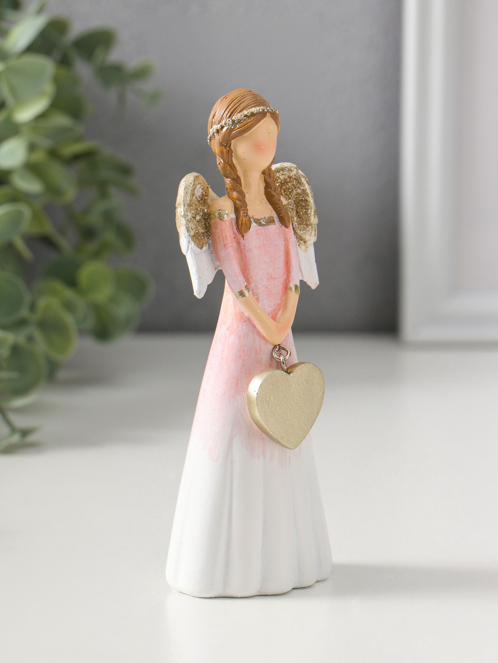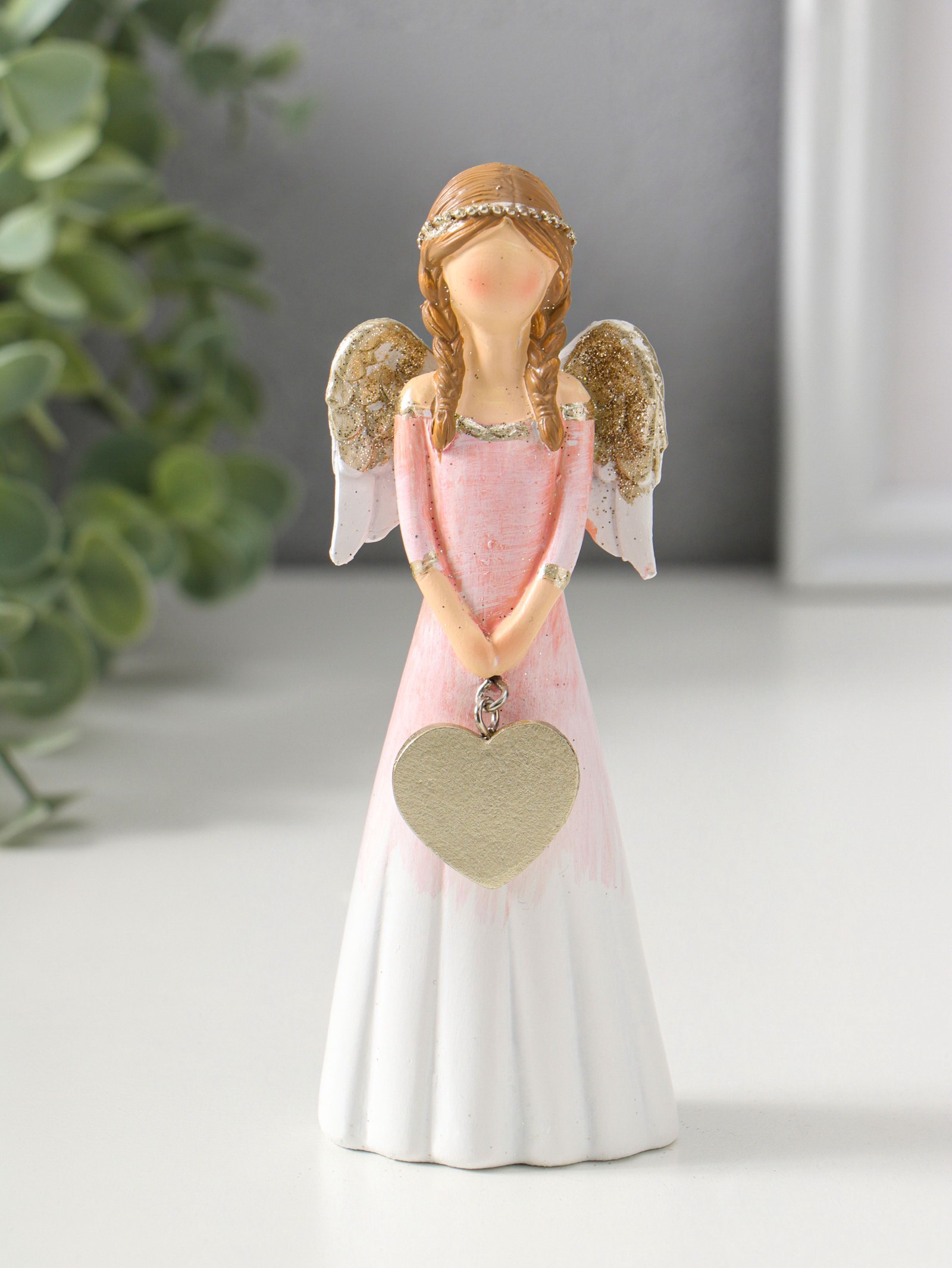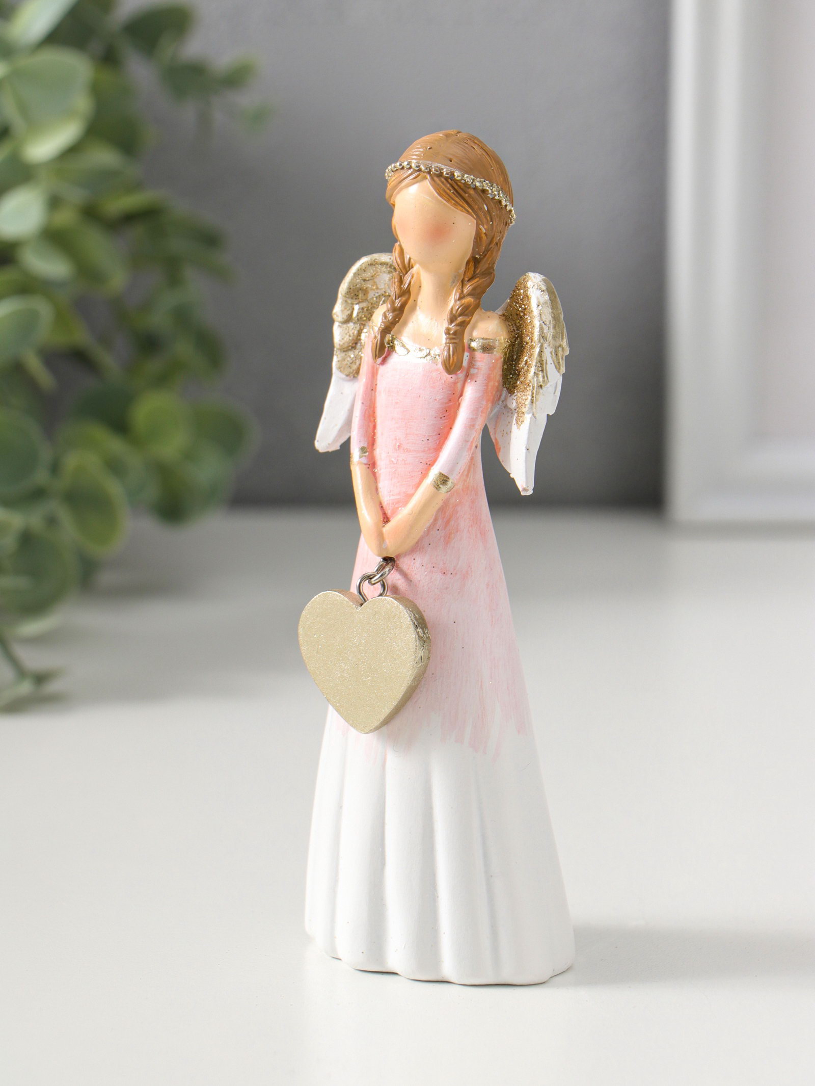Фигурка полистоун "Девушка-ангел в светло-розовом платье с золотым сердцем", 14.5 см, 4x5.5x14.5 см., Китай