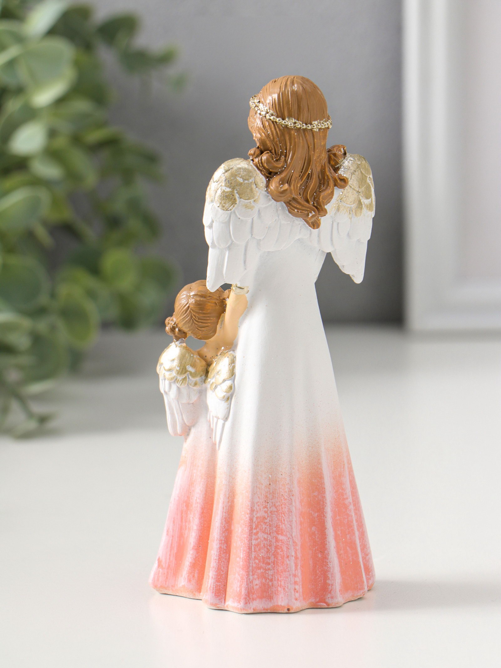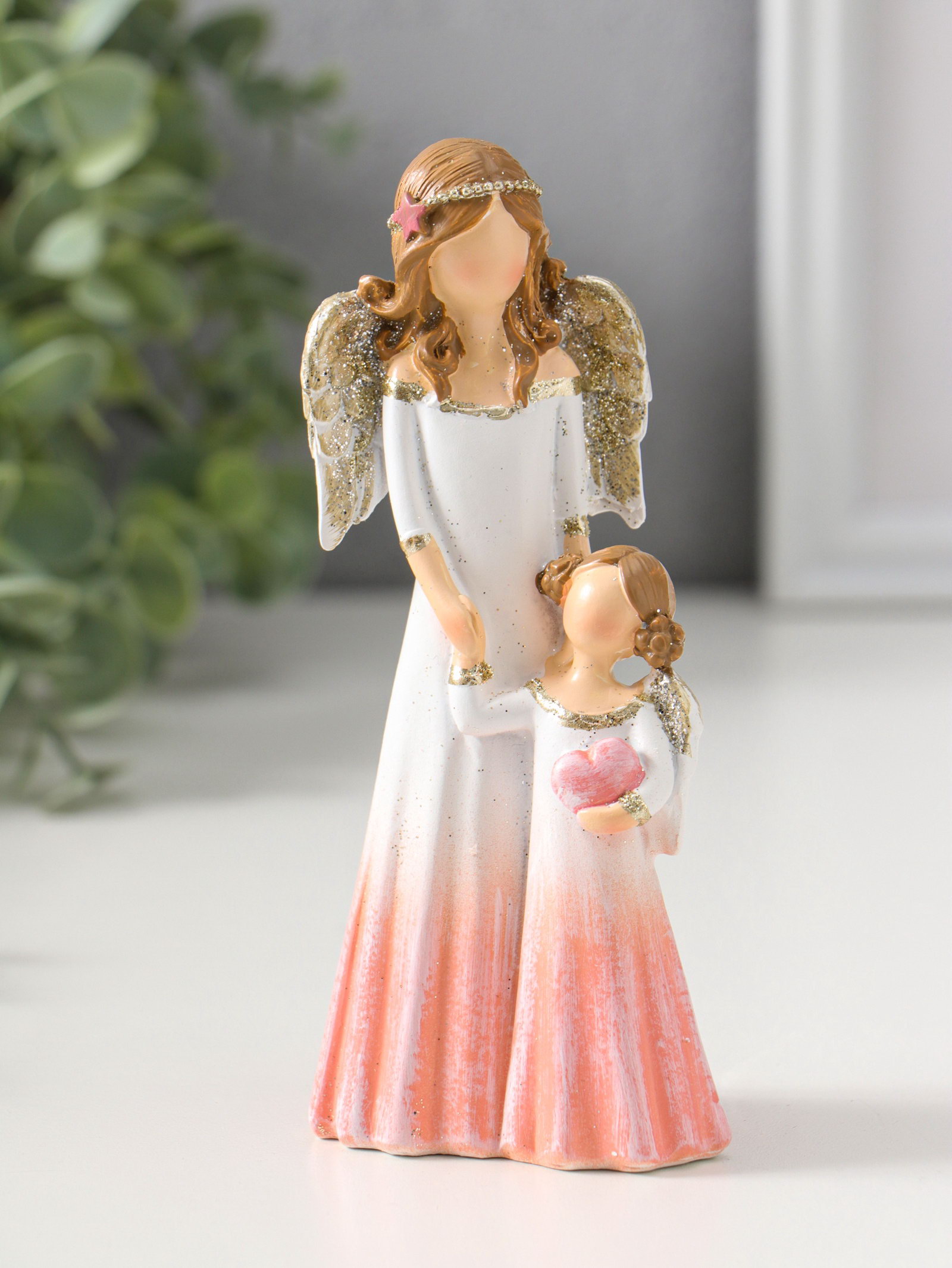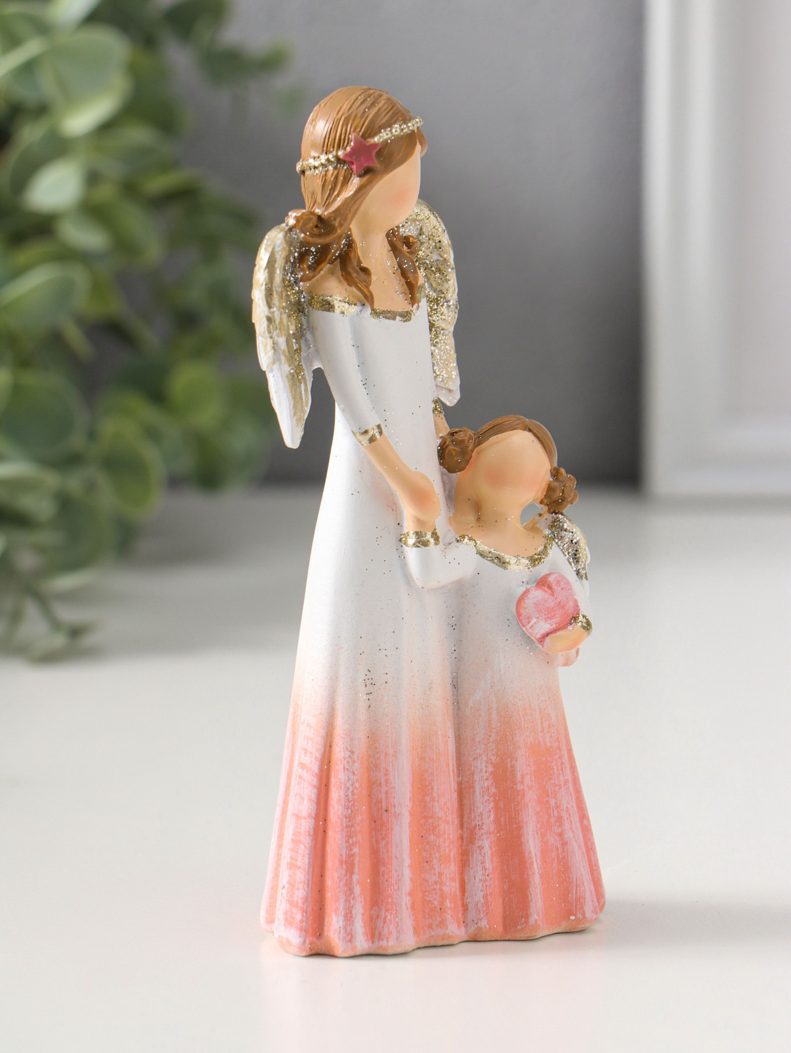 Фигурка полистоун "Девушка-ангел в светло-розовом платье и малышка с сердцем", 14.5 см, 4.5x6.5x14.5 см., Китай