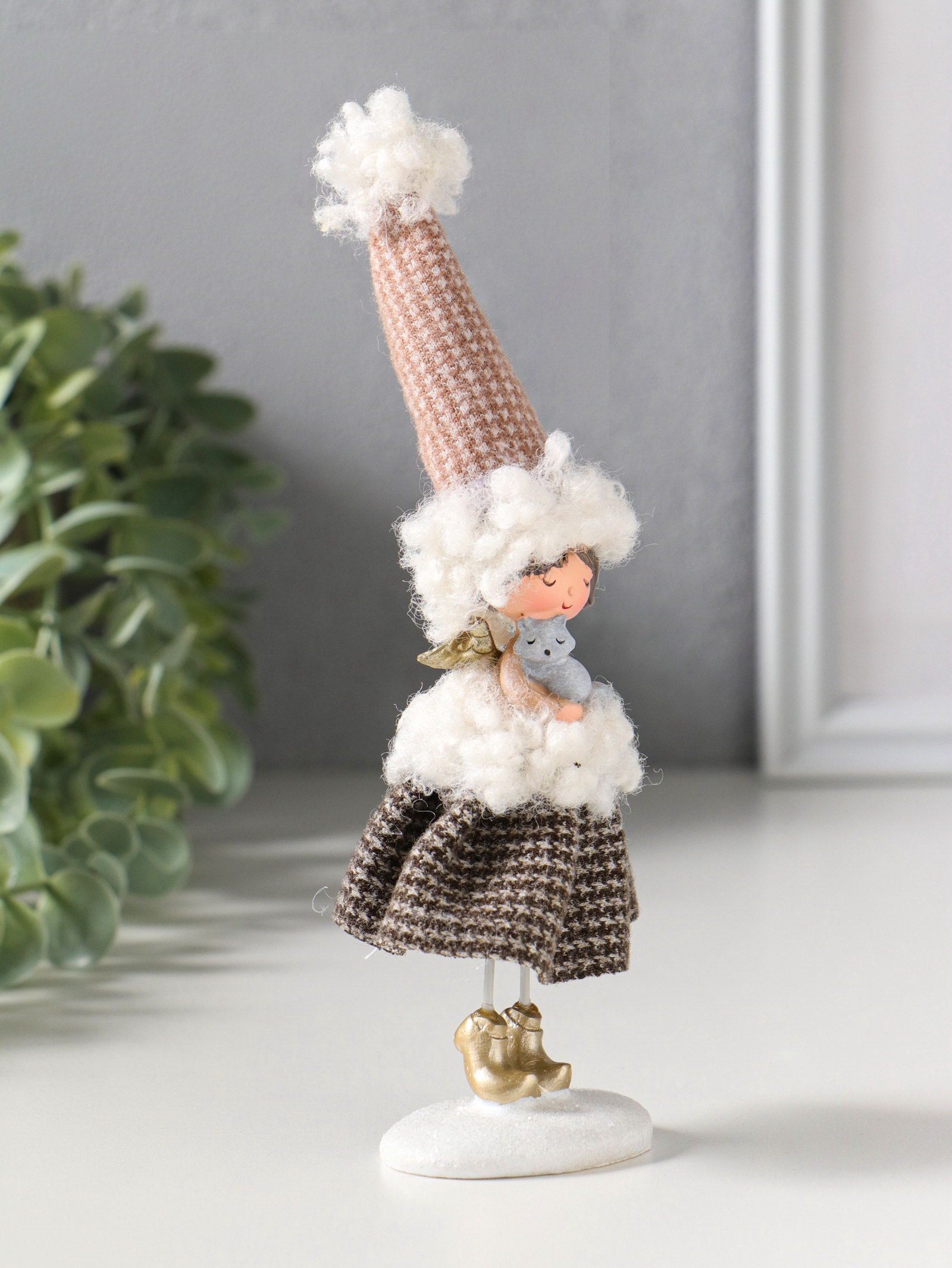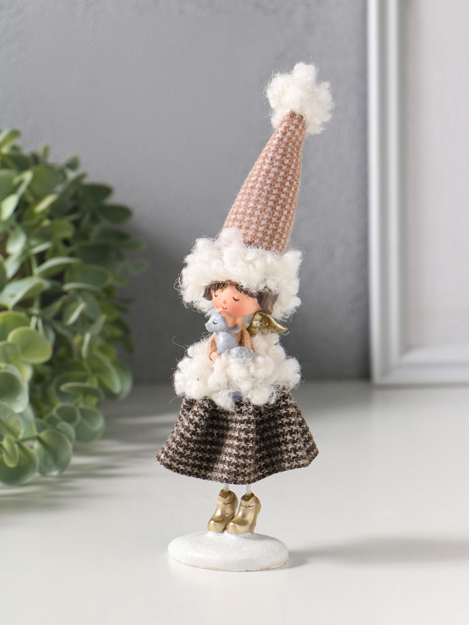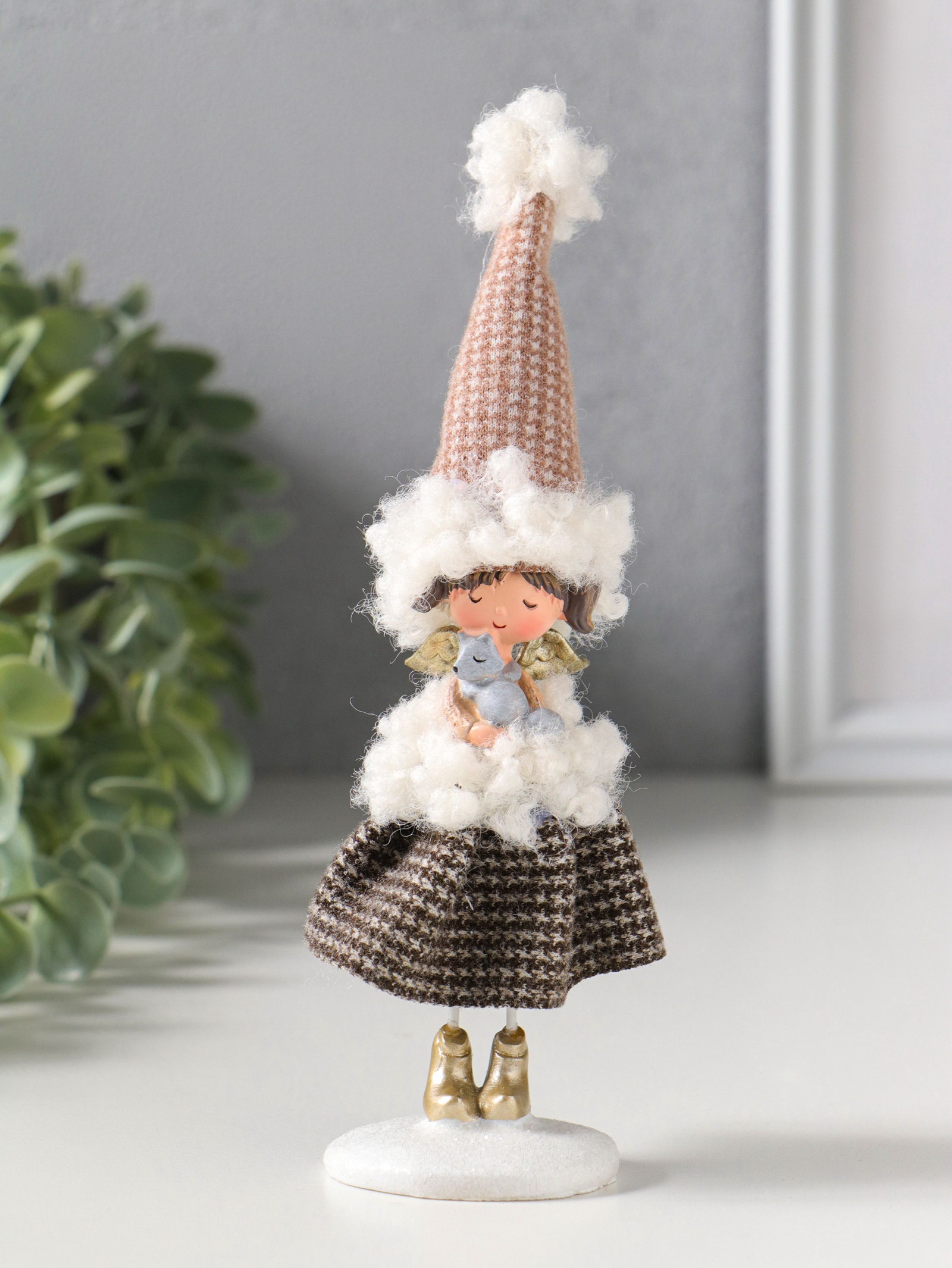Фигурка полистоун "Ангелочек в клетчатом наряде с мехом, с лисичкой", 5x4x17.5 см, 4x5x17.5 см., Китай