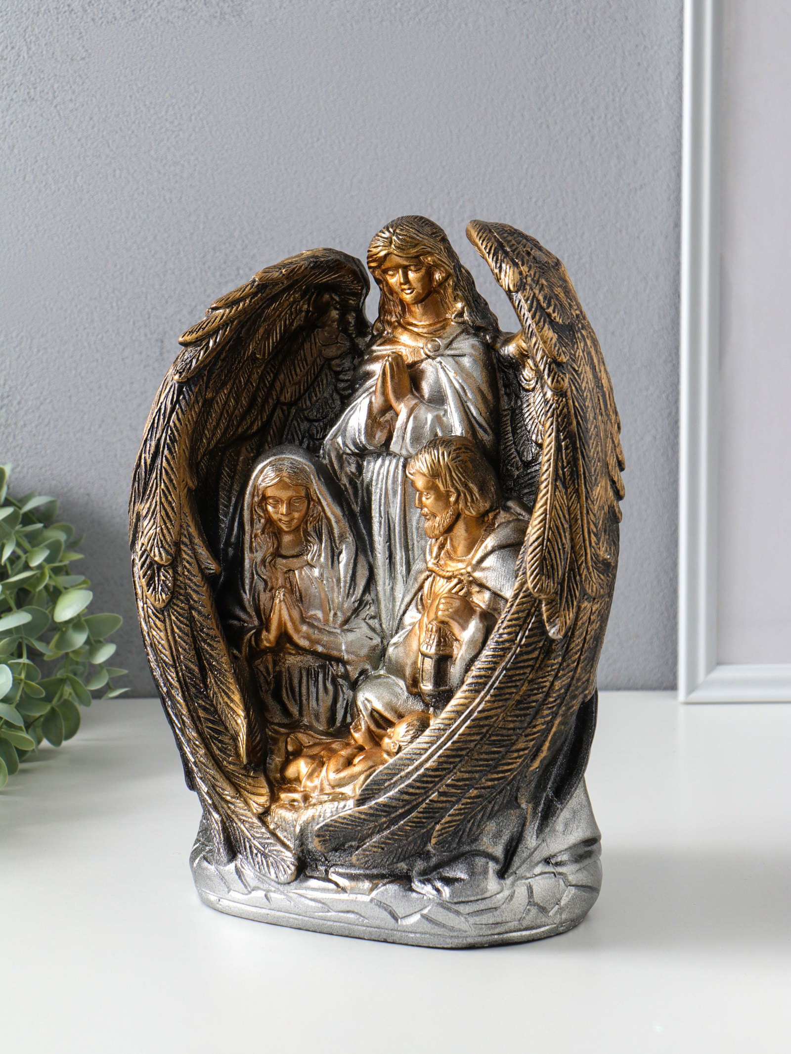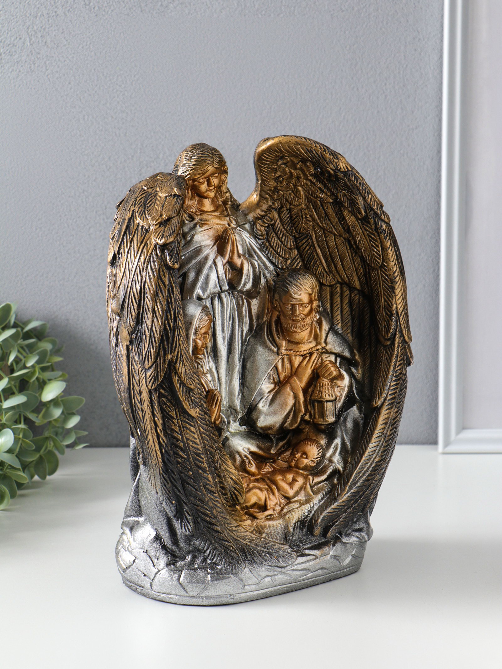 Фигура "Ангел хранитель" бронза с золотом 30х23х14 см, Россия