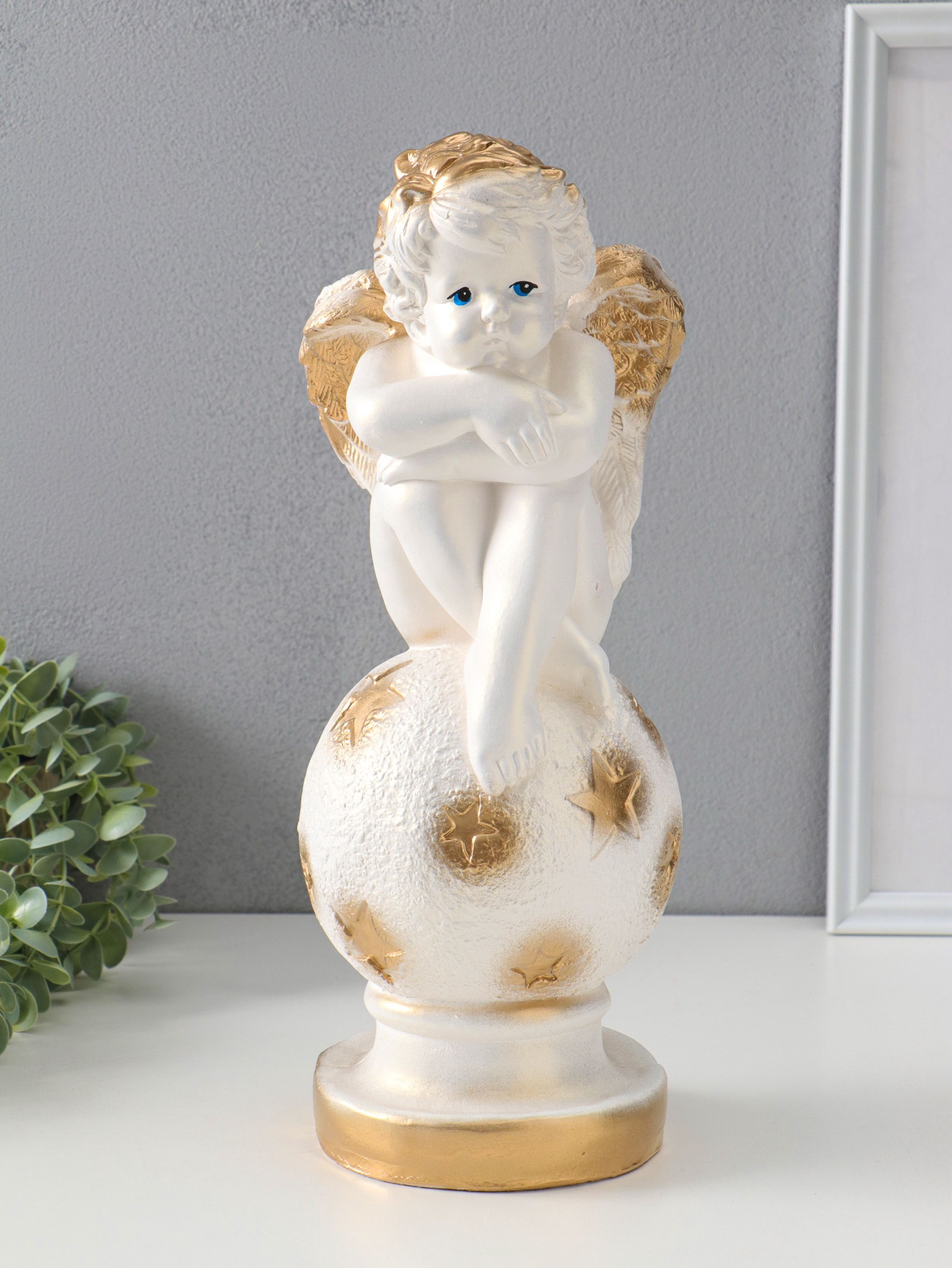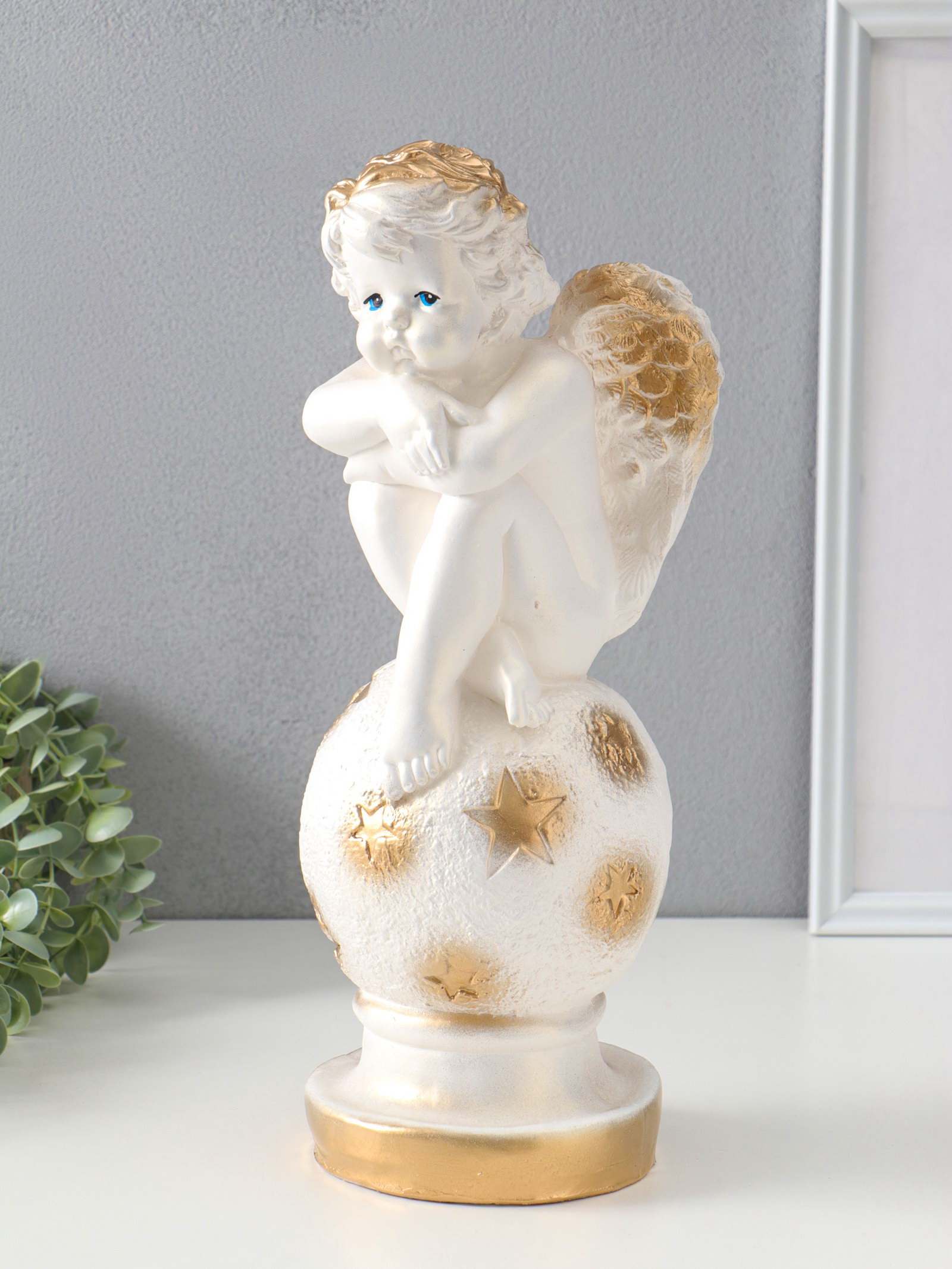 Фигура "Ангел на шаре" белый, 14х15х40 см, Россия
