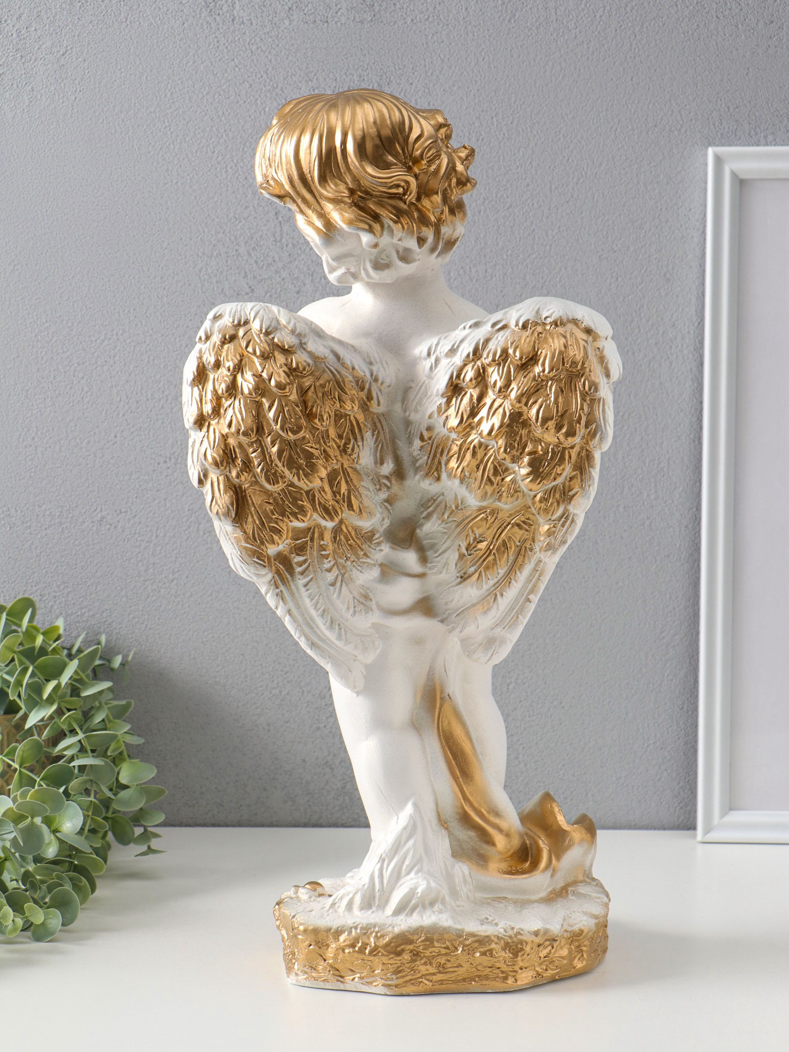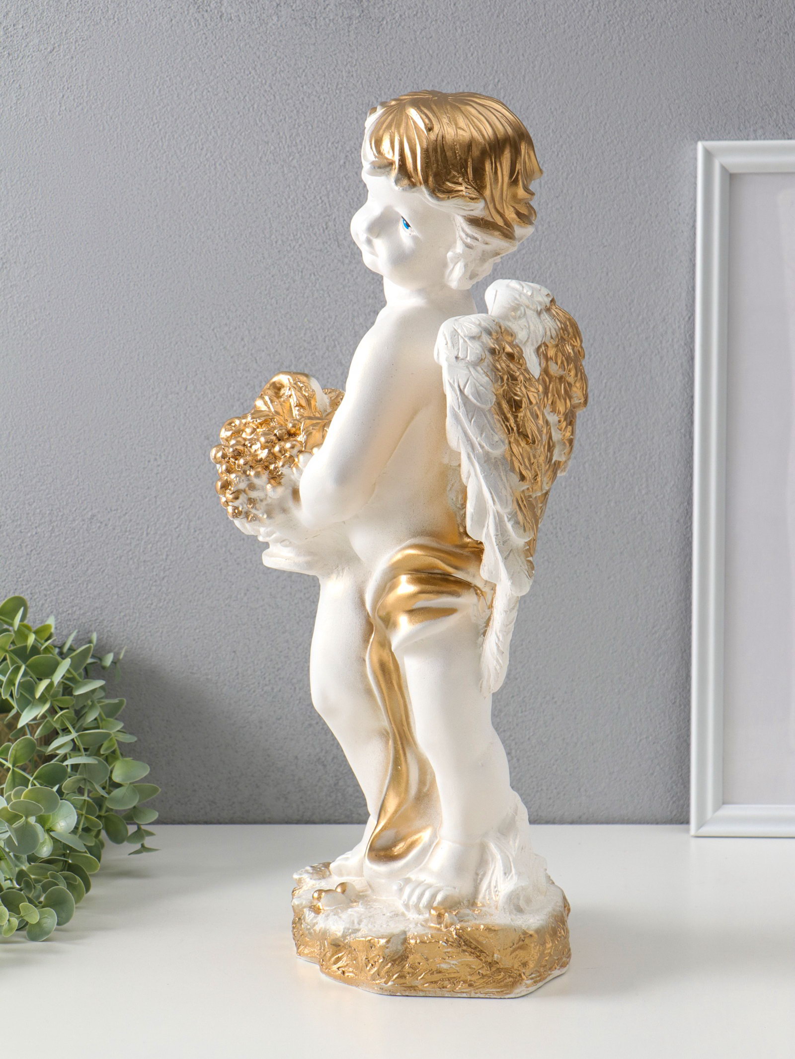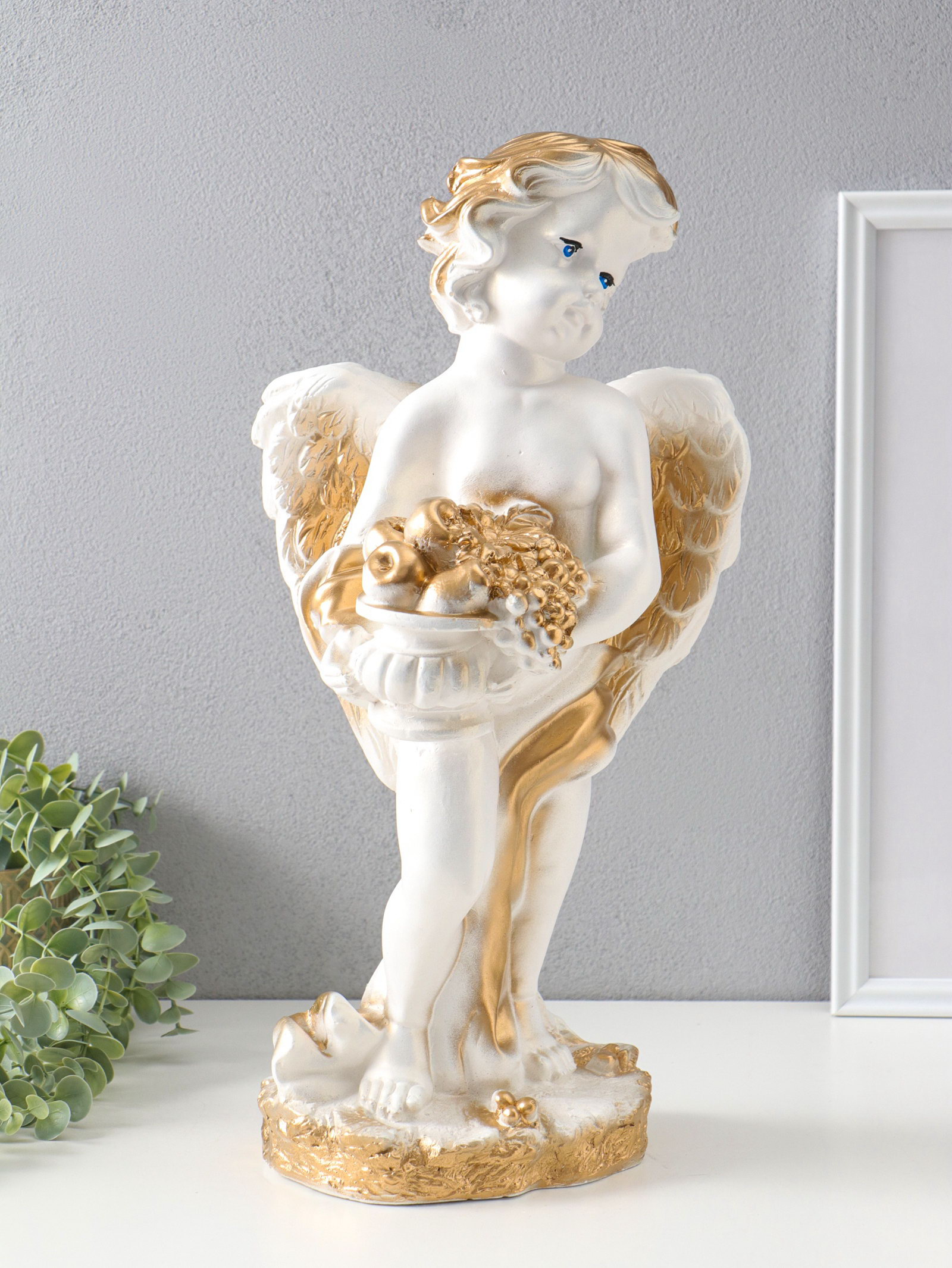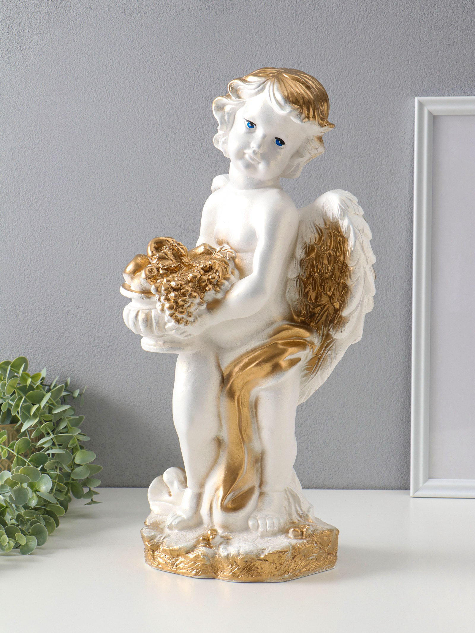 Фигура "Ангел с корзиной" белый, 47х25х23 см, Россия
