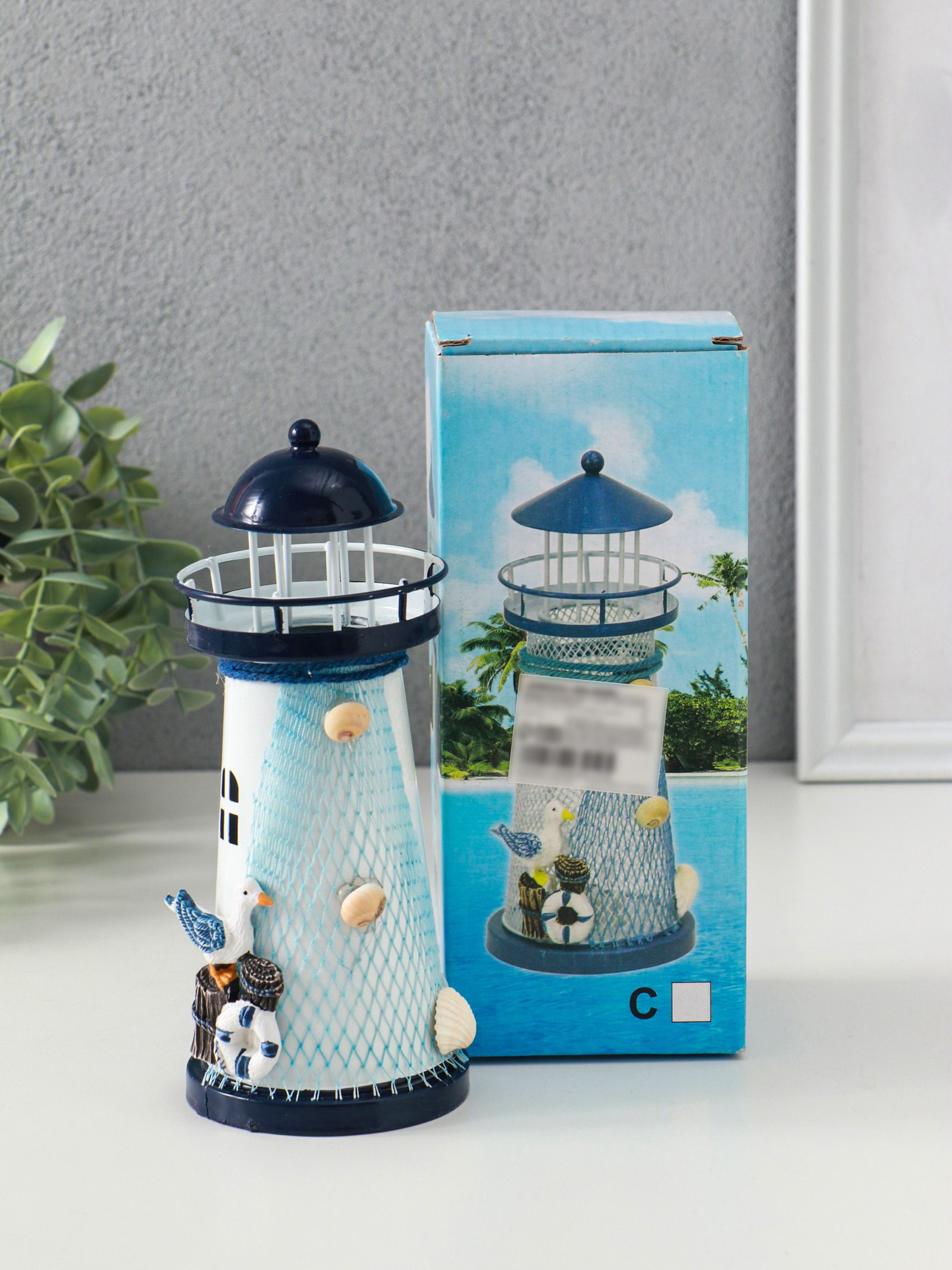 Фигура светящаяся "Маяк с птицей и сеткой", синий, 3xLR1130, RGB, LED-ночник, 7.5x7.5x18 см, 7.5x7.5x18.5 см., Китай