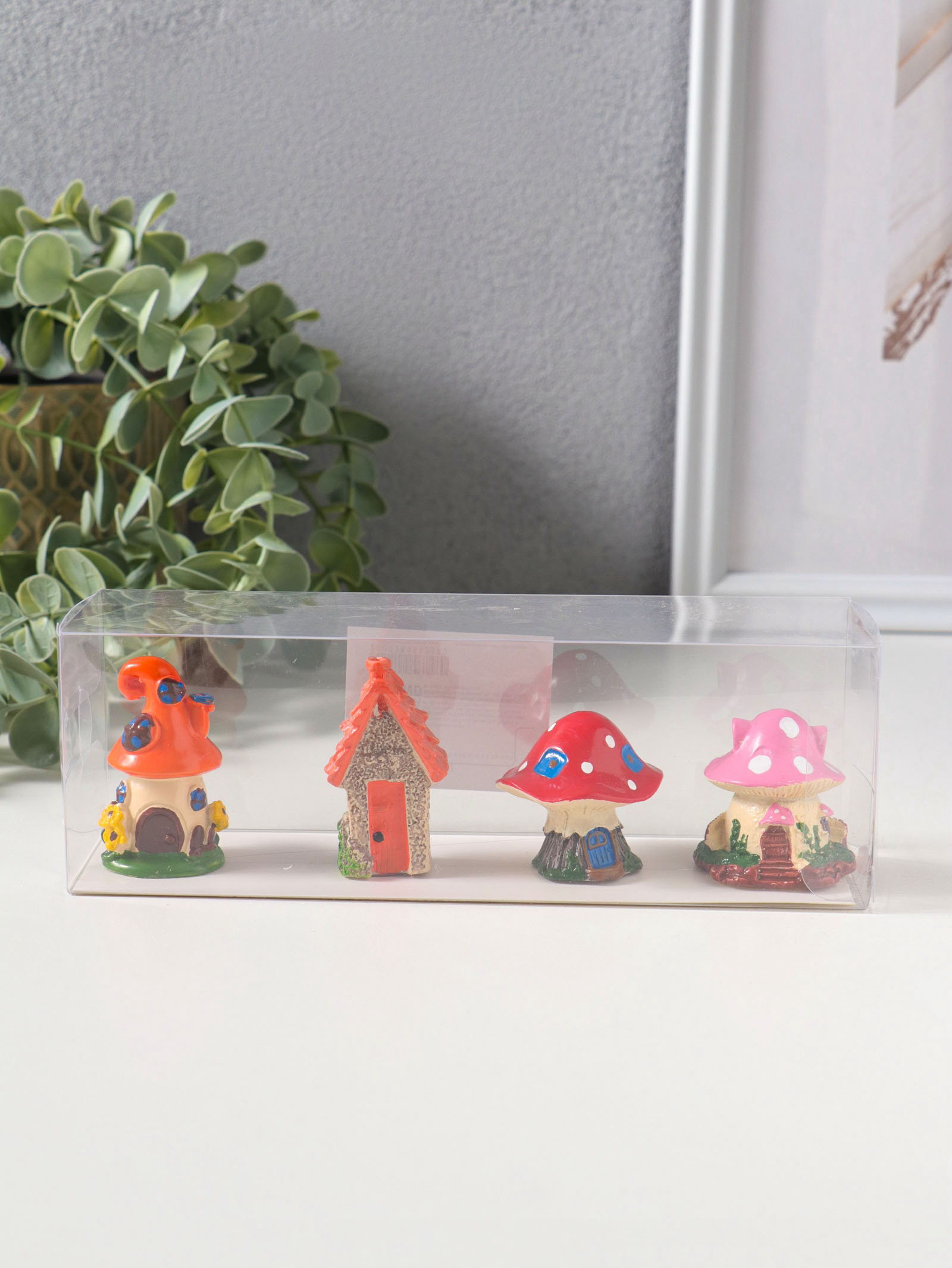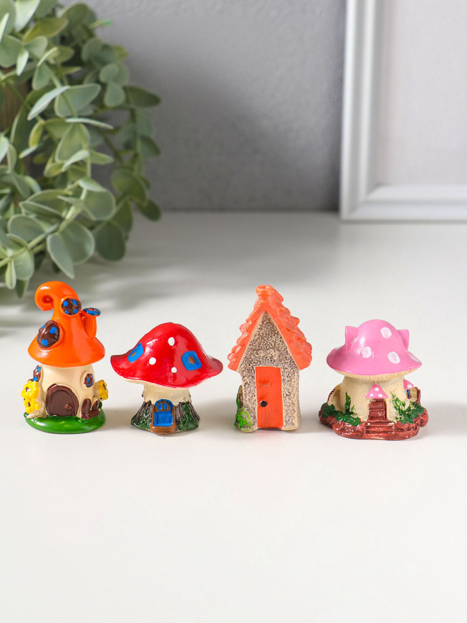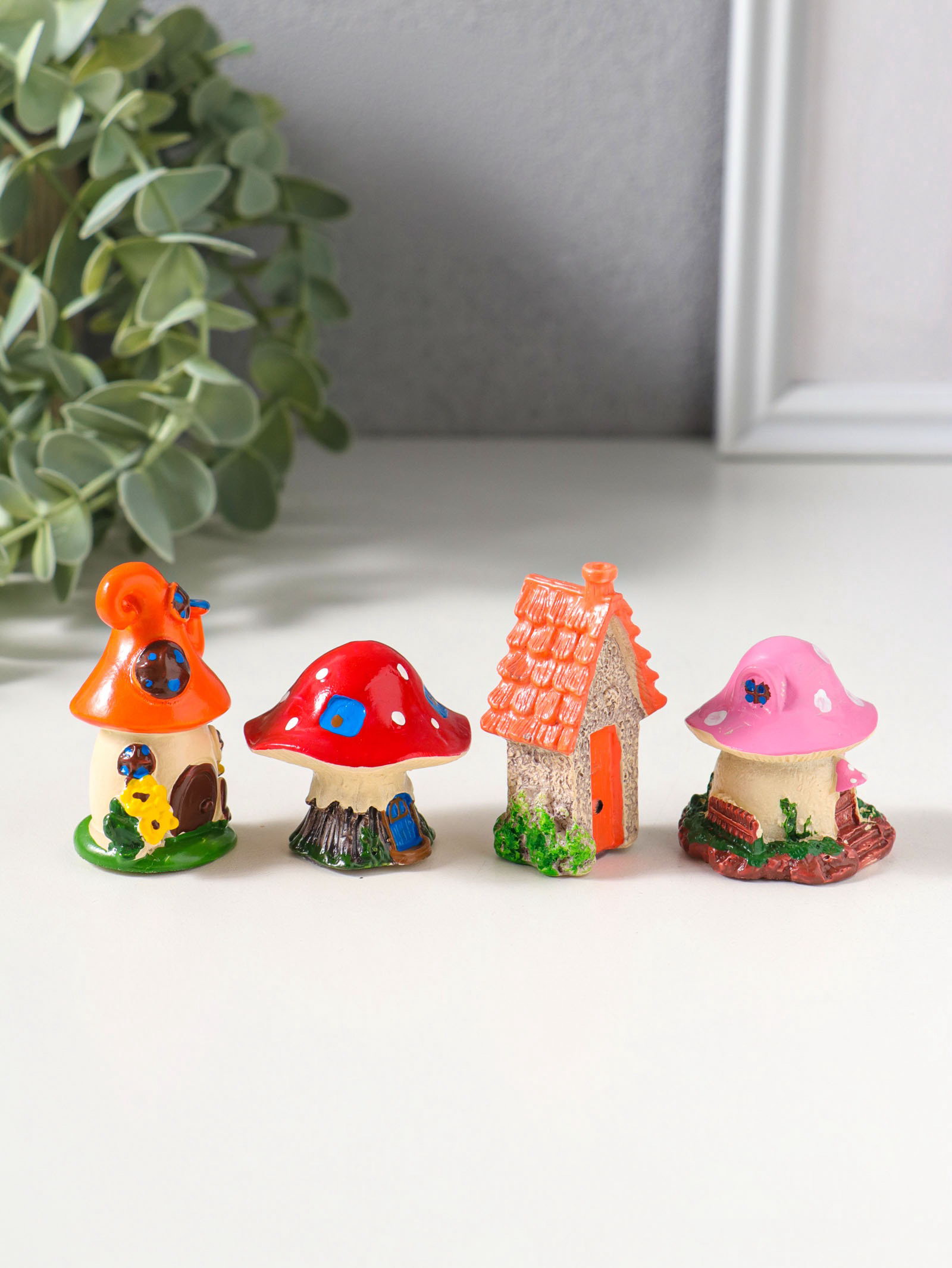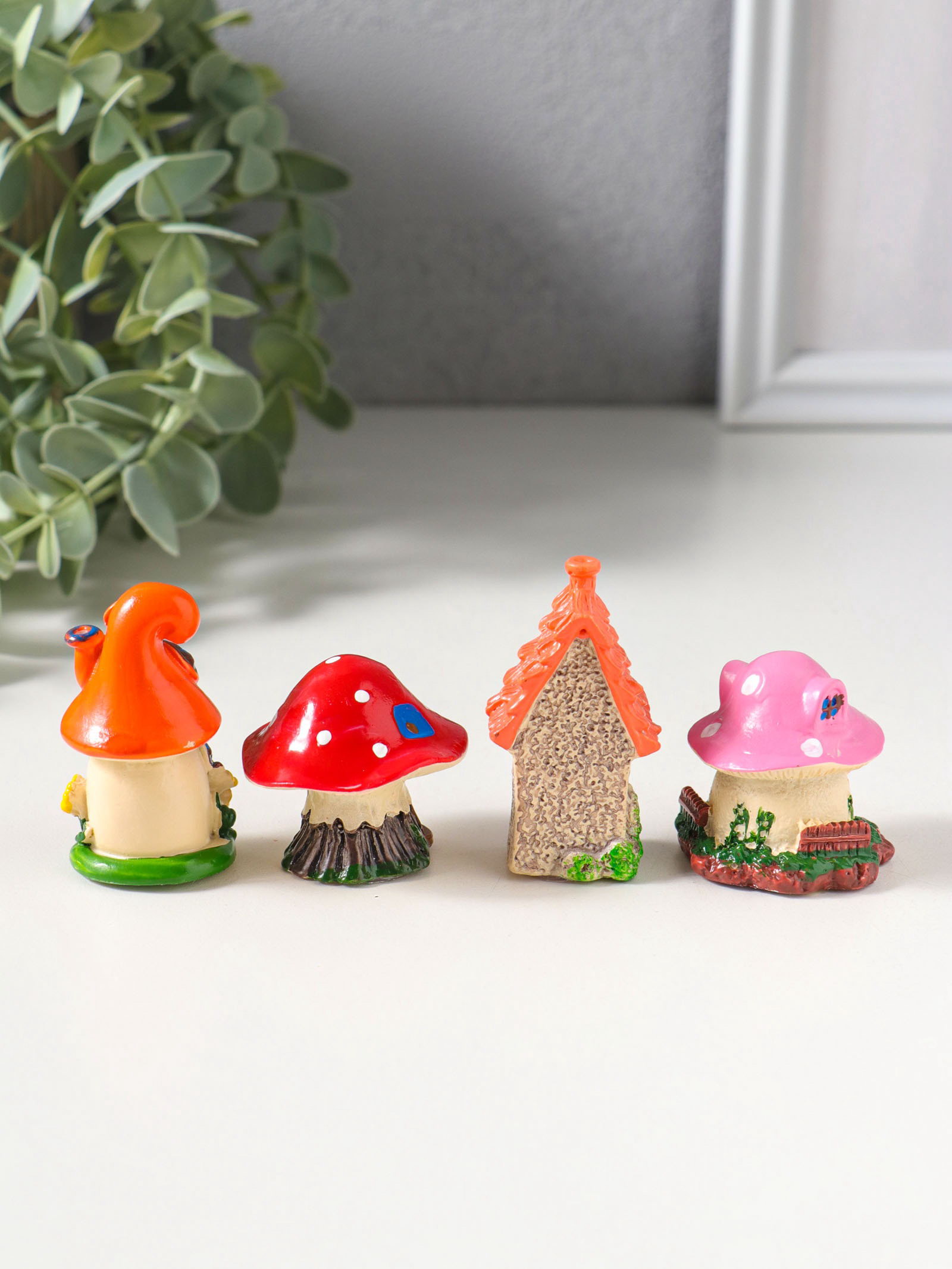 Сувенир полистоун "Домики-грибочки" набор 4 шт 3.5х3.5х5 см, 3.5x3.5x5 см., Китай