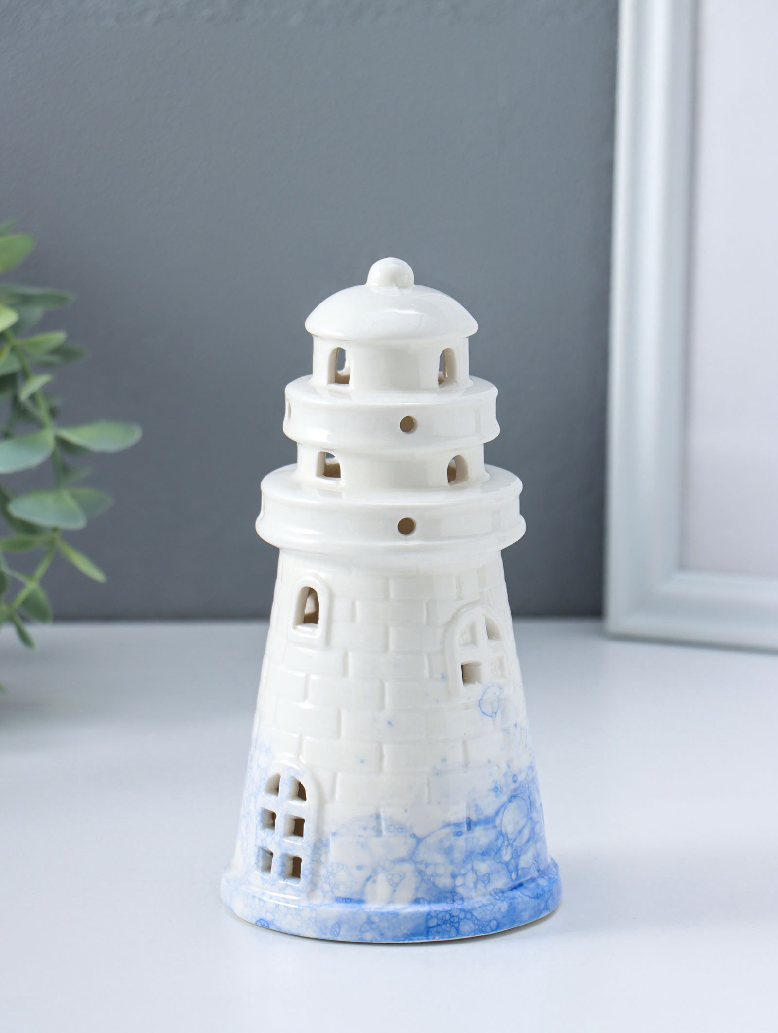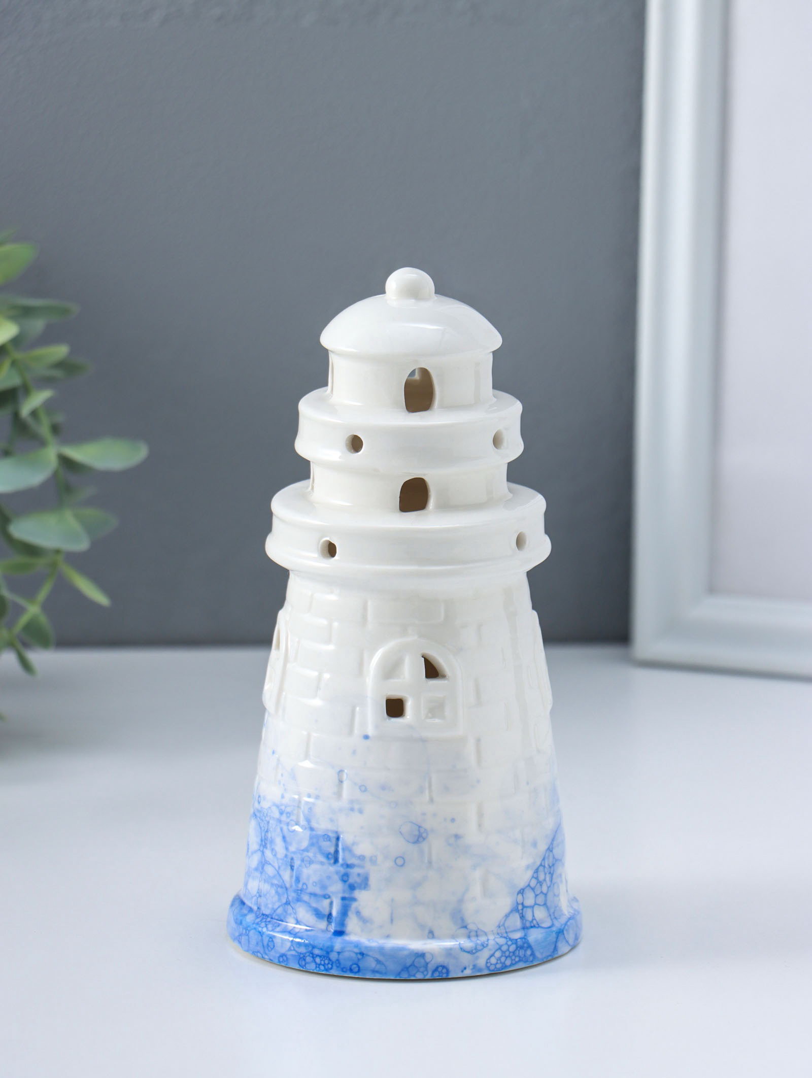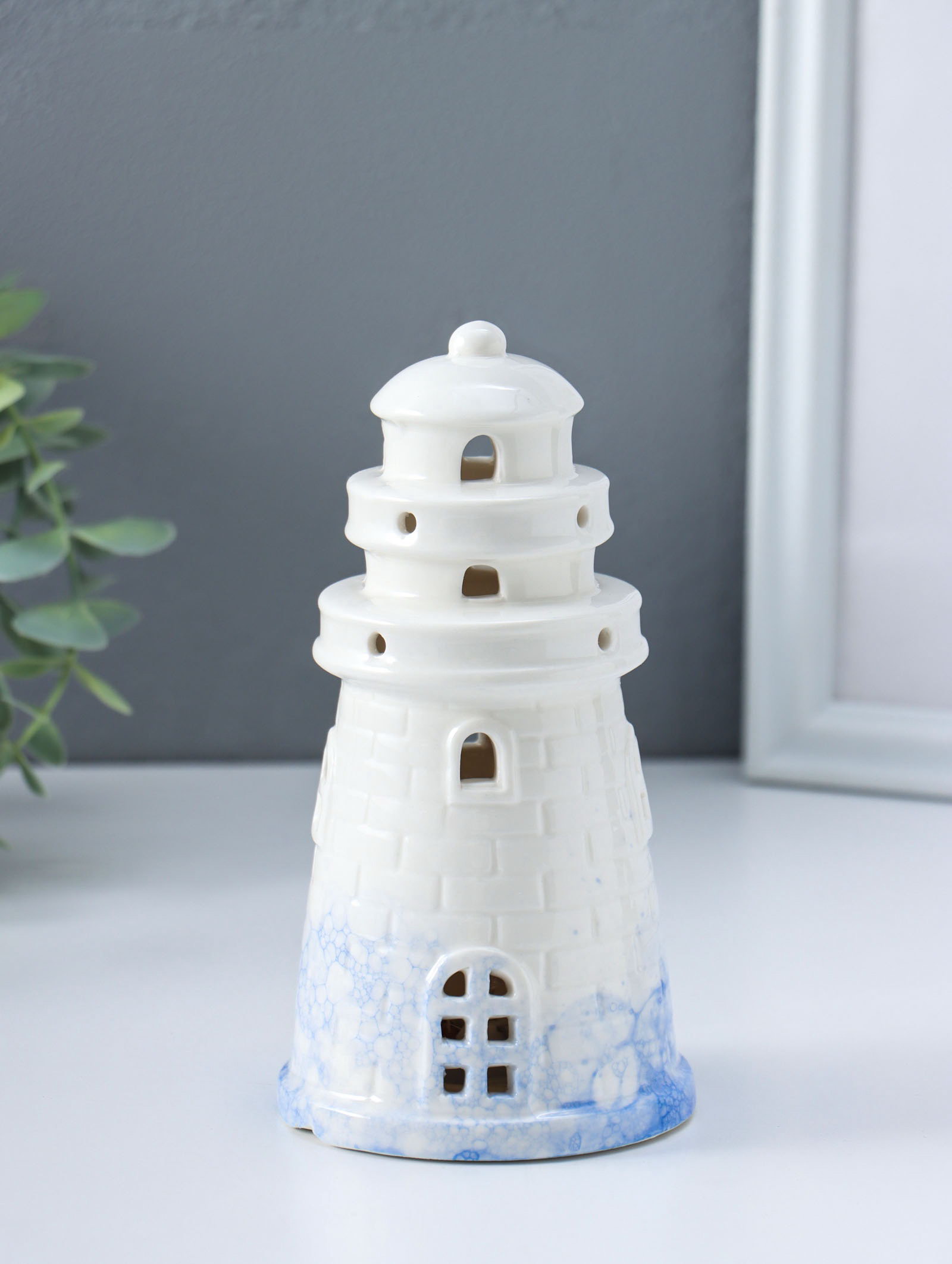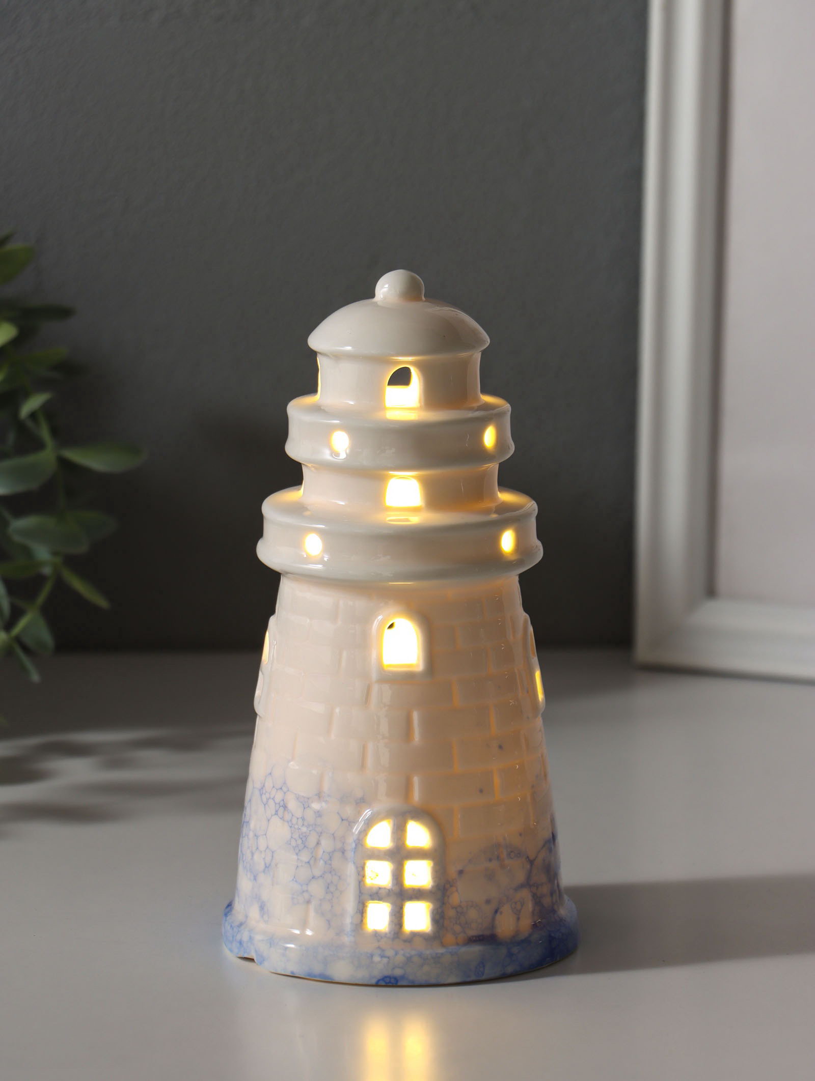 Сувенир керамика свет "Маяк" бело-синий 8х8х15.5 см, 8x8x15.5 см., Китай