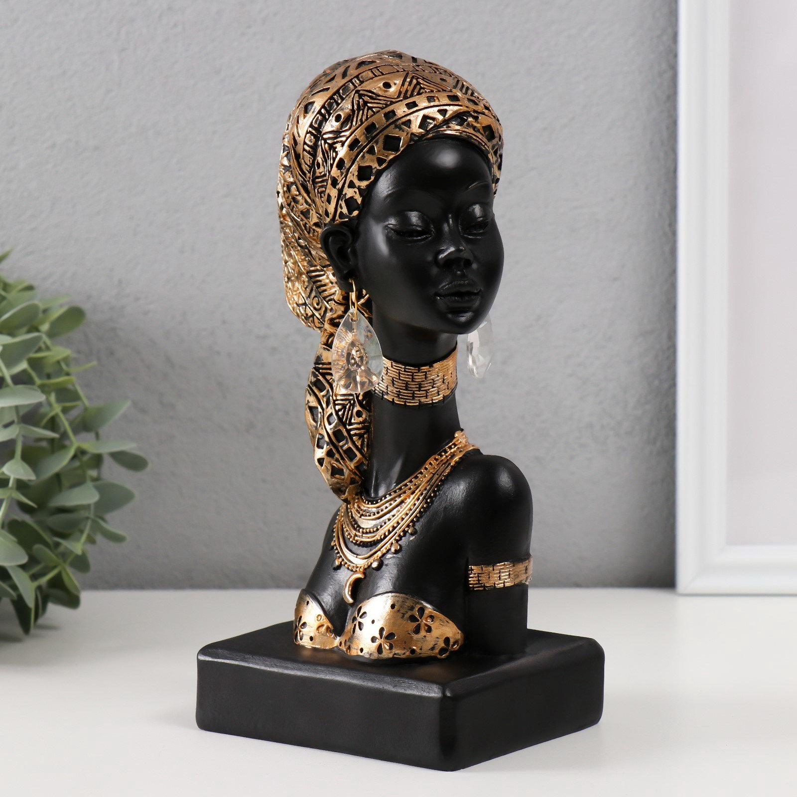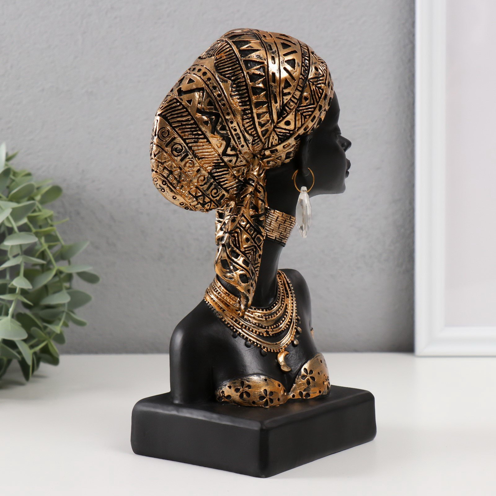 Фигура полистоун "Бюст. Африканка в косынке с узорами", 12x9x22 см, 9x12x22 см., Китай