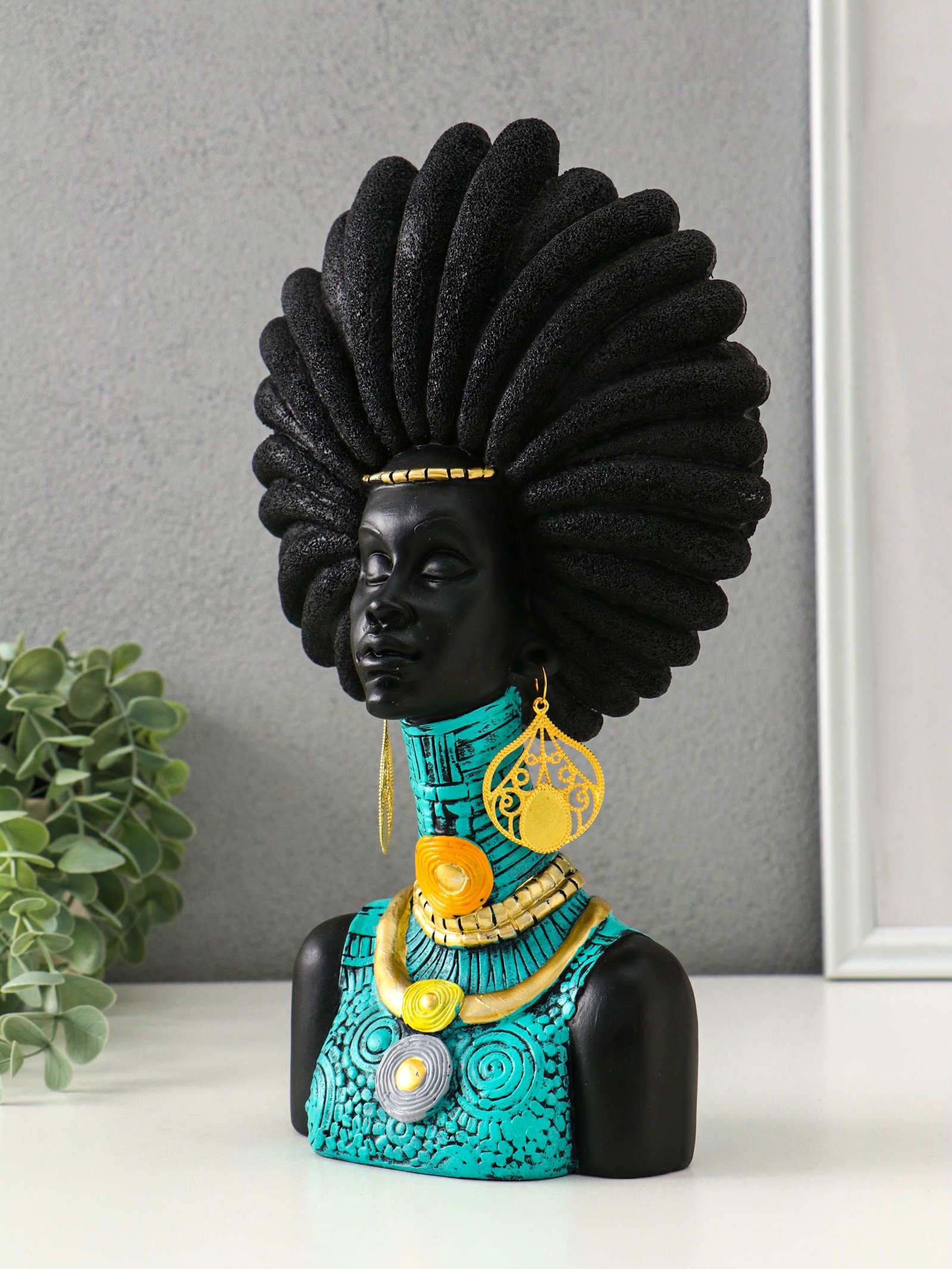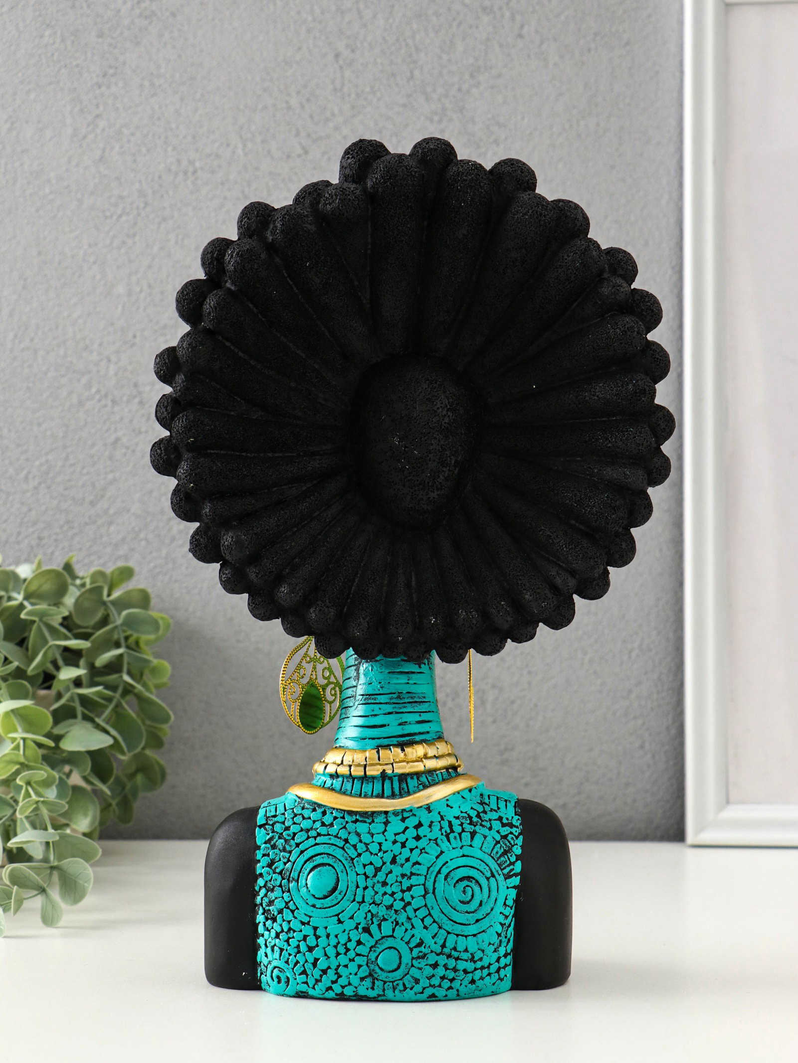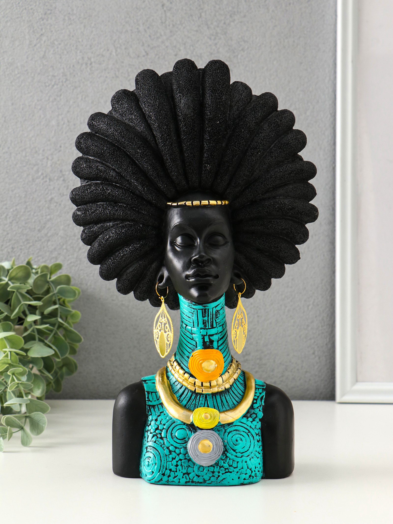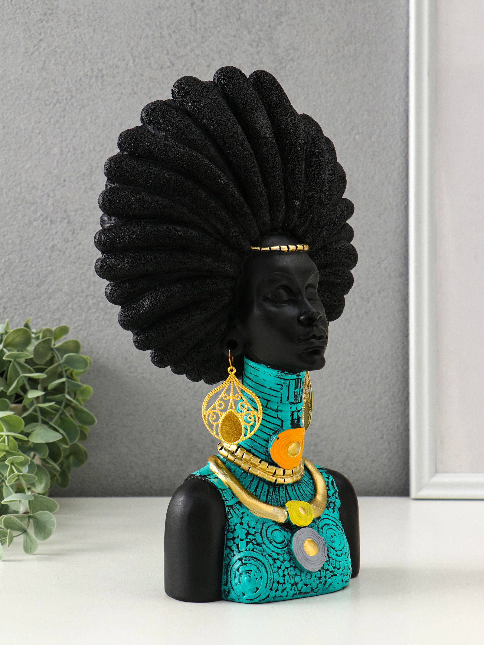 Бюст полистоун "Африканка в бирюзовом" чёрный 18.5х8х29.5 см, 8x18.5x29.5 см., Китай