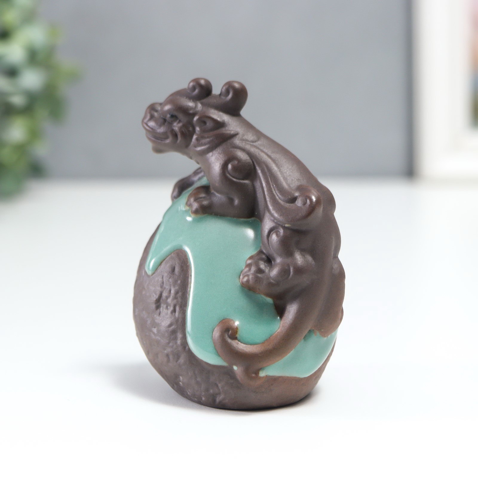 Сувенир керамика "Дракон на жемчужине" голубая глазурь 8.5х6.3 см, 6.3x8.5 см., Китай
