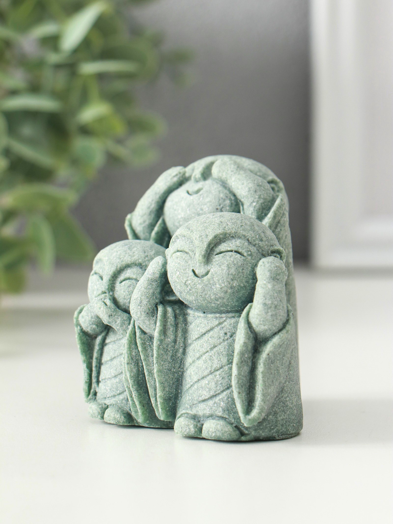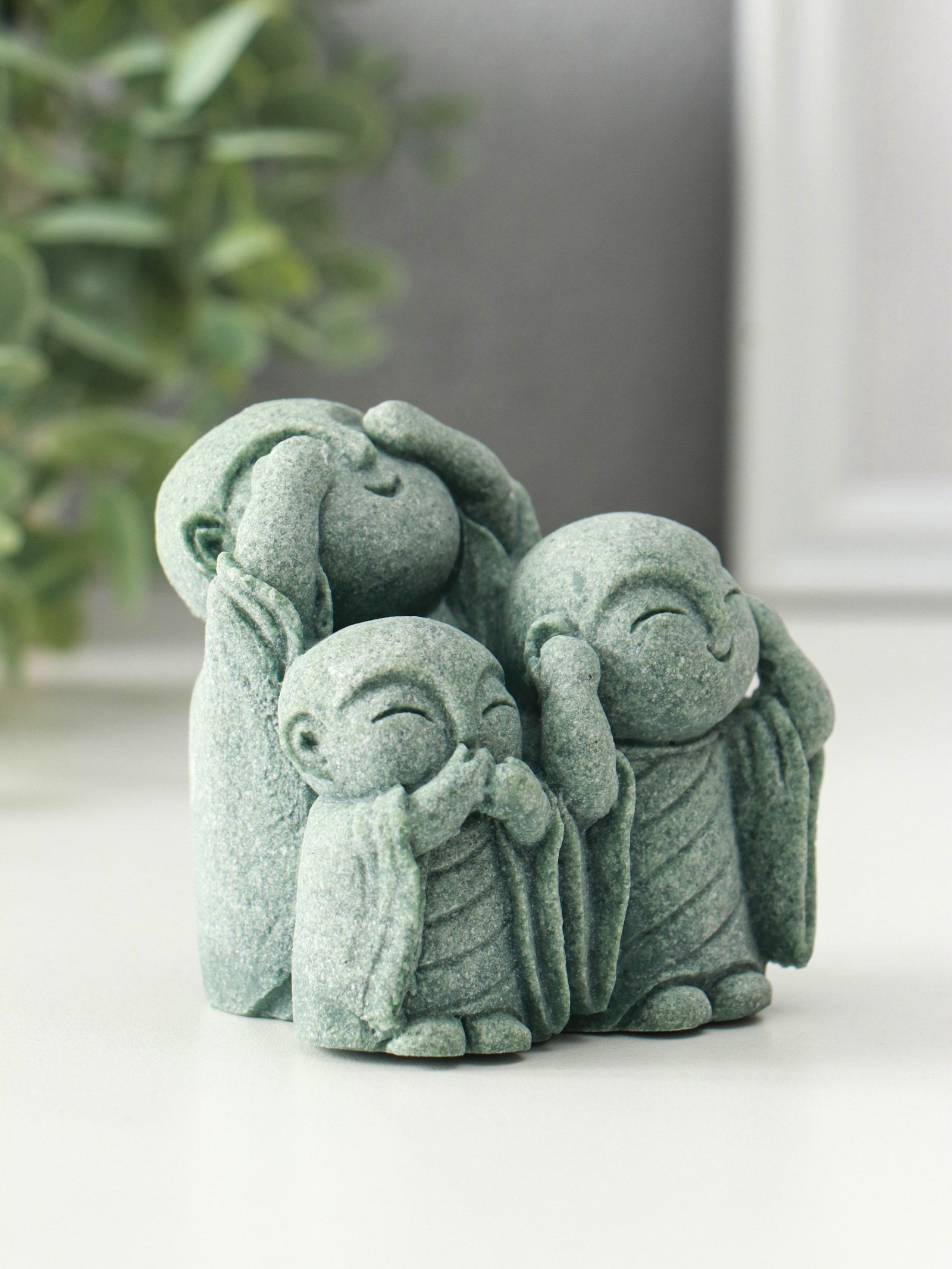Фигурка песчаник "Статуя Дзидзо - не вижу, не слышу, не скажу", 5.8x7x7 см, 7x5.8x7 см., Китай