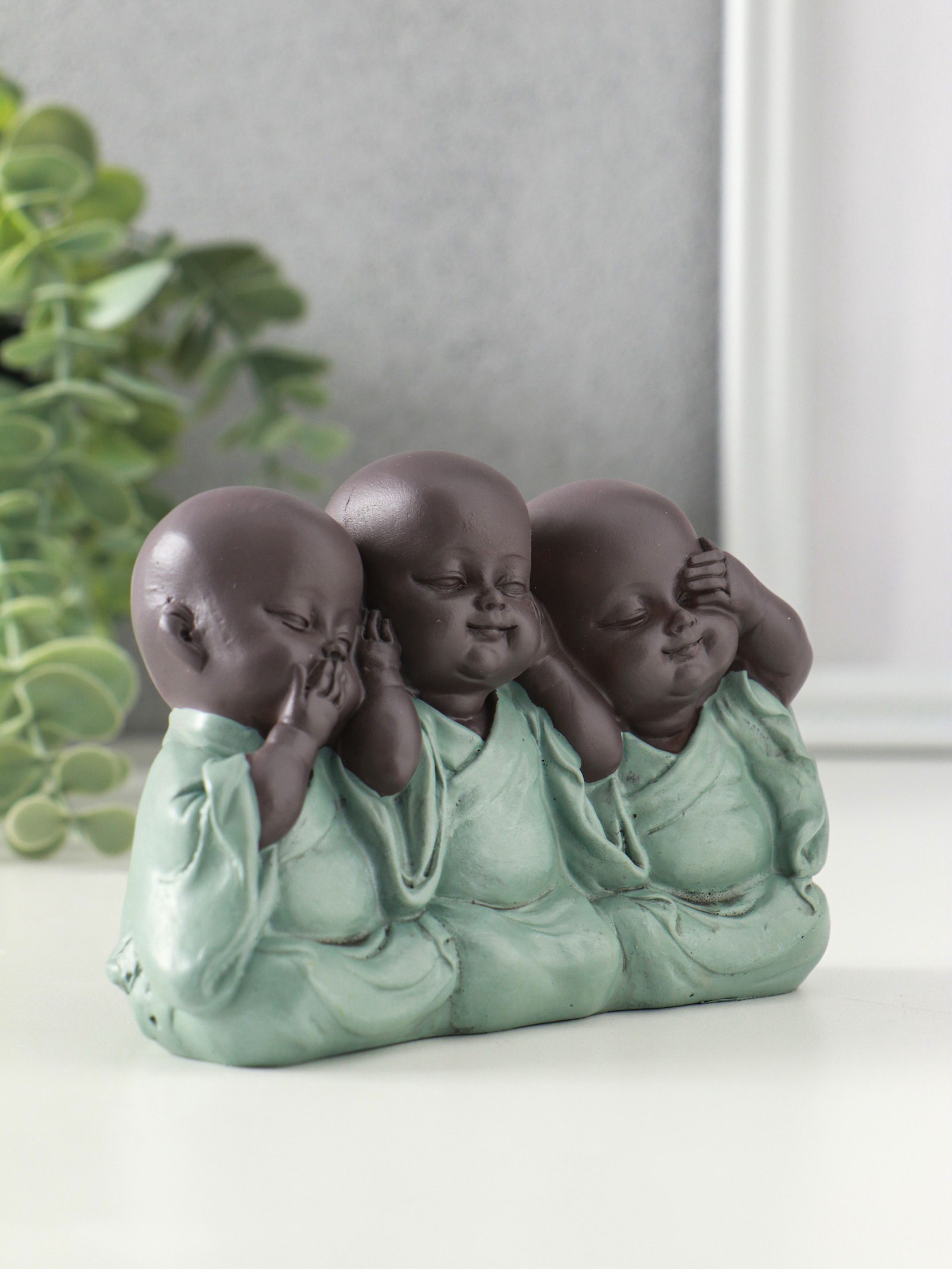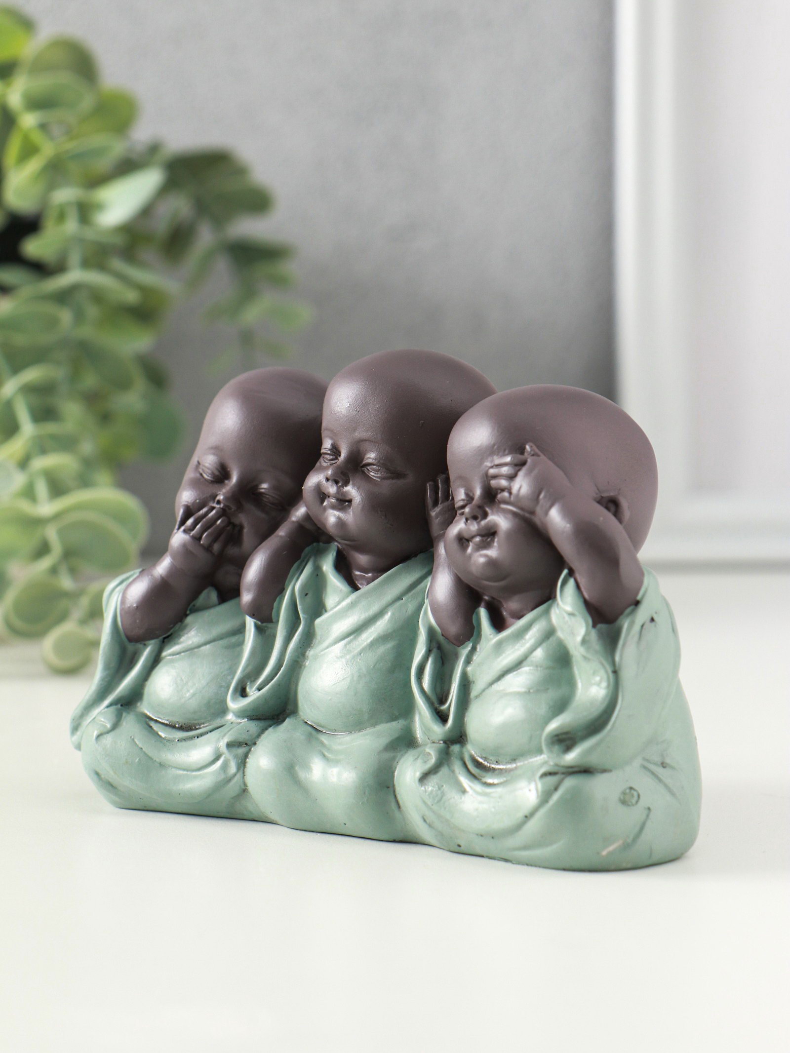 Фигурка полистоун "Маленькие будды - не слышу, не вижу, не скажу", зелёный, 4.6x12.5x8 см, 12.5x4.6x8 см., Китай