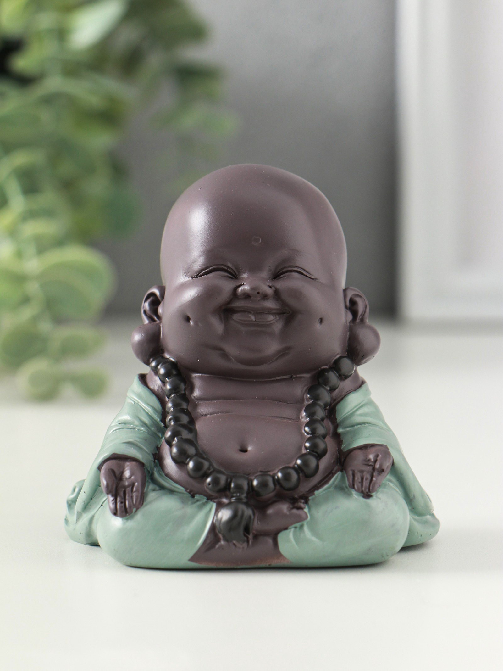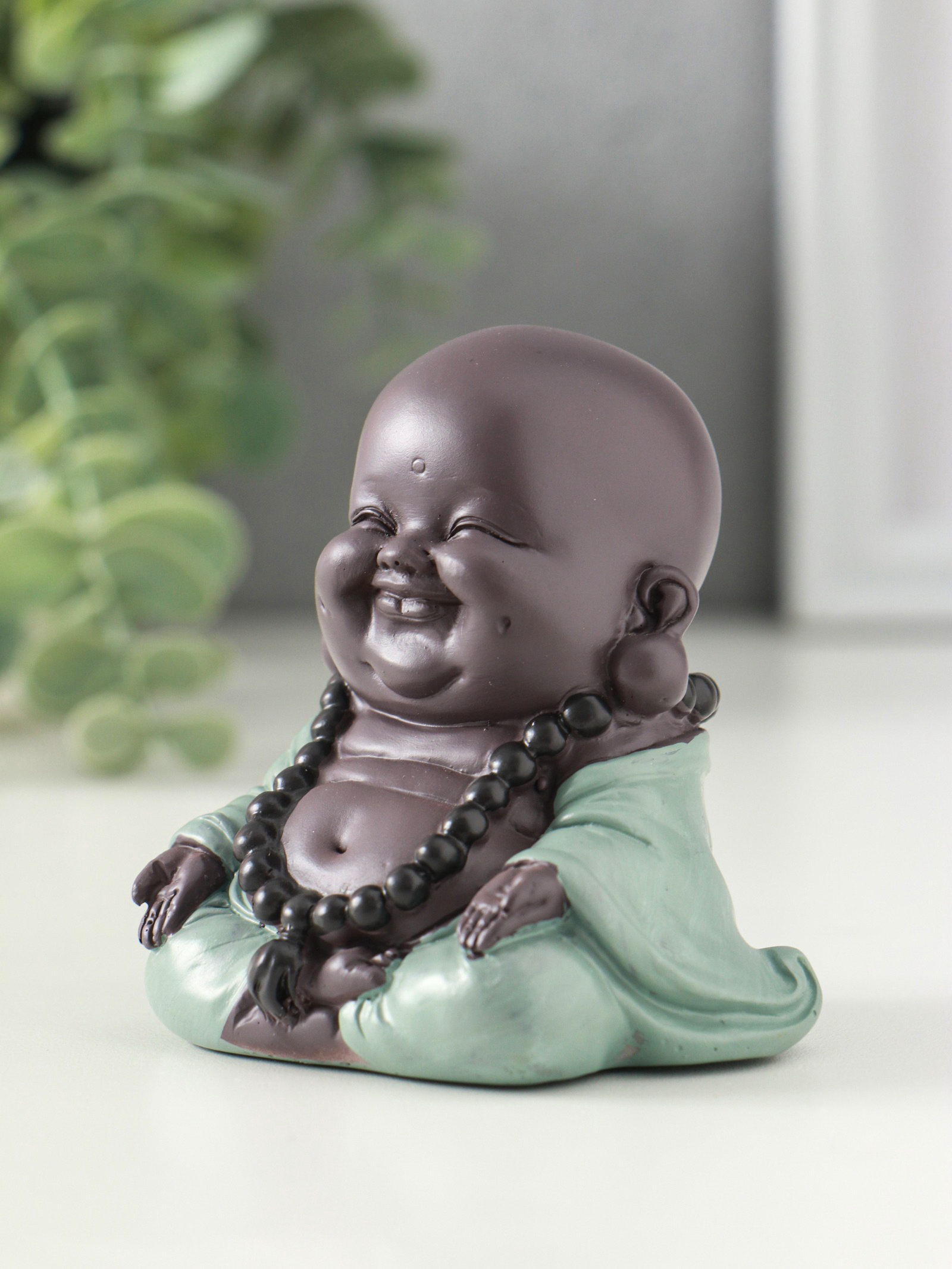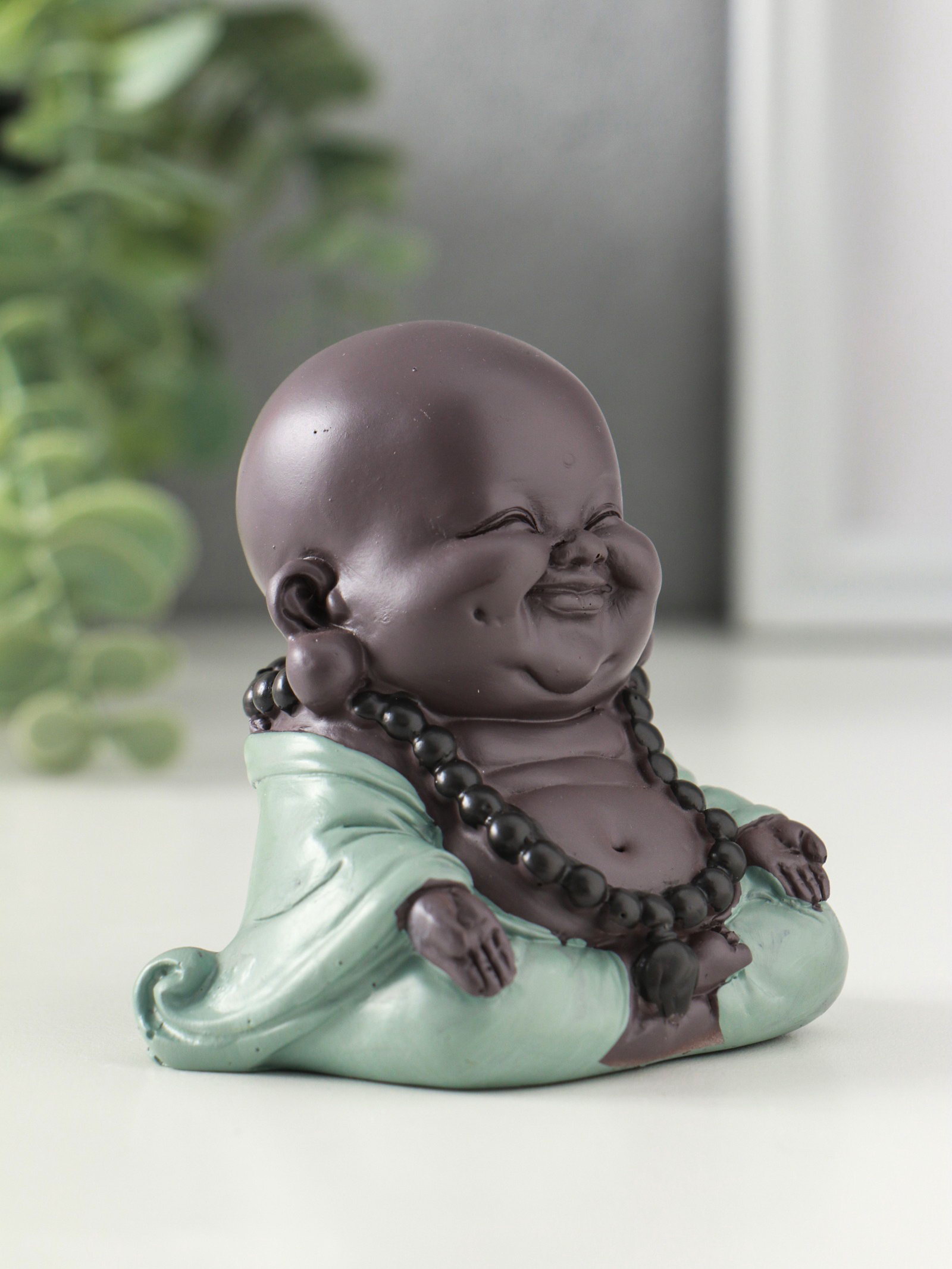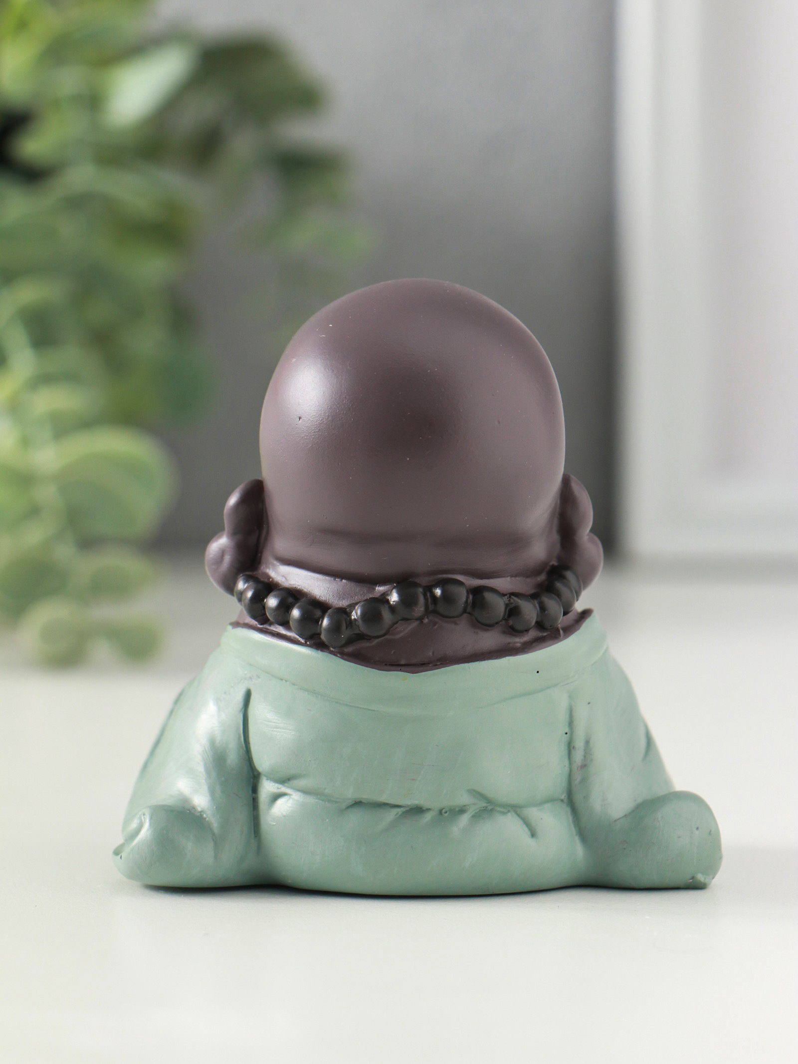 Фигурка полистоун "Маленький будда - Абхайя-мудра", зелёно-коричневый, 8x6x6 см, 10.5x7.5x13 см., Китай