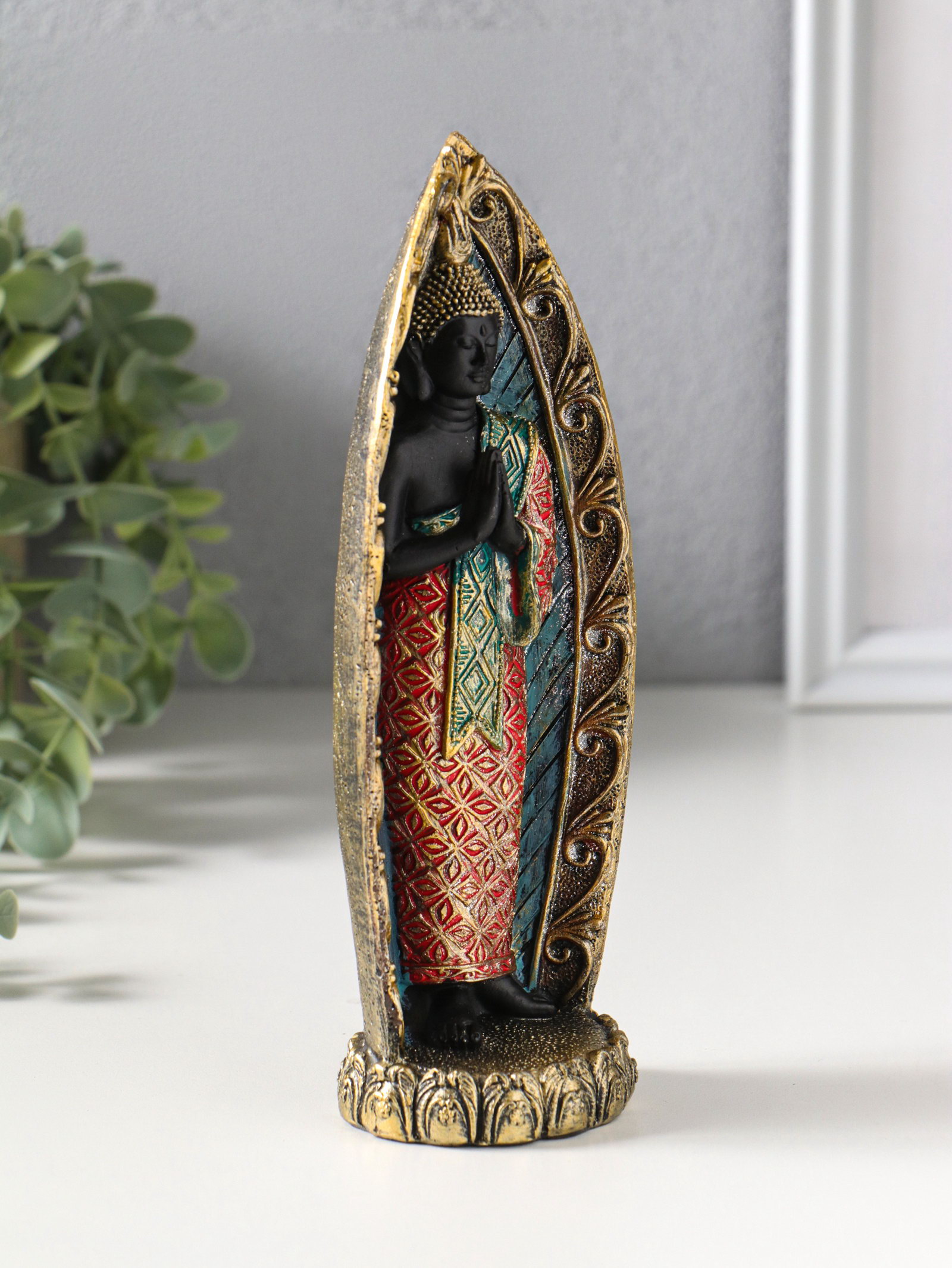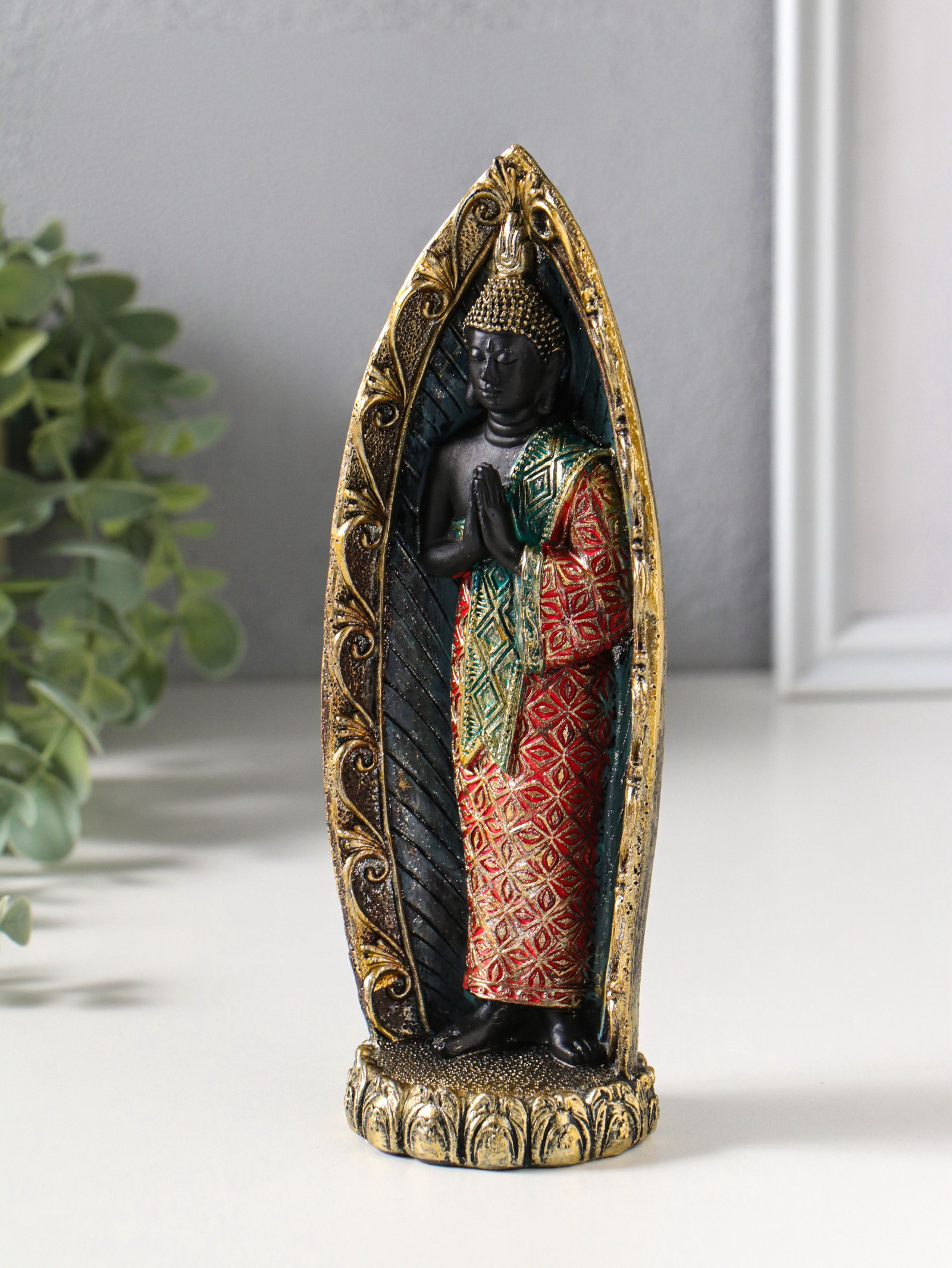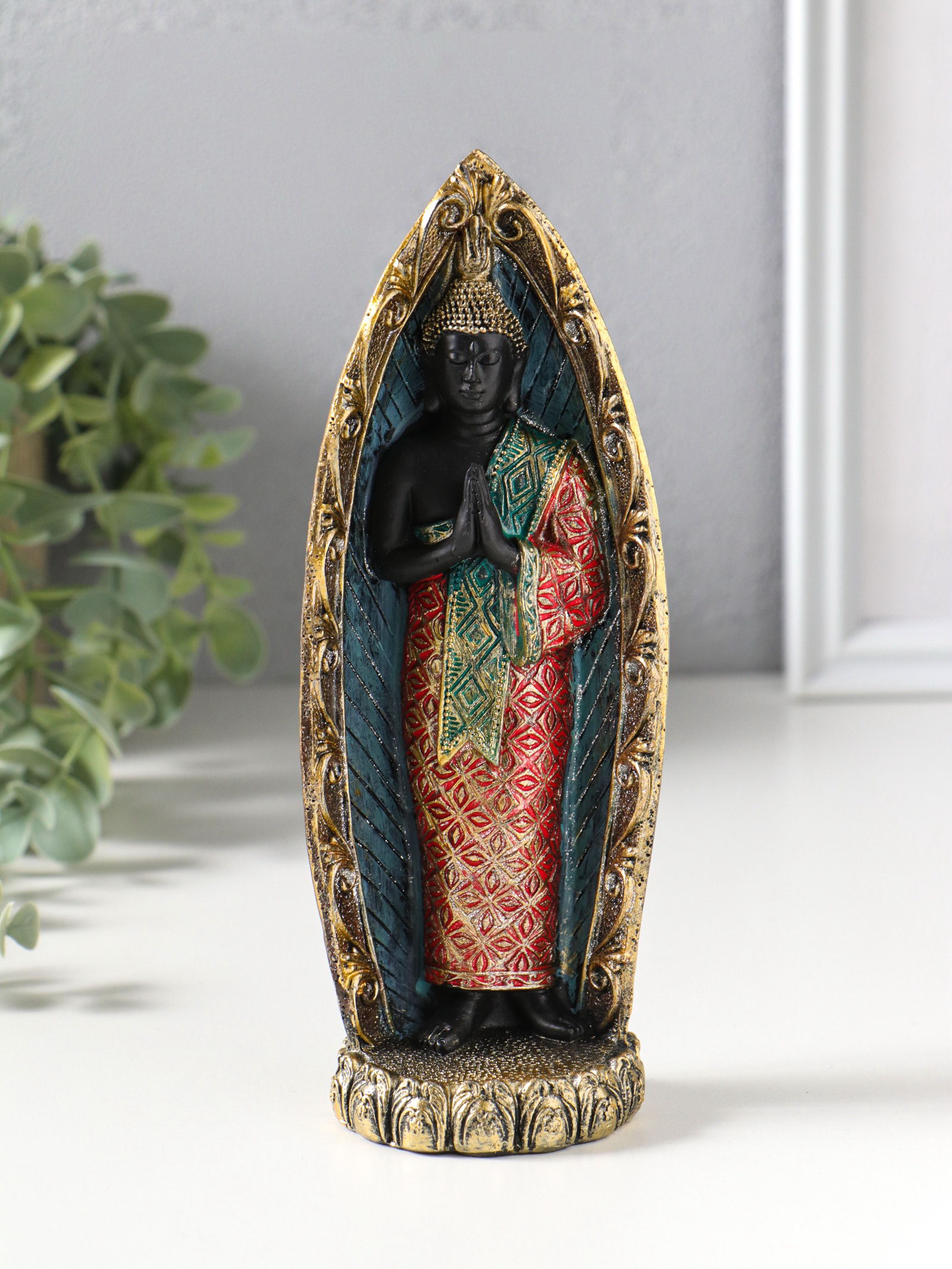 Фигурка полистоун "Будда в ярком наряде, в арке", 5.3x7.3x19 см, 7.3x5.3x19 см., Китай