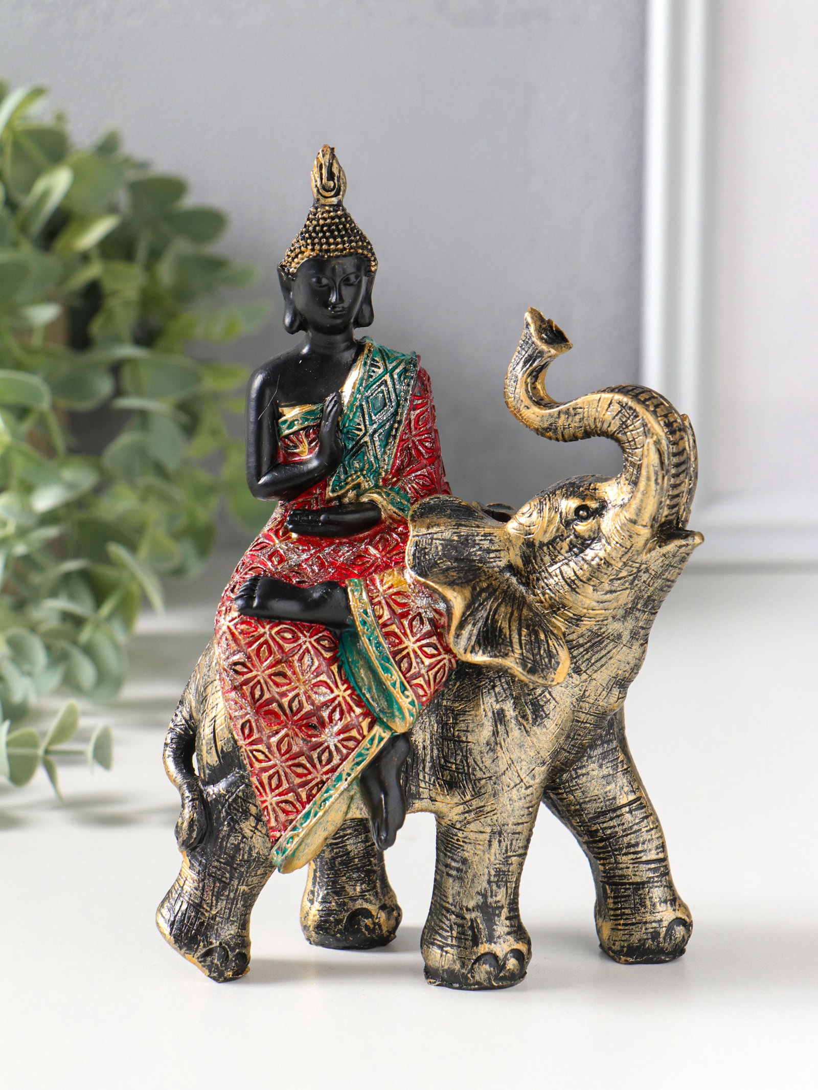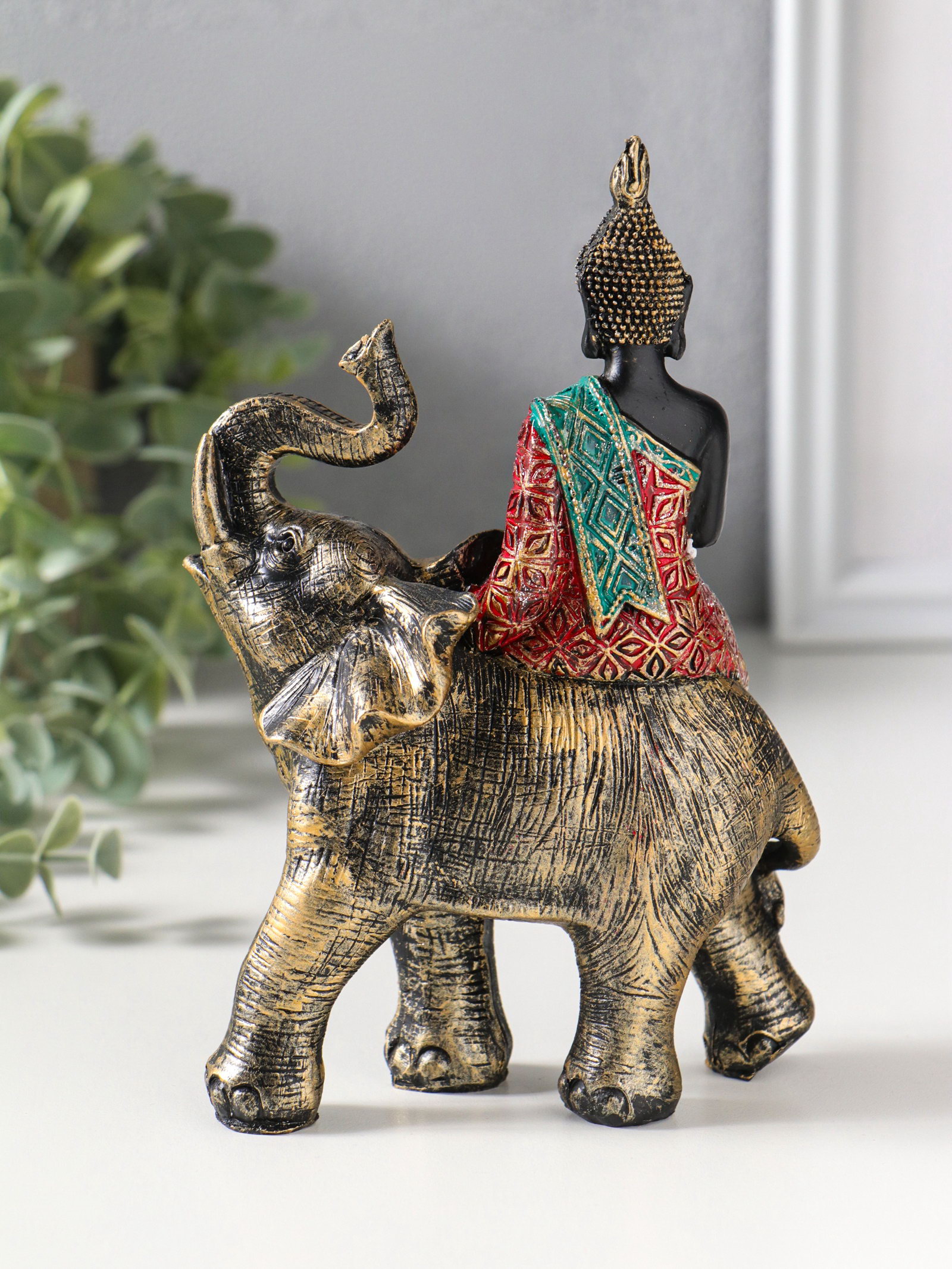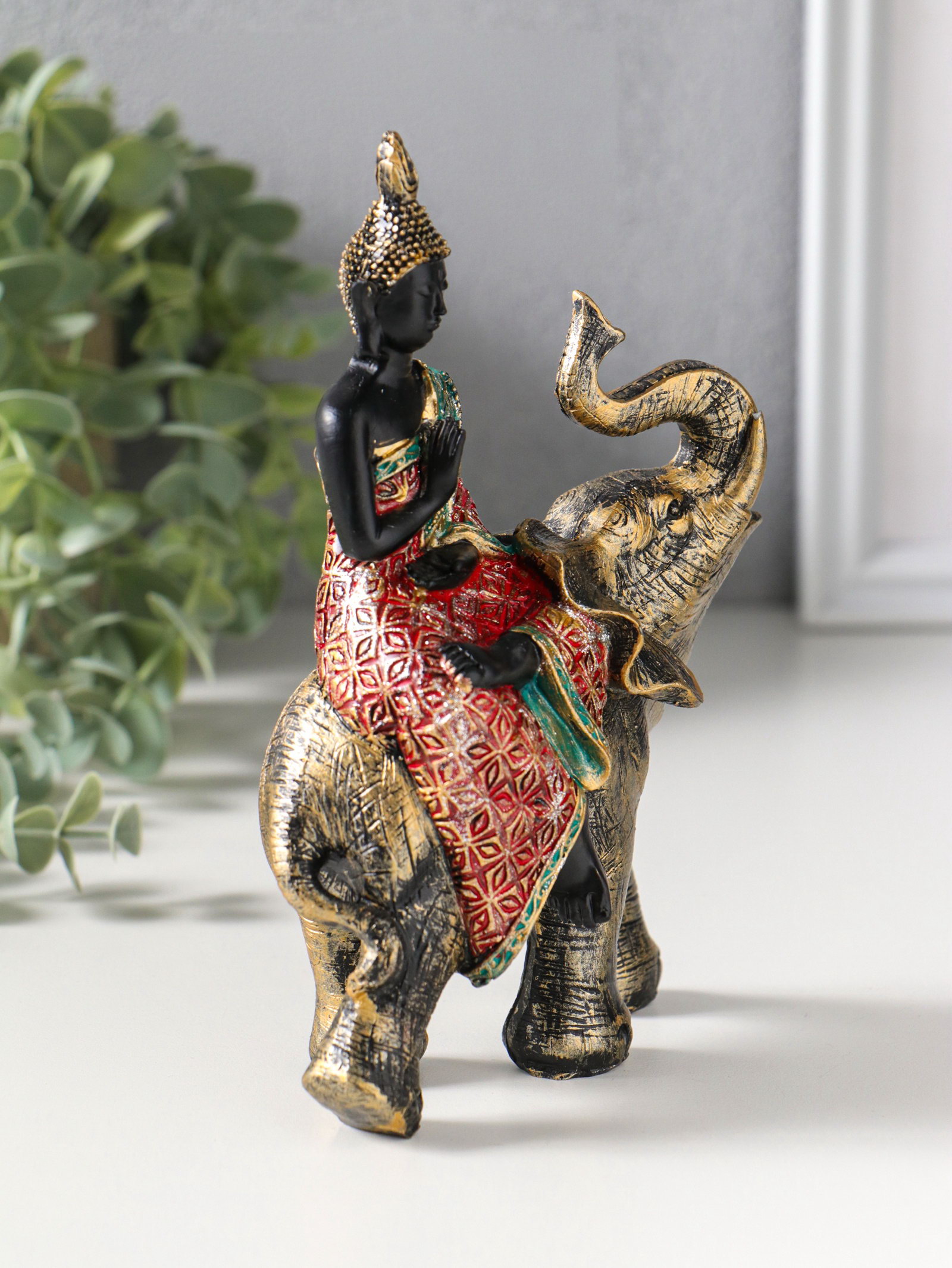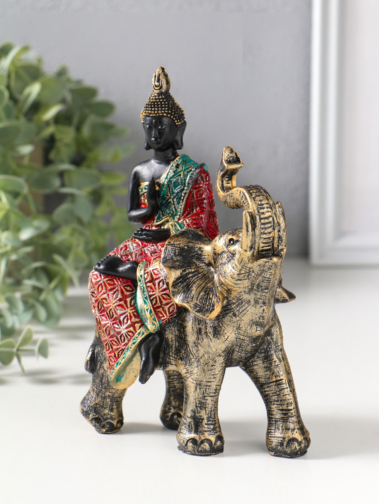 Фигурка полистоун "Будда в ярком наряде, на слоне", 5.5x11x16.5 см, 11x5.5x16.5 см., Китай