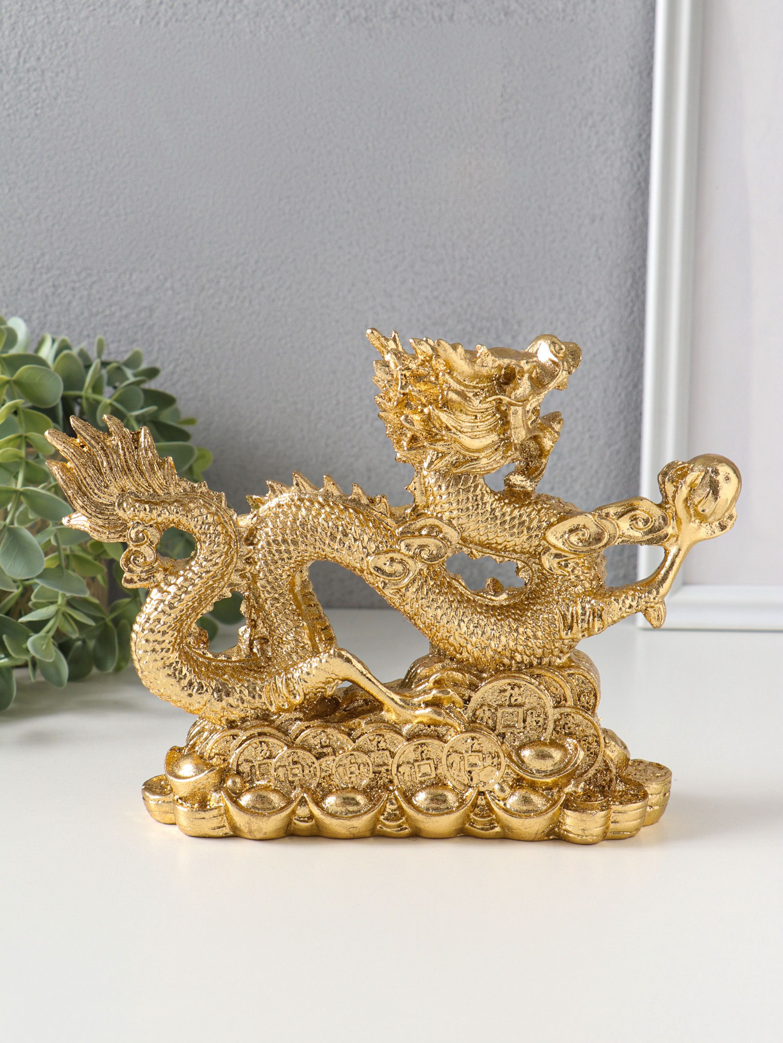 Нэцкэ полистоун "Дракон с шаром на монетах" золото 21х16.5х6 см, 10x20x12.5 см., Китай