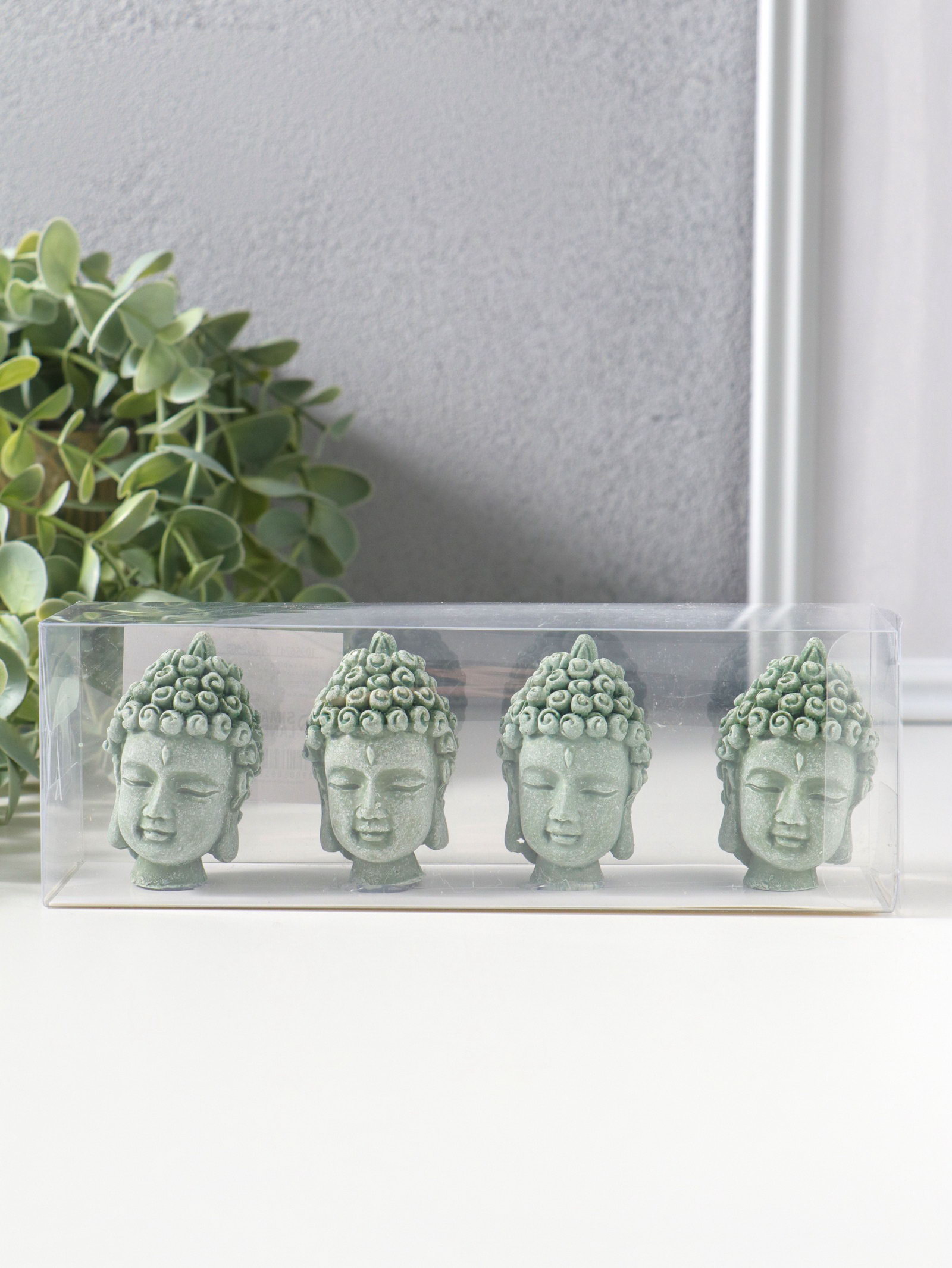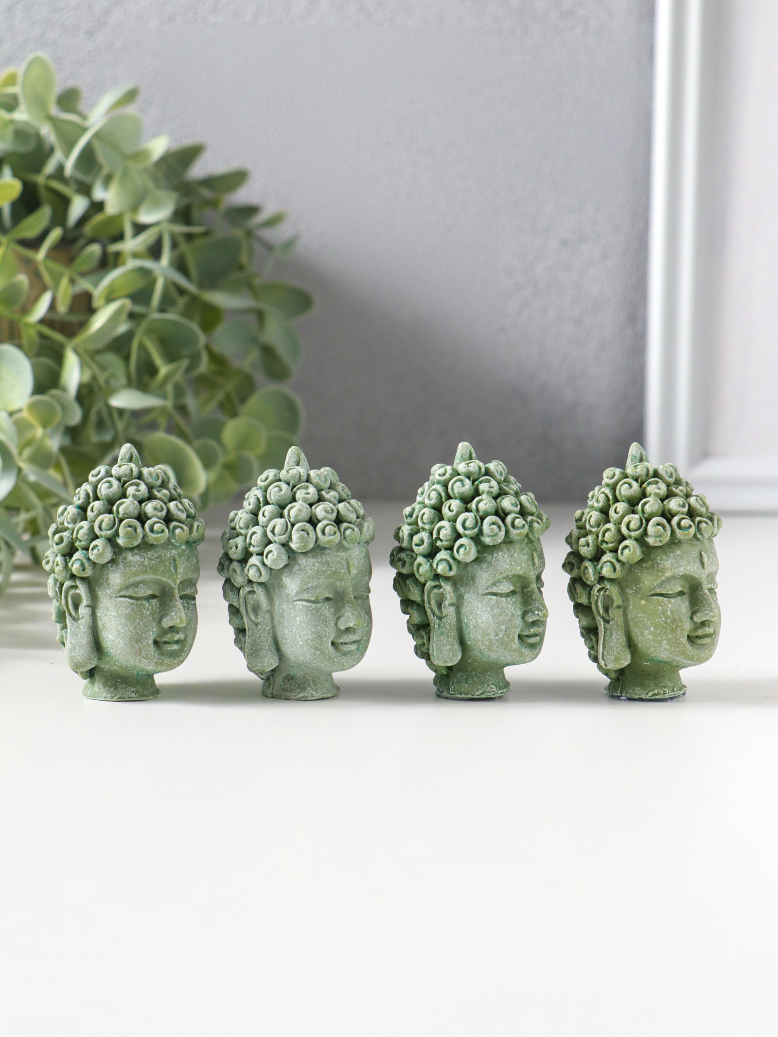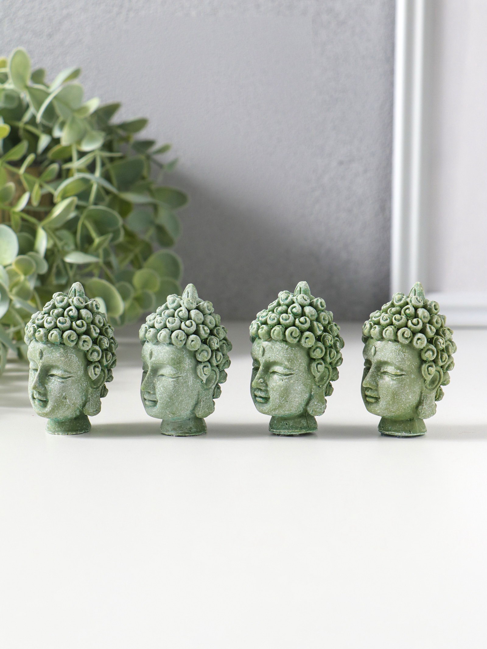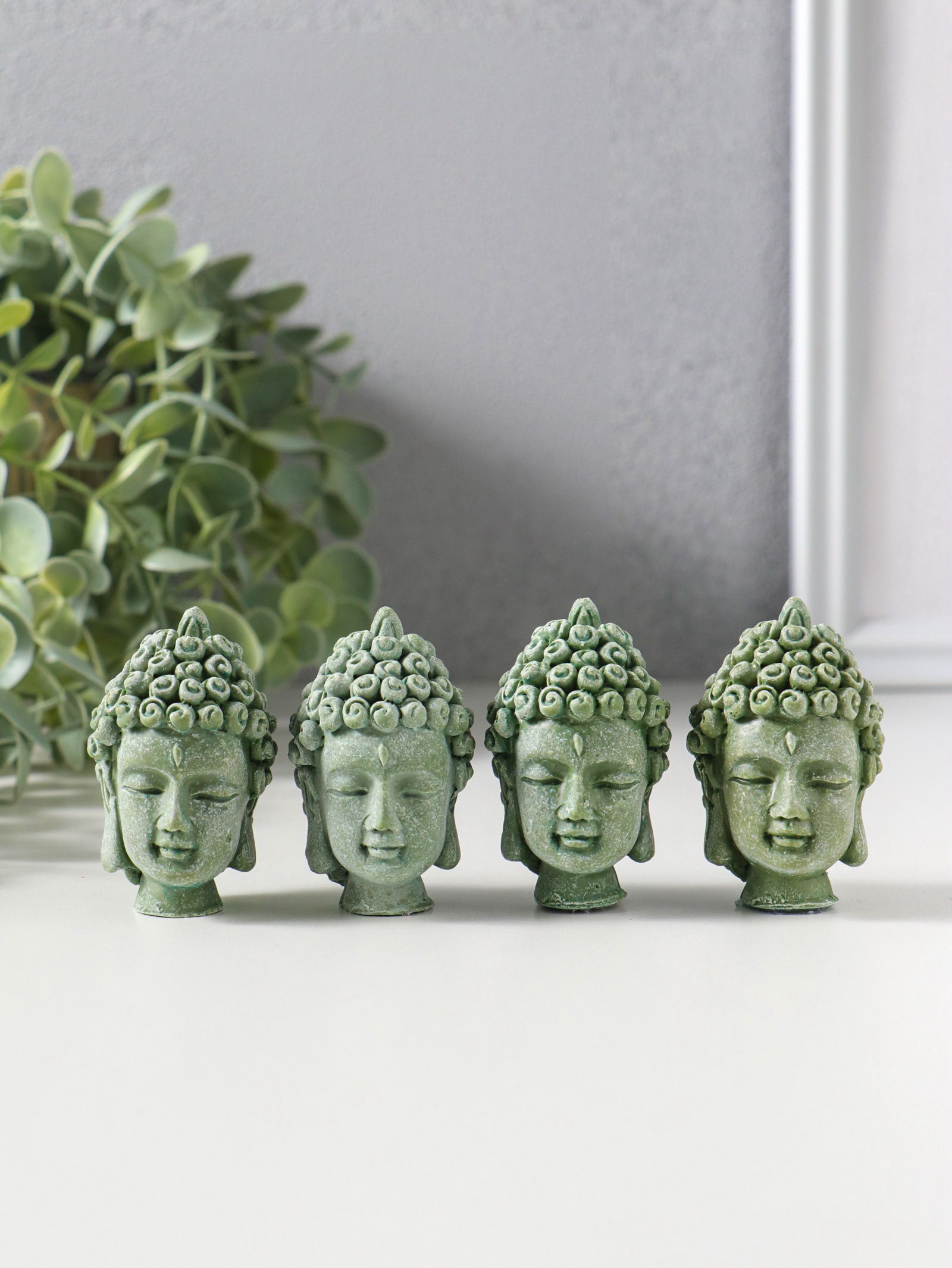 Набор фигурок 4 шт. "Голова Будды", полистоун, зелёный, 3.3x3.7x5.5 см, 3.7x3.3x5.5 см., Китай