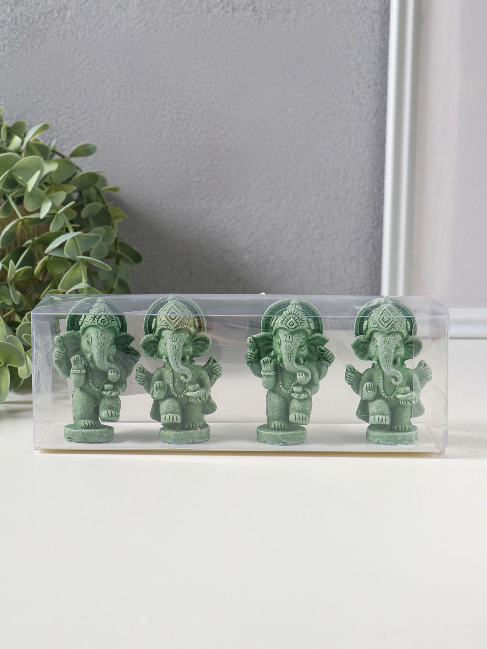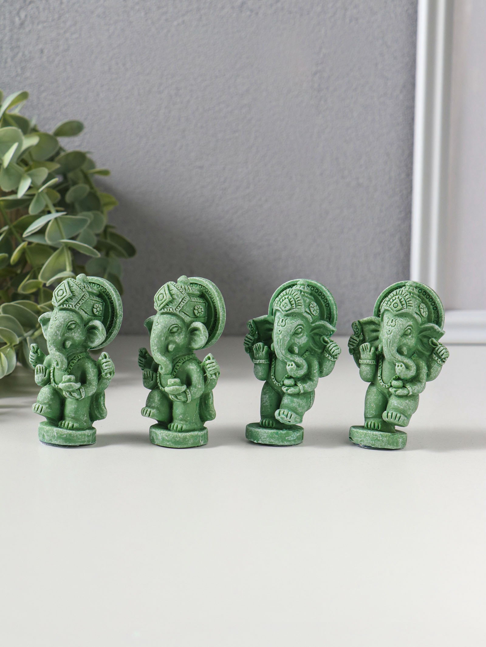 Набор фигурок 4 шт. "Ганеша", полистоун, зелёный, 2.8x4x6.2 см, 4x2.8x6.2 см., Китай
