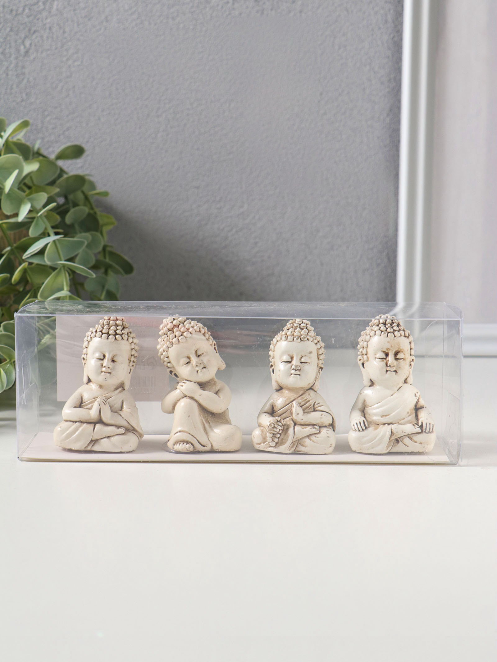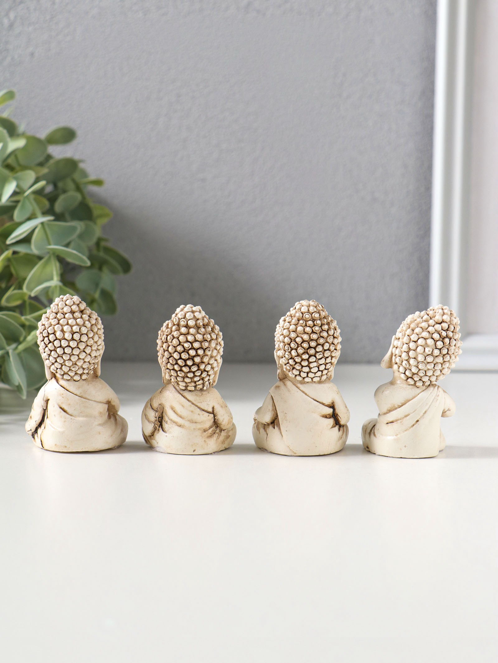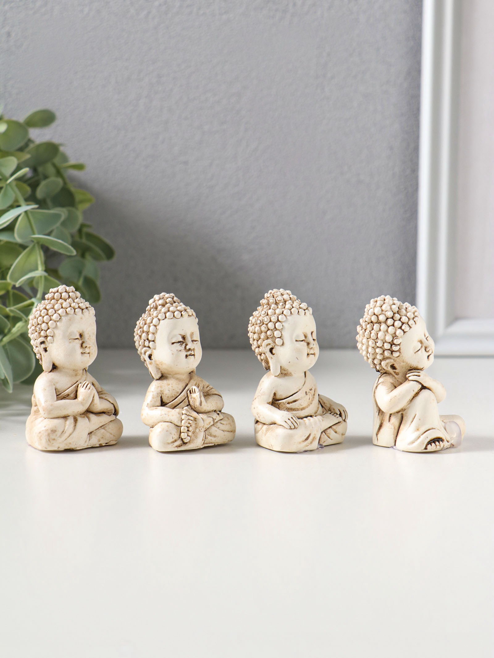 Набор фигурок 4 шт. "Медитация маленького Будды", полистоун, беж, 3x3.5x6 см, 3.5x3x6 см., Китай