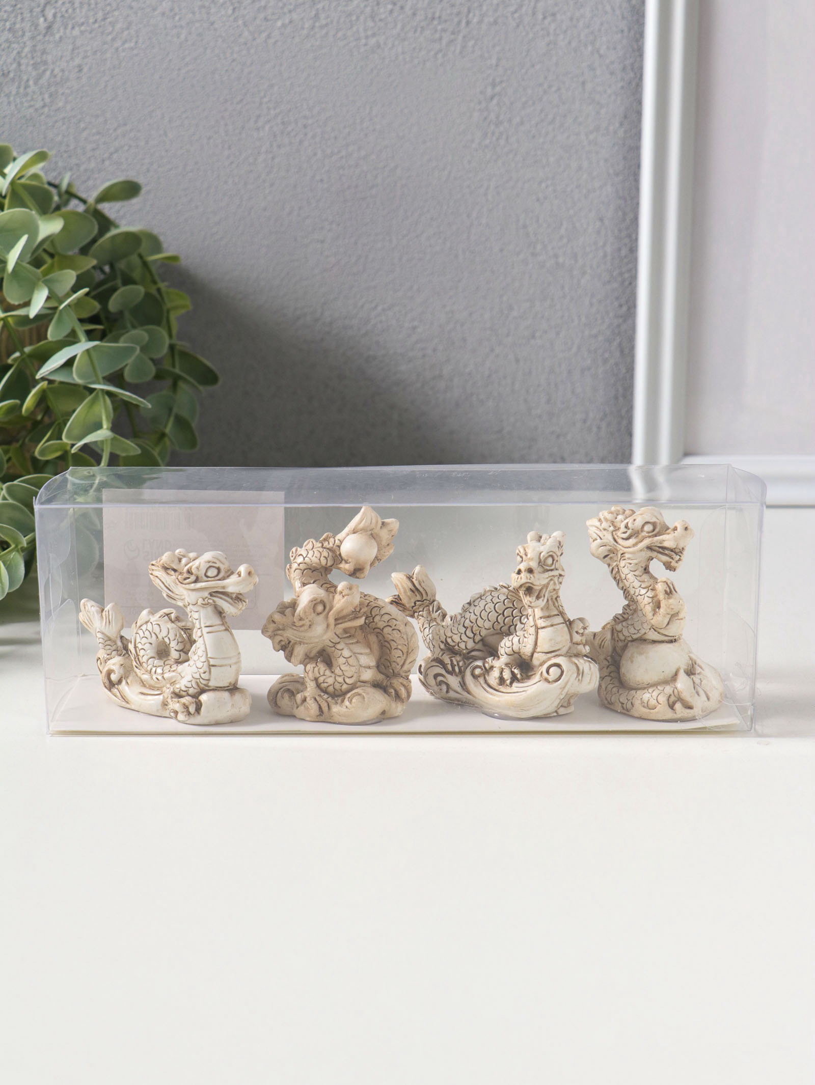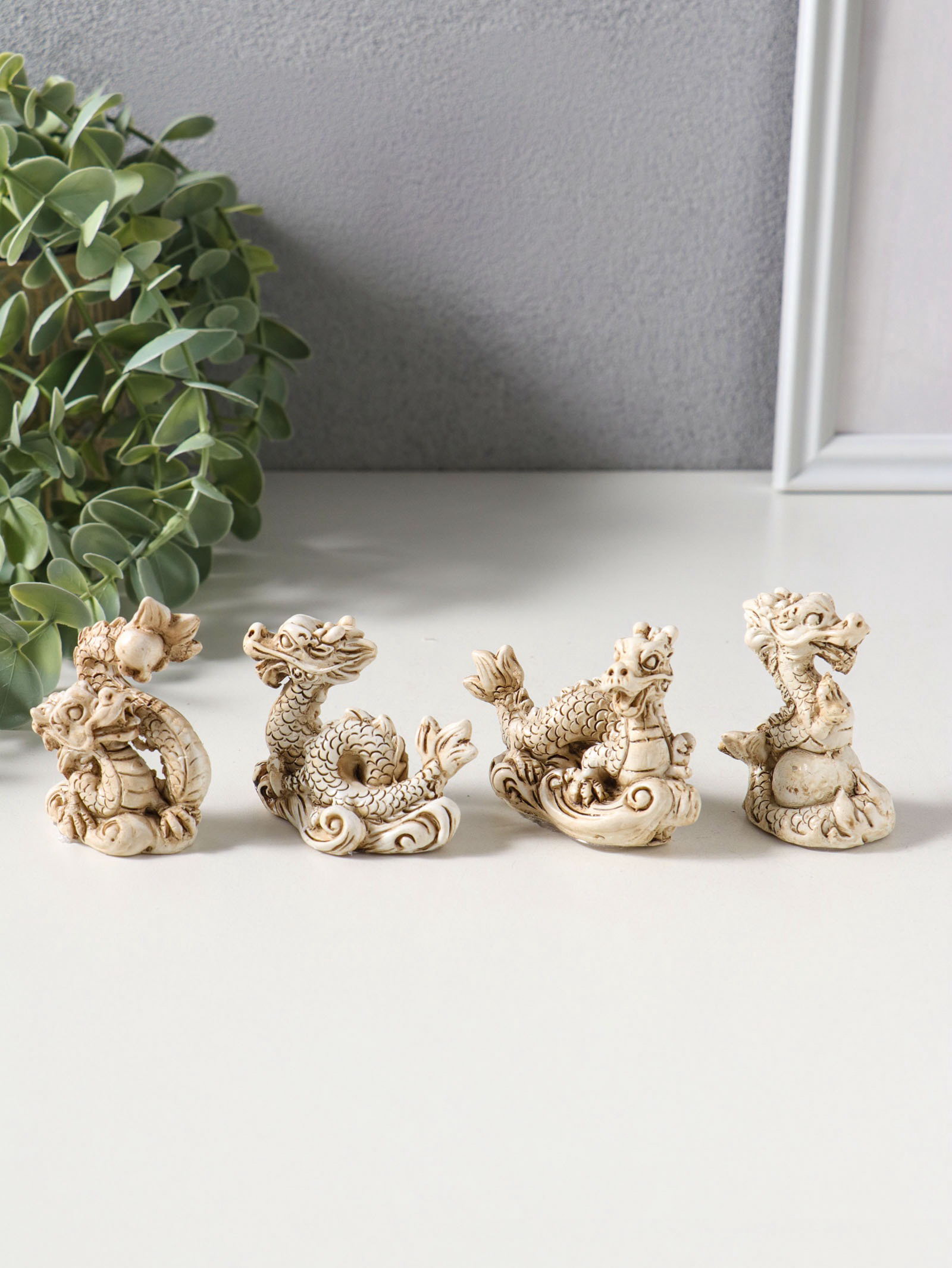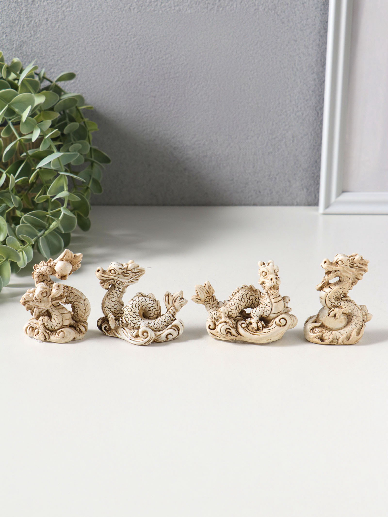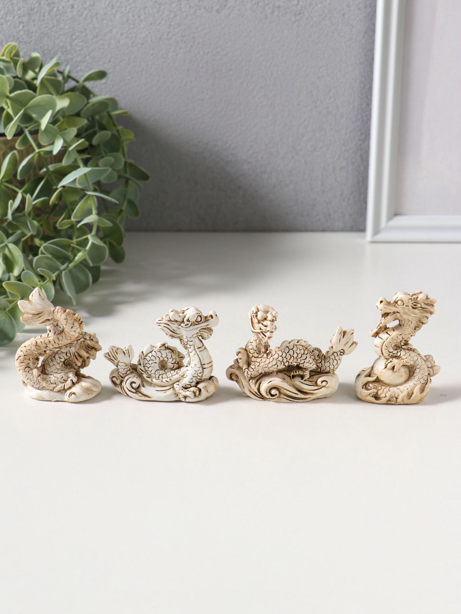 Набор фигурок 4 шт. "Китайский дракон", полистоун, беж, 3x4x6.5 см, 4x3x6.5 см., Китай