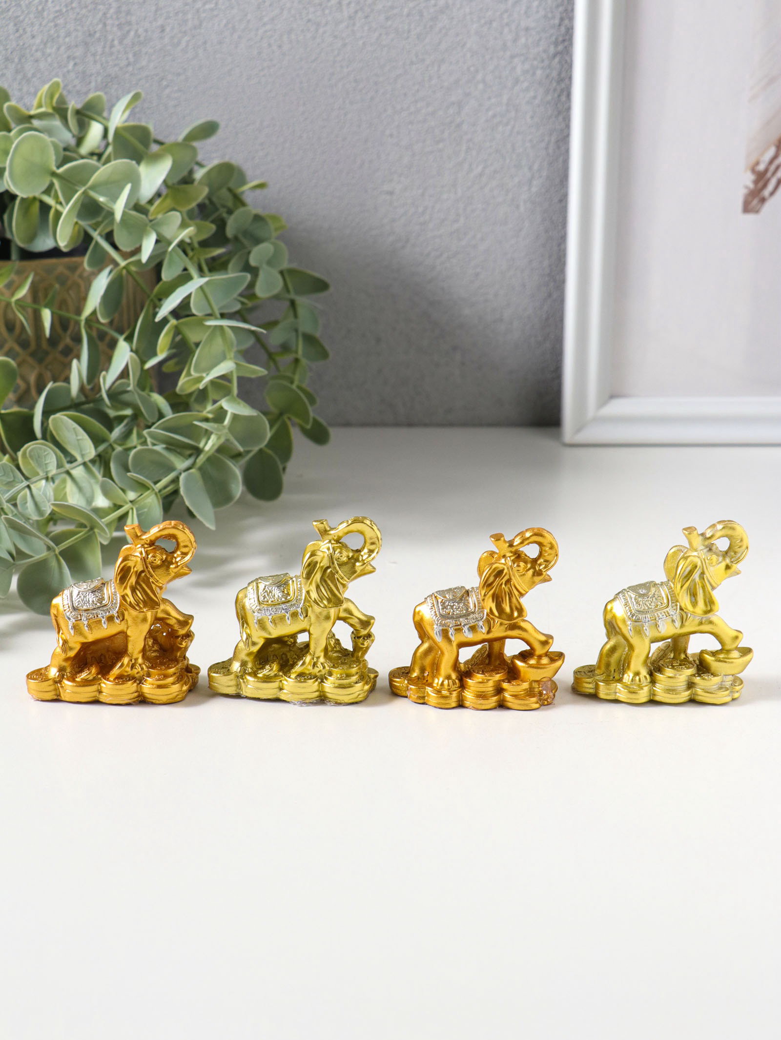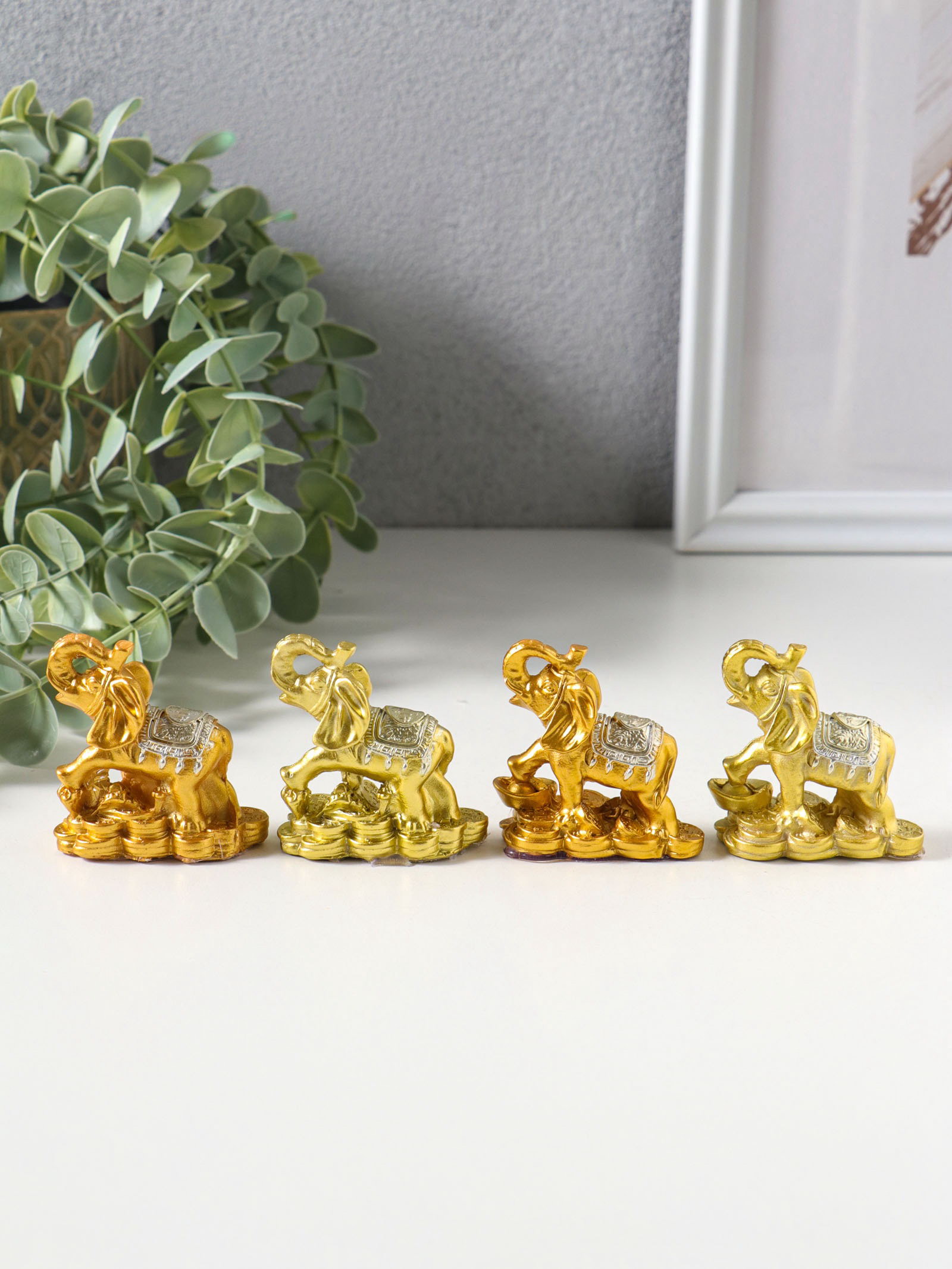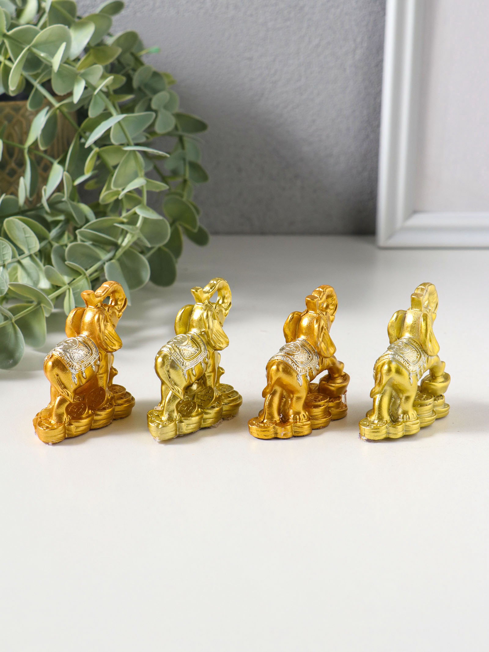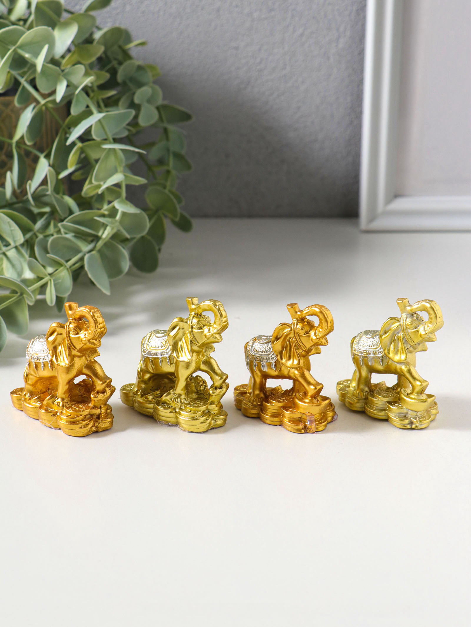 Набор фигурок 4 шт. "Слон на монетах и слитках", полистоун под золото, 2.5x5x5 см, 5x2.5x5 см., Китай