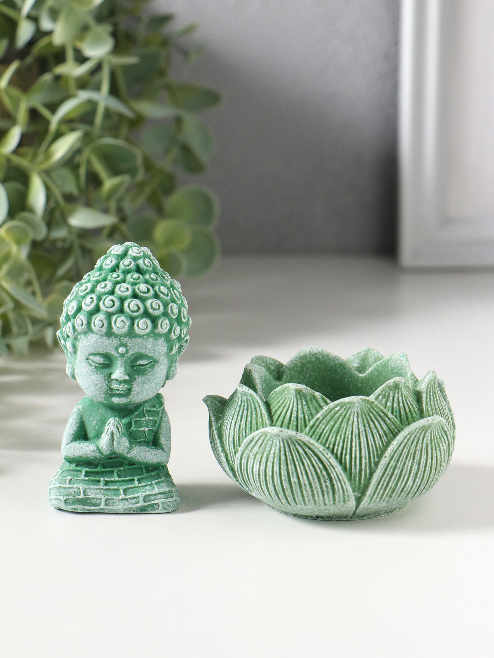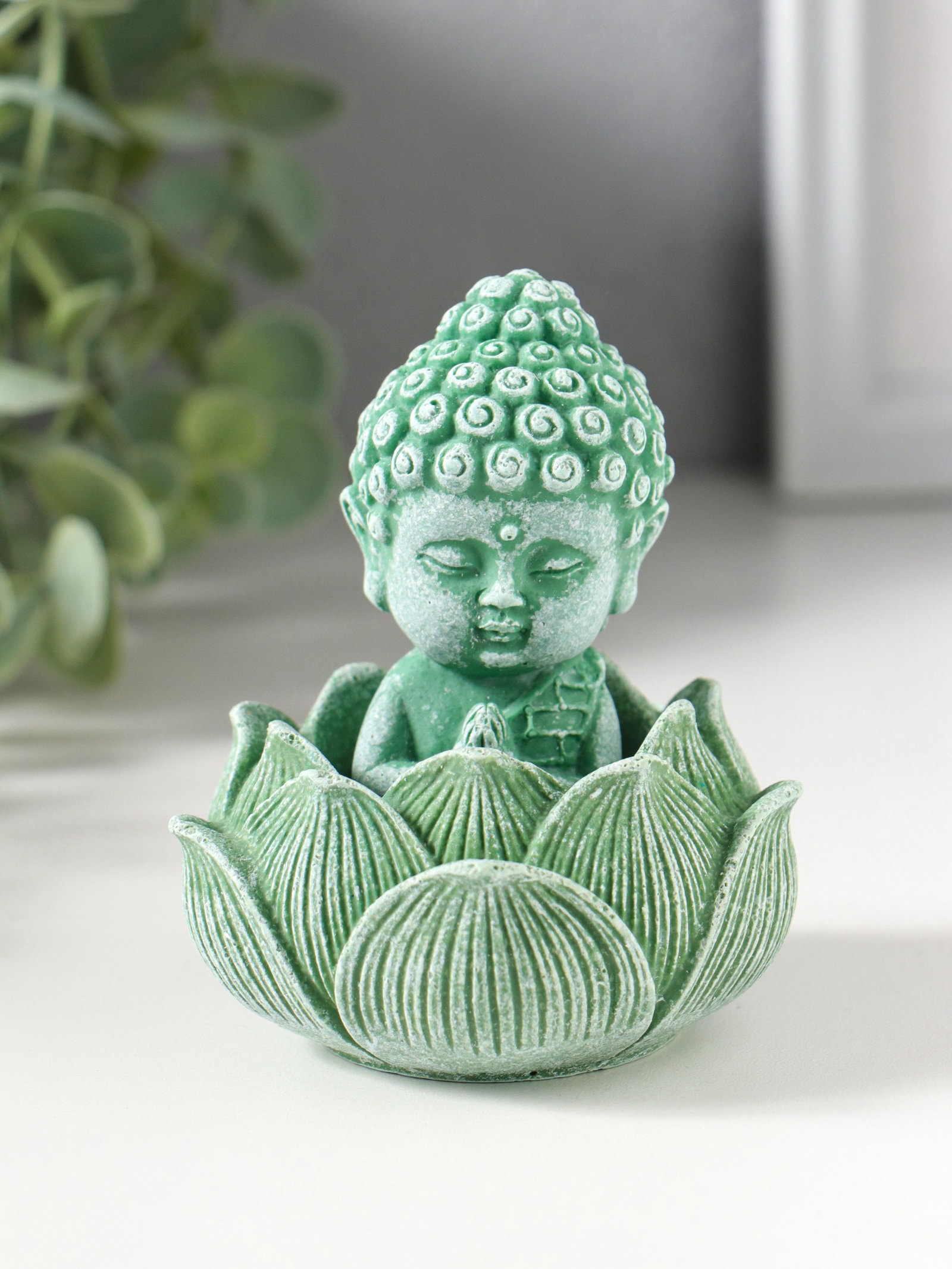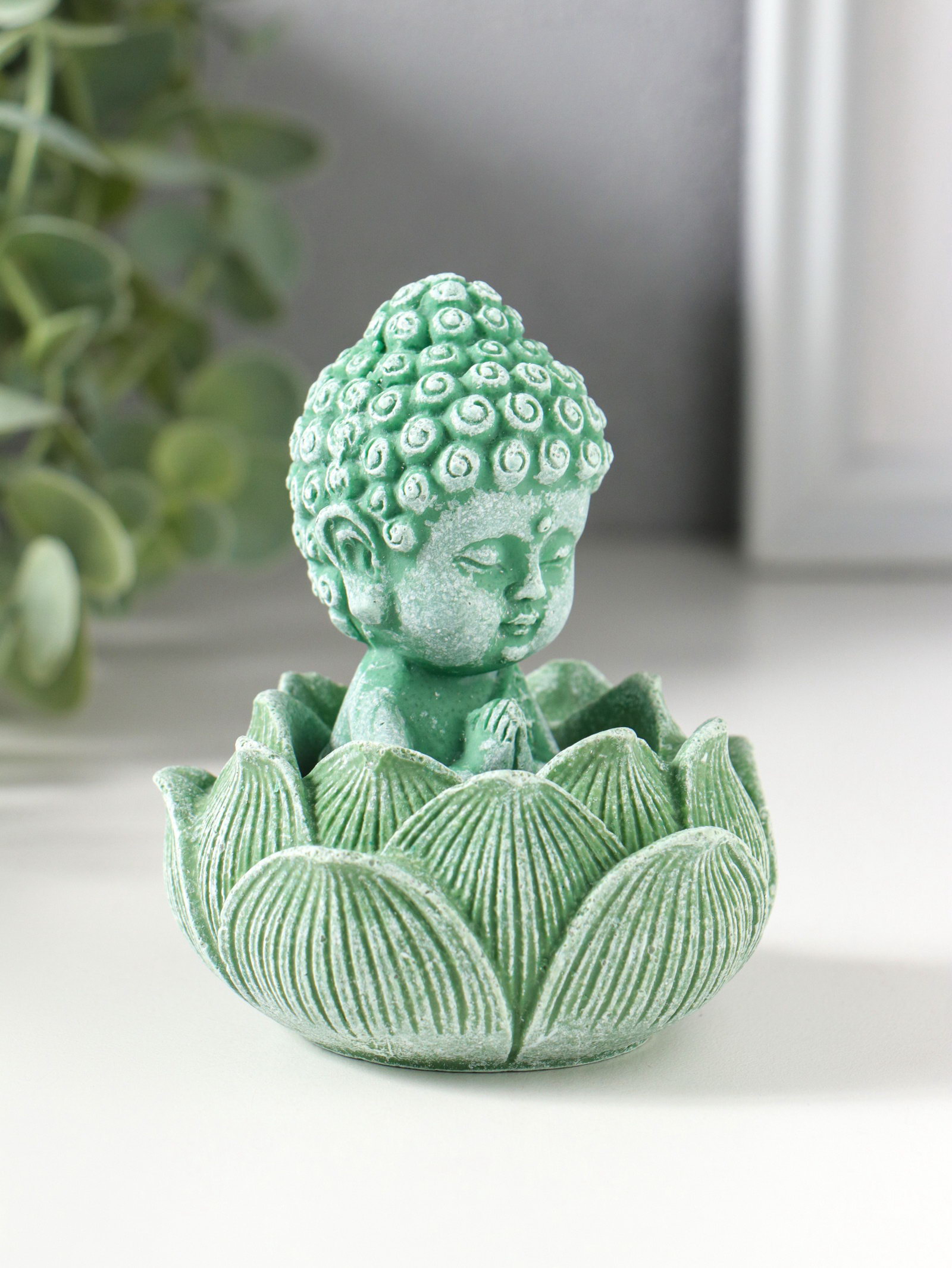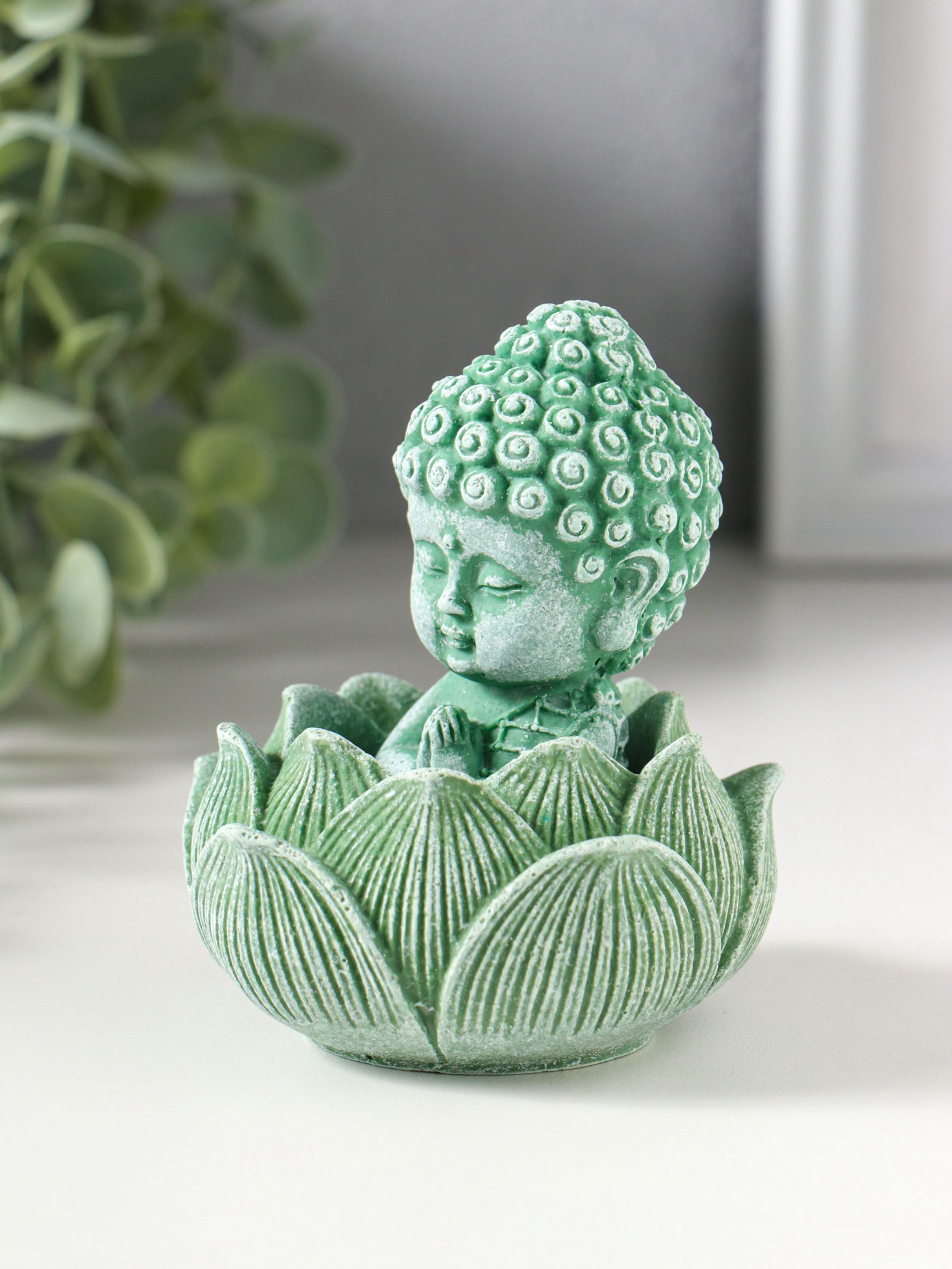 Фигурка полистоун "Лотос и маленький Будда", зелёный, 7.5x7.5x9.5 см, 7.5x7.5x9.5 см., Китай