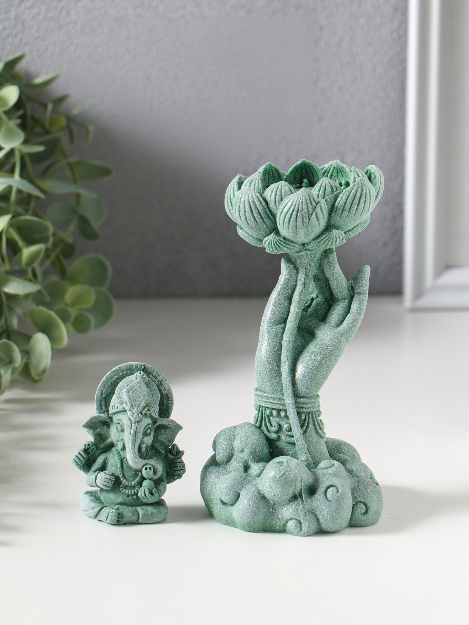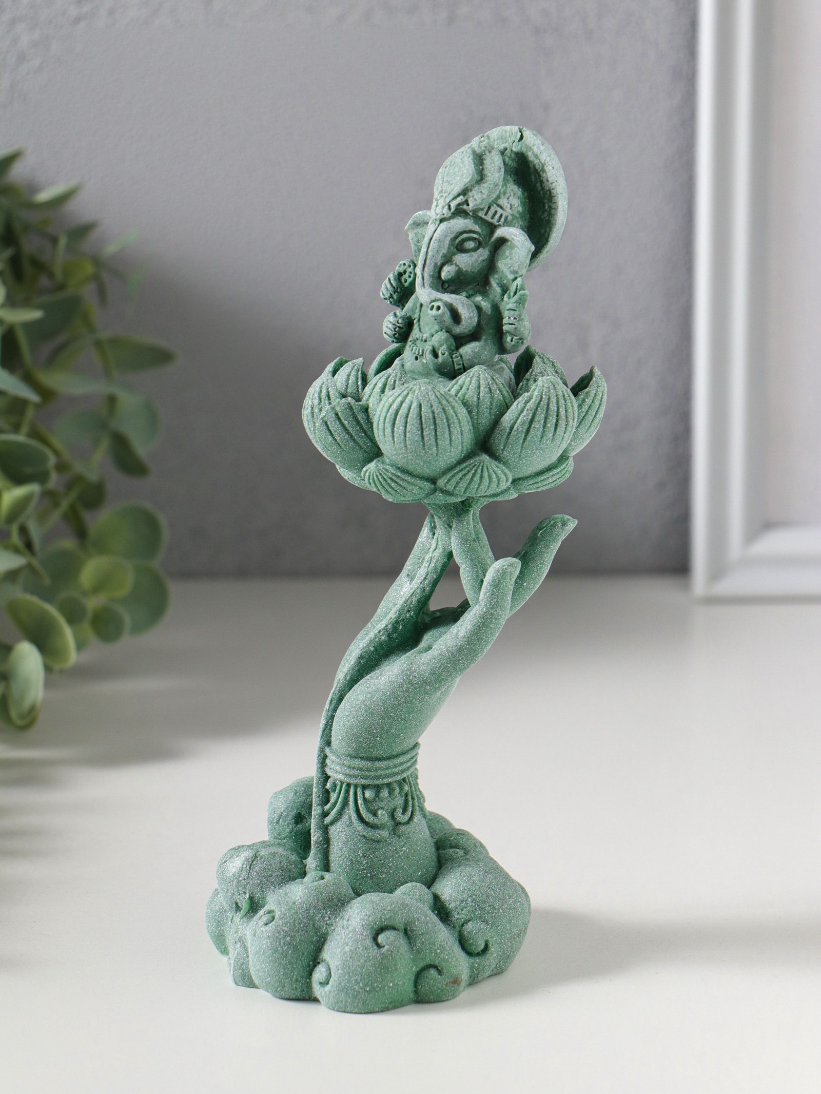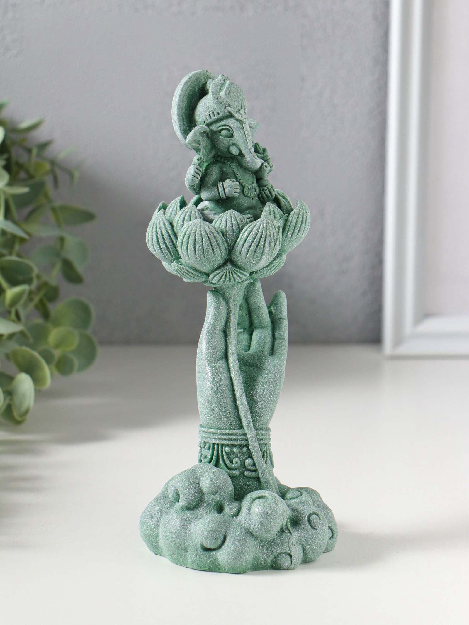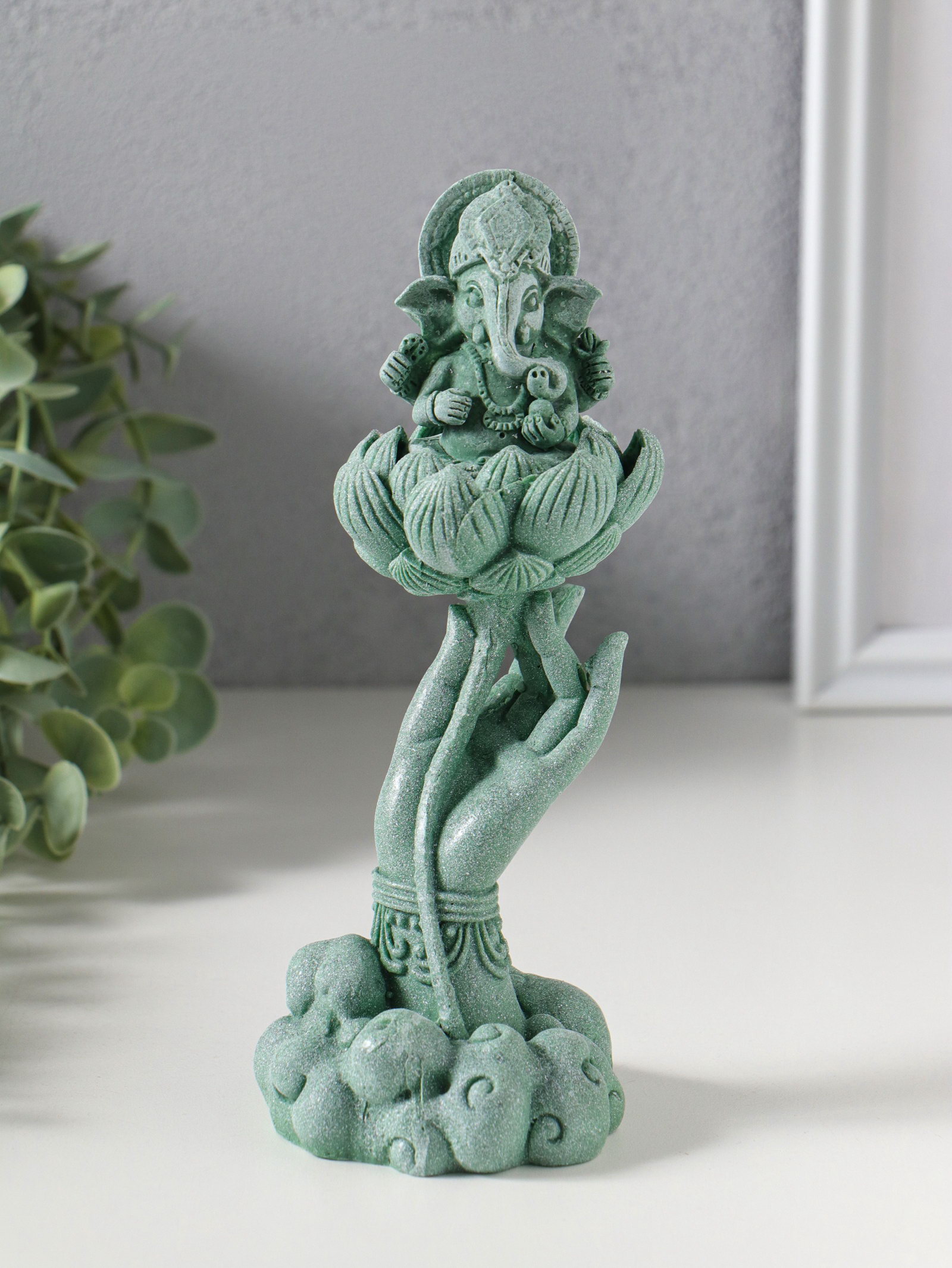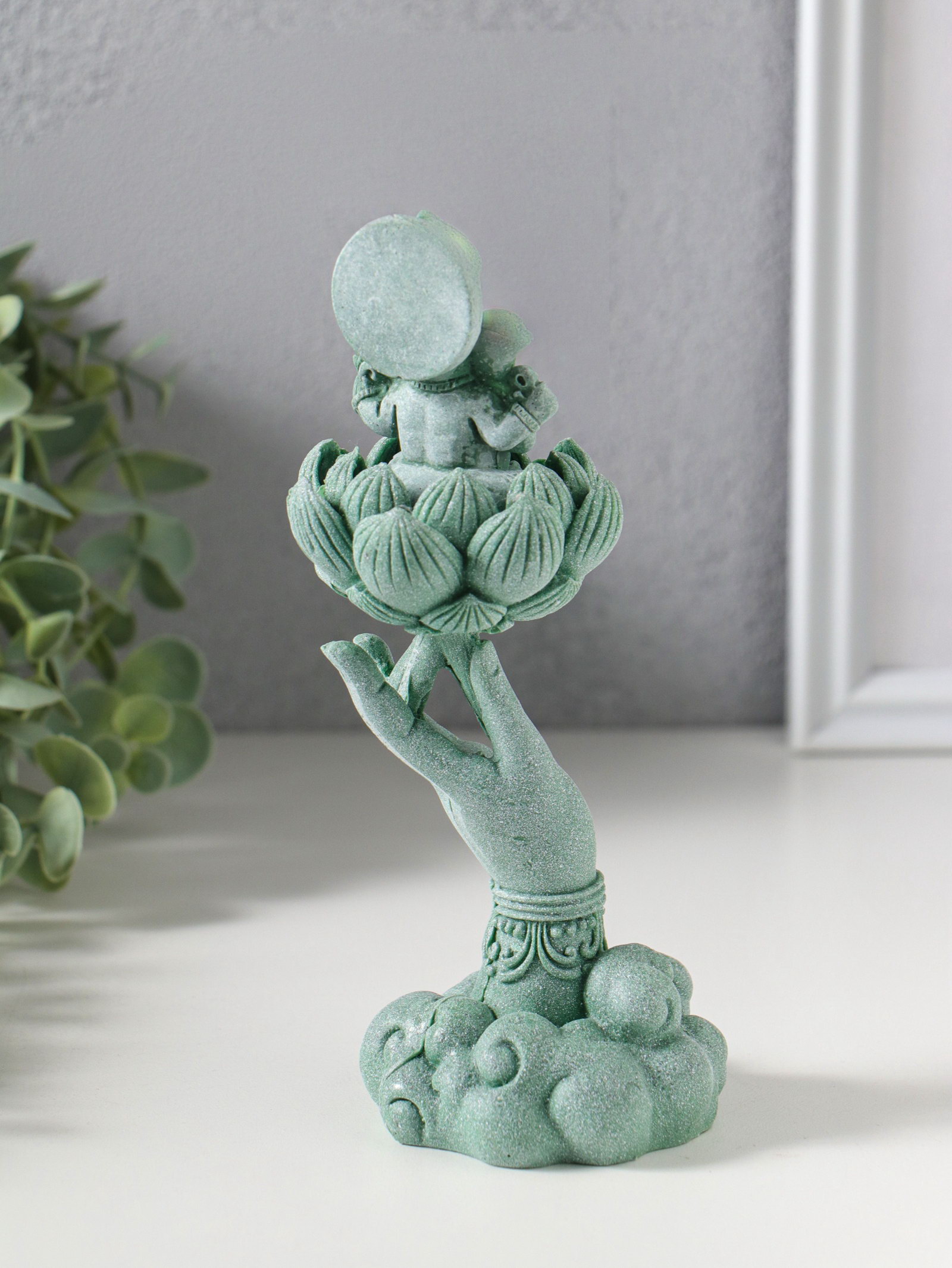 Фигурка полистоун "Рука с лотосом и Ганешей", зелёный, 7x7.3x18.5 см, 7.3x7x18.5 см., Китай